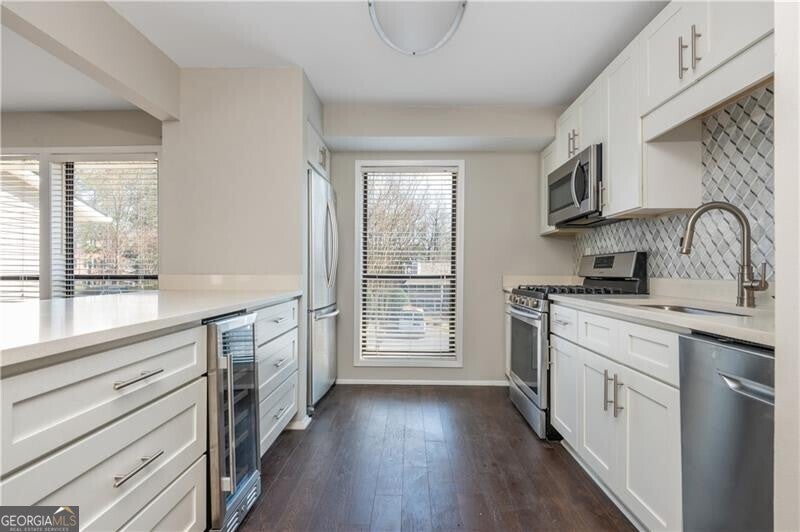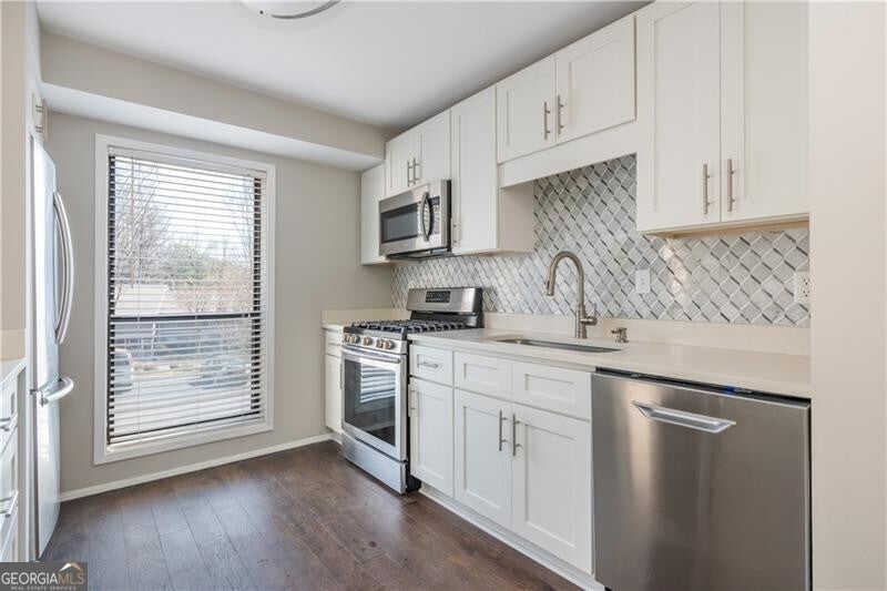 Welcome home to this stunningly renovated and beautifully maintained TOP FLOOR unit in one of Cobb's most desirable swim and tennis condo communities, in the heart of one of Metro Atlanta's most central locations. This very large floor plan is flooded with natural light and has tons of space for any kind of living situation, with big bedrooms, large private deck, plenty of storage, huge open living spaces, wooded views, and several nooks perfect for an office, sitting room, craft area, or all the above! It lives more like a single family home than a condo. Everything in this space has been updated, from the shaker style cabinetry, to quartz counter tops, to the marble backsplashes, this home offers move-in ready easy living. The neighborhood has wonderful amenities like several tennis courts, a dog park, clubhouse, and a beautiful resort style pool. Truly offering you low maintenance living, easy walkability, convenient commuting, and community hospitality. This particular homes comes with all appliances, including the refrigerator, washing machine, and clothes dryer - making your move all the easier and more economical -- AND to make the deal even better, this home also is also offering closing cost assistance with the seller's preferred lender.