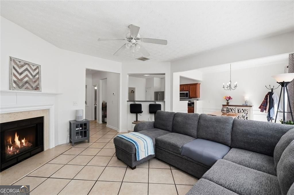 Sun-filled living spaces and a two-story layout with a large loft set the tone for this move-in ready home in Prominence Point, where a striking foyer with art niches adds character right from the start. The main level flows easily from the kitchen into the family room, where a fireplace anchors the space and creates a natural spot to relax or host. The kitchen offers generous counter space, stainless steel appliances, and a breakfast bar that keeps everyone connected, while the dining area opens directly to the back patio. A dedicated laundry room and main-level half bath add practical function without interrupting the flow. Upstairs, the loft creates flexible living space for a home office, media room, or reading retreat. The primary suite feels tucked away with room to recharge, paired with an en suite bath and walk-in closet, while two additional bedrooms and a full bath provide separation and storage. Out back, the fenced yard and patio set up easy outdoor living, whether it is morning coffee or an evening fire pit. The yard is manageable and ready for pets, play, or gardening. Located minutes from I-575, this spot keeps commuting simple while placing you close to The Shoppes of Prominence Point, the Mill on Etowah, and Etowah River Park. Community amenities include a clubhouse, pool, and tennis courts, giving you more ways to enjoy where you live.