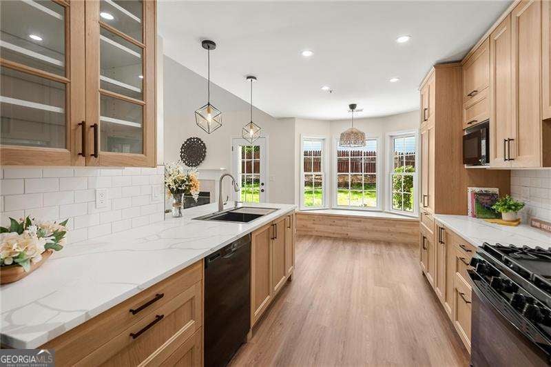 The perfect blend of sophistication and charm! Nestled on a premium level lot with private backyard, this spacious recently fully renovated beauty delivers! Very tasteful neutral decor. Impressive 2-story foyer has luxury vinyl plank flowing seamlessly throughout. Kitchen has new cabinetry, stone countertops, and a built-in bench seat in the bay window overlooking the backyard. New concrete patio and plenty of green space; an empty palette to design to fit your lifestyle; like a playground for the kids or a large vegetable garden and sanctuary! Main level master retreat enhanced by trey ceiling, large walk-in closet and luxury double vanity bath with separate shower and soaking tub. Nicely sized secondary bedrooms with shared new vanity and shower. New roof, siding, flooring, fixtures, double-pane windows, kitchen, bathrooms, plumbing, ductwork, and fresh paint inside & out! This recently fully-renovated home is a must see to appreciate!