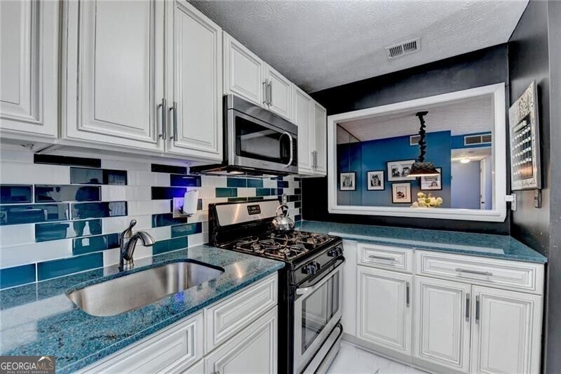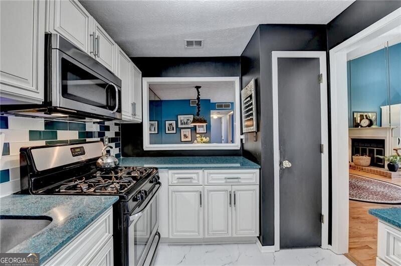 Welcome to River Run, a hidden gem! Discover the perfect blend of comfort, privacy, and unbeatable location in this beautiful 2 bed, 2 bath condo. Ideally situated less than 3 miles from all the excitement that Downtown Roswell has to offer and under a mile from the Chattahoochee River, you'll enjoy both vibrant city life and serene natural surroundings right at your doorstep. Step inside to a welcoming, eclectic home featuring high ceilings, hardwoods and new LVP flooring. The inviting fireside family room flows seamlessly into the home's renovated kitchen complete with a gas cooktop, stainless steel appliances, and solid surface counters-a perfect setup for entertaining guests or comfortable roommate living. With bedrooms on separate levels, the layout offers exceptional privacy. Step onto the covered porch to sip your favorite beverage while enjoying peaceful wooded views. As an end unit, this retreat also features a private, covered deck and ample parking, with lush forest just steps away. Located just minutes from GA 400, trails, parks, river access, and the shops and dining of Roswell, convenience is unmatched. The well managed HOA includes access to a sparkling pool, grill area, water, trash, building exterior, termite bond, and common area maintenance-delivering low maintenance living at its best. Don't miss out on this unbeatable combination of style, location, and convenience!