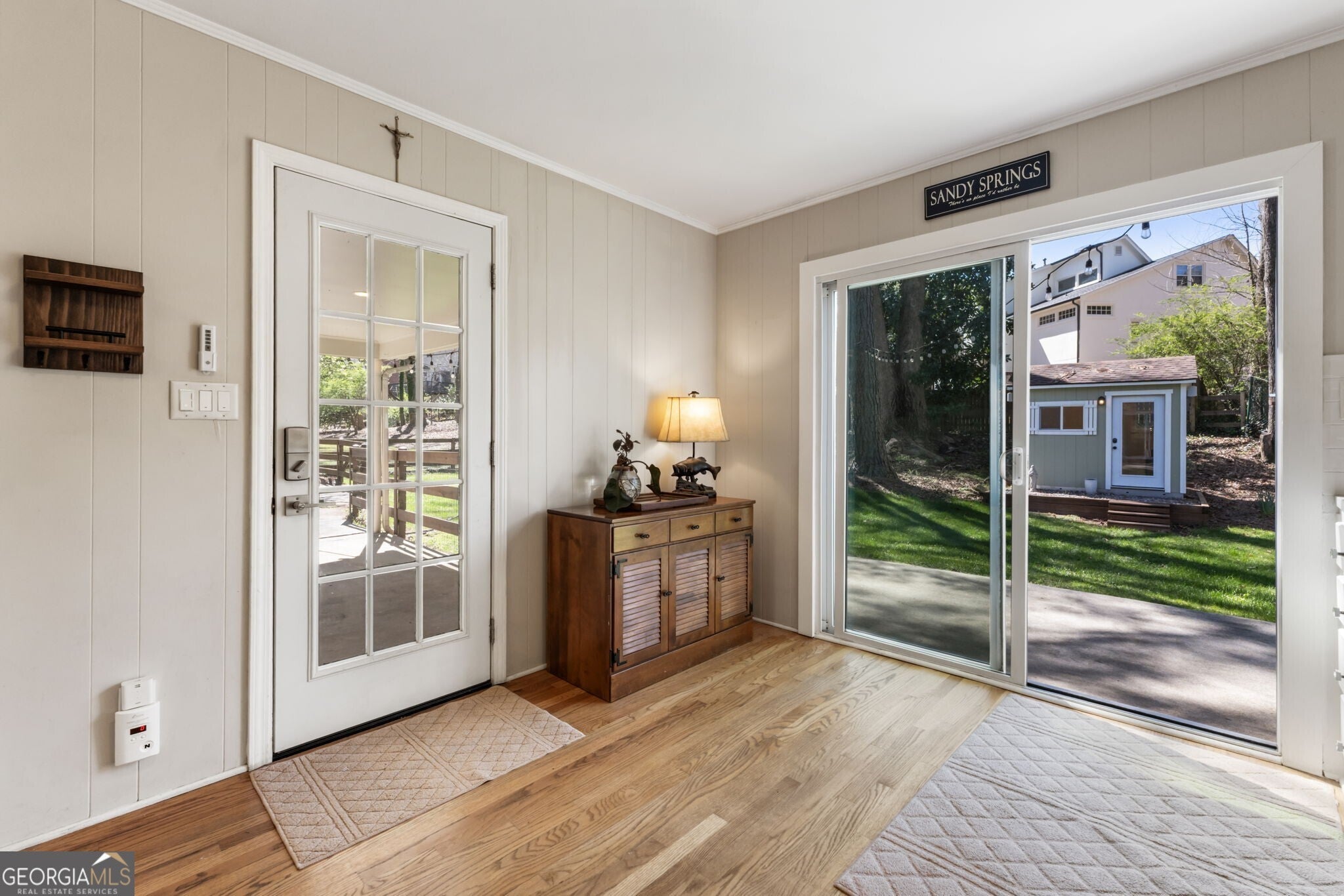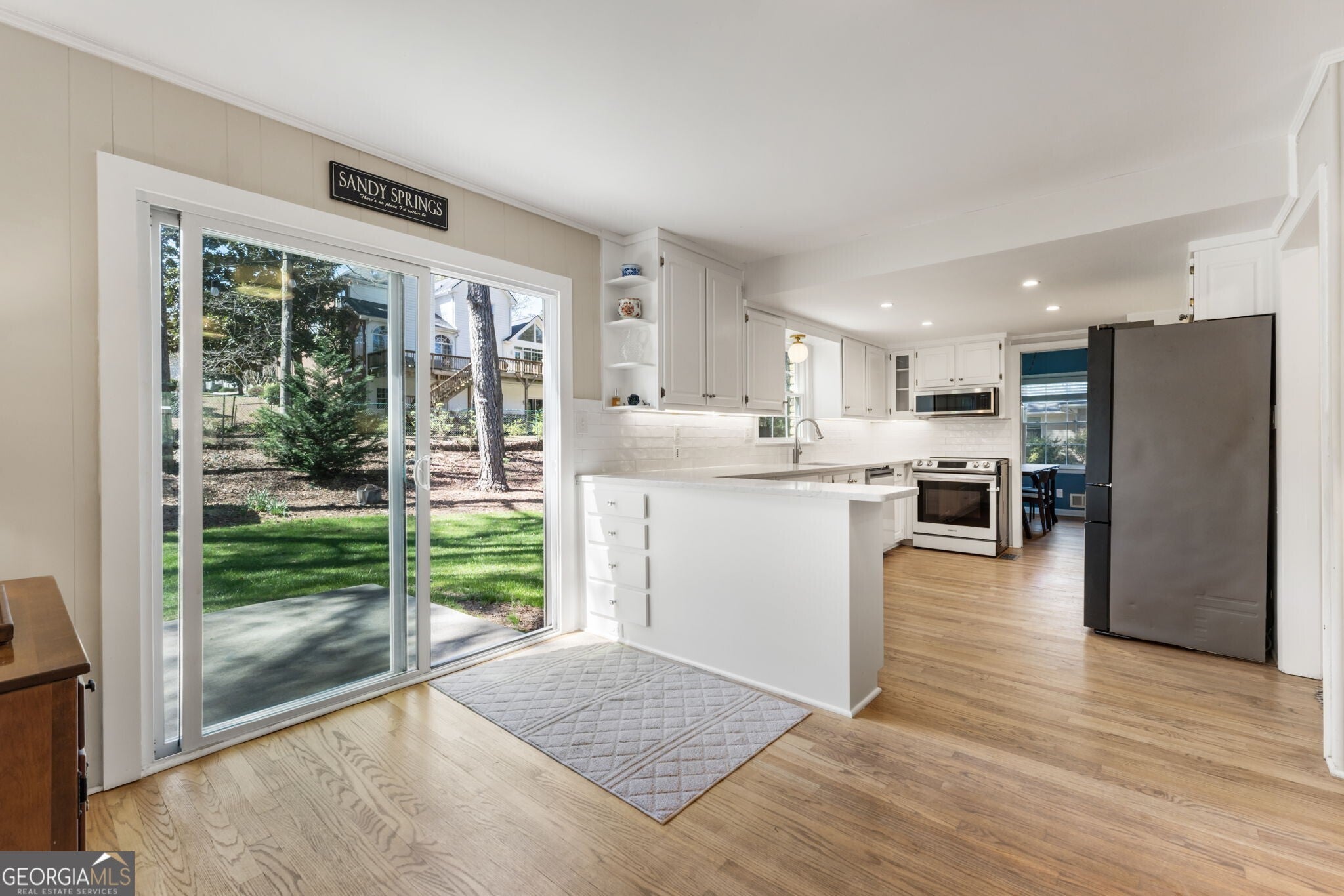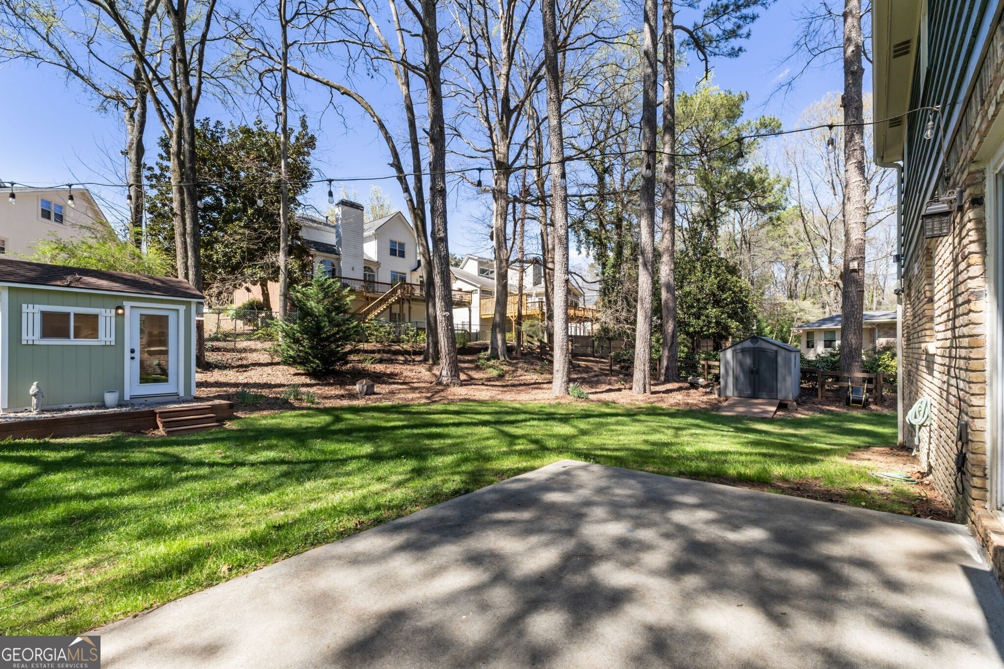 This quintessential traditional home in a quaint neighborhood tucked in a prime Sandy Springs location not only boasts curb appeal and a great yard, but has recently been upgraded with an all-new roof, tankless water heater, HVAC, windows, electrical, plumbing, sewer line and newly encapsulated crawlspace with a dehumidifier. As you step inside, the light and bright interior boasts updated light fixtures and gorgeous hardwood flooring throughout. The main level floor plan is ideal for easy everyday living as the cozy fireside living room, secondary living space and dining area all flow seamlessly into the kitchen and breakfast nook. The updated, neutral kitchen boasts plenty of counter space with a large breakfast bar that also serves as an island with additional cabinetry for storage, and a laundry room was conveniently created in the carport area to maximize use of kitchen space. Sliding glass doors open to a back porch and serene and private fenced-in backyard with plenty of space for enjoying the outdoors, grilling out or al fresco dining. A mod shed equipped with a mini split further extends the living space and serves as an ideal work-from-home setting or private retreat/play area. Upstairs are 4 bedrooms and 2 full bathrooms, including the primary suite with a completely updated private ensuite that makes excellent use of the space and boasts a frameless standing shower. Situated on a private +/- 0.42-acre lot on a quiet side street and rezoned for award-winning Heards Ferry Elementary, this idyllic neighborhood is just blocks to local restaurants and retail, public and private schools, and the City Springs center that hosts seasonal Farmers Market and community events at the City Green throughout the year. Take advantage of playgrounds, walking paths and green space at the nearby Abernathy Greenway, and get anywhere around town with easy access to Roswell Road, GA-400 and I-285.