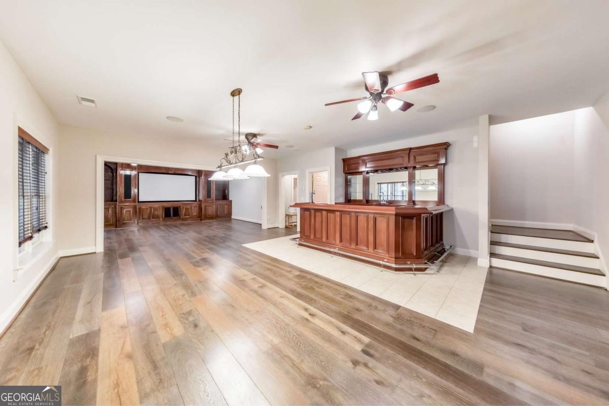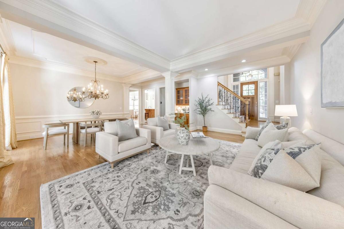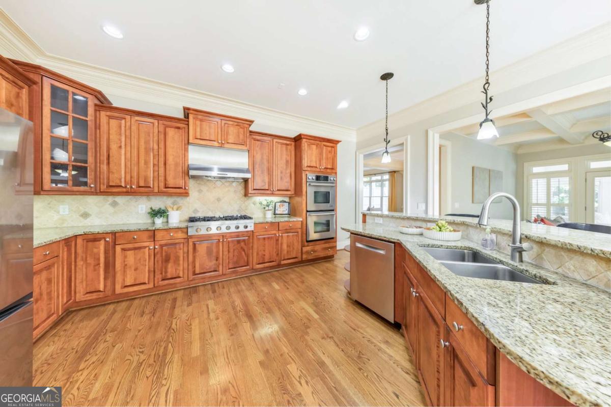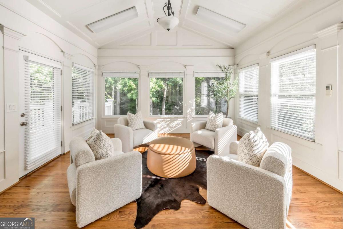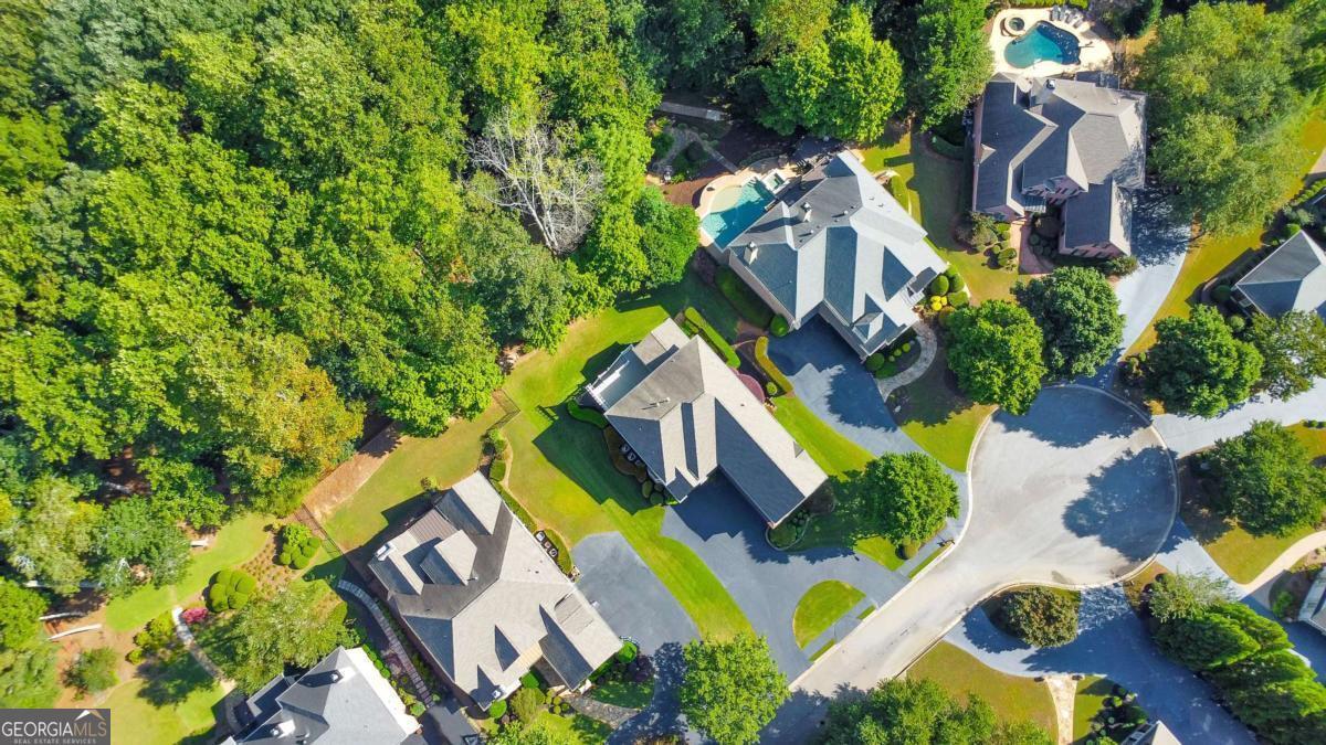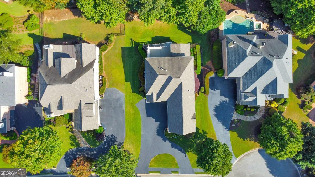 Here it is! The perfect home your family has been searching for! Nestled in a highly desirable Marietta neighborhood, this beautifully maintained 5-bedroom, 4.5-bath four-sided brick and stone residence sits on nearly half an acre at the end of a quiet cul-de-sac, just under two miles from Marietta Country Club and Mount Paran Christian School. Inside, a welcoming formal sitting and dining room sets the tone for entertaining family and friends. The heart of the home is the chef's kitchen featuring Jenn-Air double ovens, a brand-new six-burner cooktop, newer Bosch dishwasher, updated refrigerator, Pacific Trusteam vent hood, and granite countertops. The elegant keeping room flows seamlessly from the kitchen and offers a coffered ceiling, built-in shelves, and a gas fireplace. Just off this space, a bright sunroom, originally a screened-in porch, has been thoughtfully updated for year-round enjoyment. main-level laundry room with sink, storage, and washer/dryer adds everyday convenience. Timeless plantation shutters are featured throughout the home, and upgraded wrought iron spindles add sophistication to the staircase. Upstairs, the oversized primary suite impresses with soaring ceilings and a cozy sitting room with a gas fireplace. The spa-inspired primary bath includes vaulted ceilings, dual granite vanities, a jetted tub, shower, and a custom closet with two separate sections. Three additional oversized bedrooms complete the upper level, with two sharing a bath offering separate vanity areas and one featuring its own ensuite. Beautiful wood floors extend through the main, upper, and finished basement levels, while tile floors enhance all bathrooms. The finished basement is designed for entertaining, with a rec room featuring engineered wood flooring, a real brick accent wall, and a bar with kegerator, wine fridge, and ice maker. A projector system with screen and built-in entertainment center turns this space into the ultimate media room. This level also offers a full bath, bedroom/flex room, and abundant storage. Outside, a rear deck, covered lower patio with under-deck system, Zoysia lawn, and pergola swing provide a serene backdrop for outdoor living. Recent major updates include upstairs and main HVAC replaced in 2020 with a warranty and Cool Air maintenance, plus an ejector pump. The grounds are pristine thanks to a 4-zone sprinkler system and professional landscaping. Additional highlights include a circular driveway, three-car garage, and easy access to the neighborhood tennis courts. This remarkable home perfectly blends comfort, style, and community, making it an ideal place to build lasting family memories.