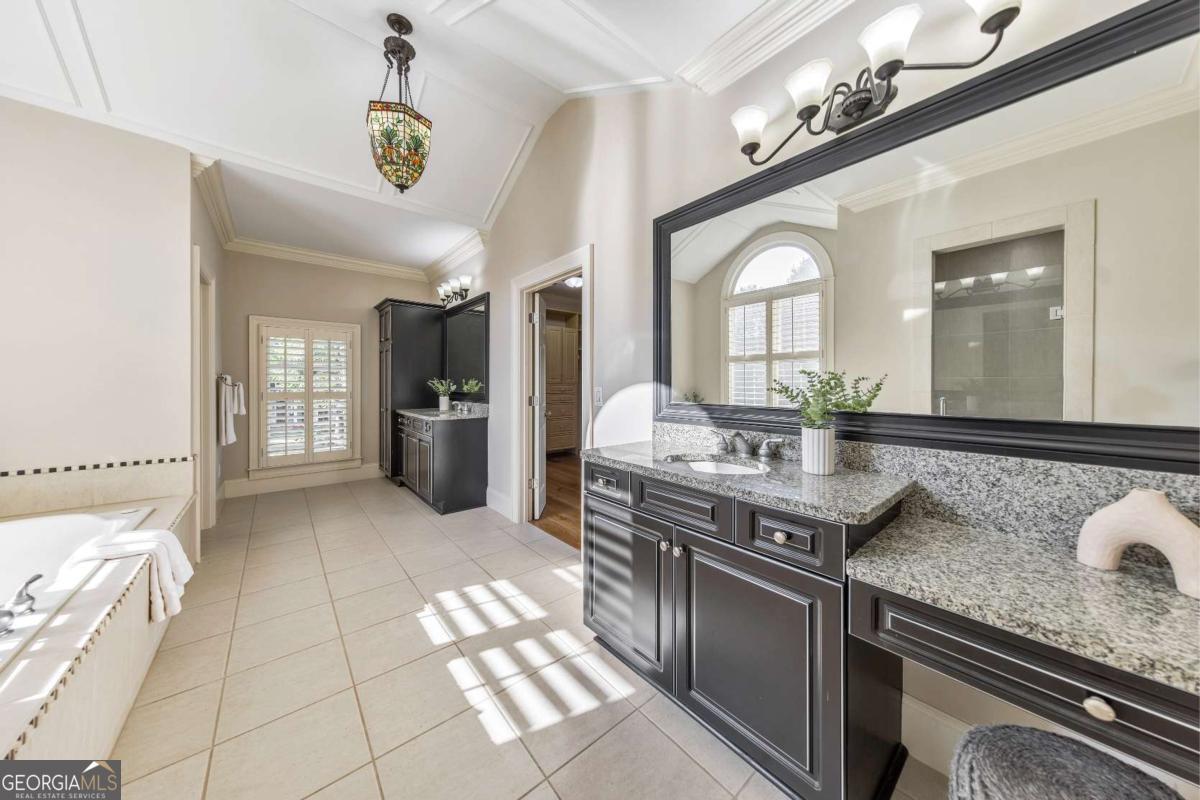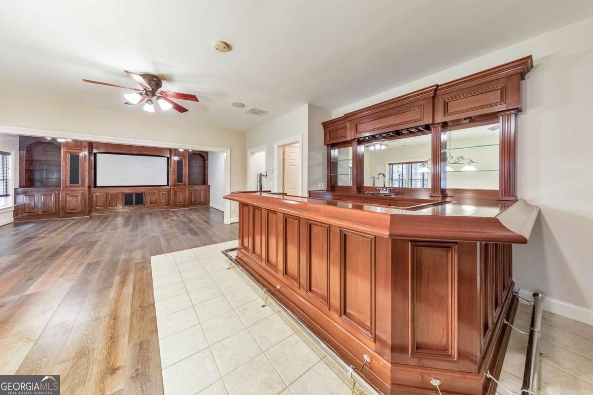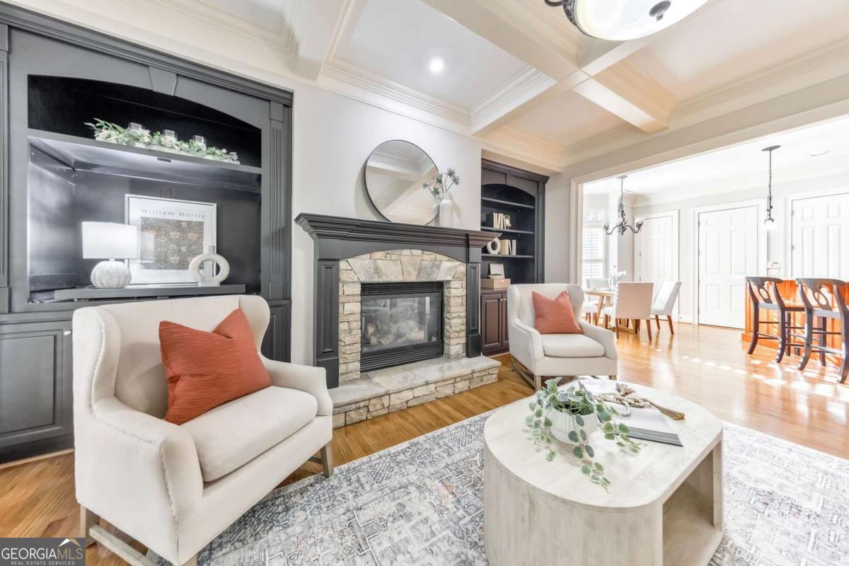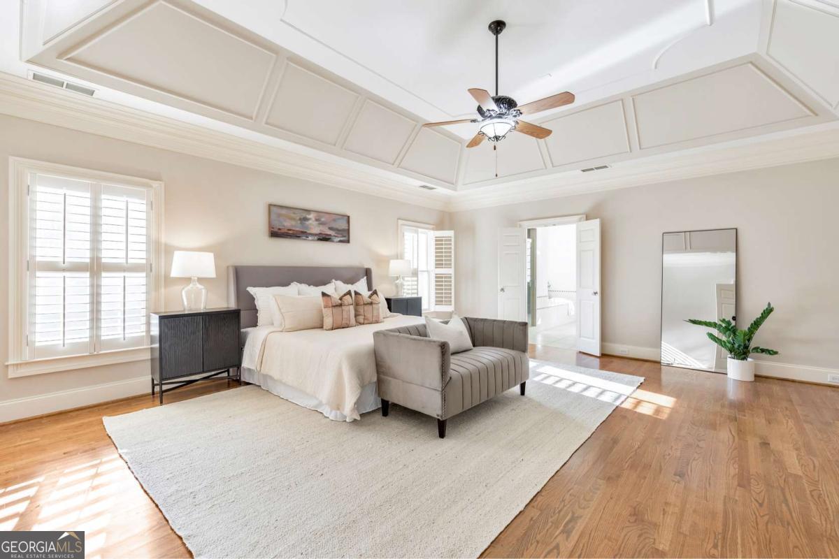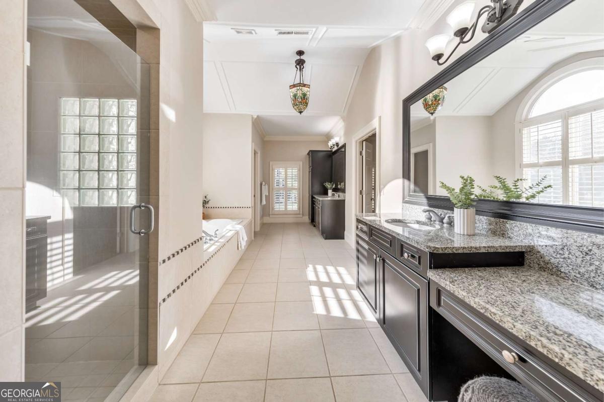 Here it is! The perfect home your family has been searching for! Nestled in a highly desirable Marietta neighborhood, this beautifully maintained 5-bedroom, 4.5-bath four-sided brick and stone residence sits on nearly half an acre at the end of a quiet cul-de-sac, just under two miles from Marietta Country Club and Mount Paran Christian School. Inside, a welcoming formal sitting and dining room sets the tone for entertaining family and friends. The heart of the home is the chef's kitchen featuring Jenn-Air double ovens, a brand-new six-burner cooktop, newer Bosch dishwasher, updated refrigerator, Pacific Trusteam vent hood, and granite countertops. The elegant keeping room flows seamlessly from the kitchen and offers a coffered ceiling, built-in shelves, and a gas fireplace. Just off this space, a bright sunroom, originally a screened-in porch, has been thoughtfully updated for year-round enjoyment. main-level laundry room with sink, storage, and washer/dryer adds everyday convenience. Timeless plantation shutters are featured throughout the home, and upgraded wrought iron spindles add sophistication to the staircase. Upstairs, the oversized primary suite impresses with soaring ceilings and a cozy sitting room with a gas fireplace. The spa-inspired primary bath includes vaulted ceilings, dual granite vanities, a jetted tub, shower, and a custom closet with two separate sections. Three additional oversized bedrooms complete the upper level, with two sharing a bath offering separate vanity areas and one featuring its own ensuite. Beautiful wood floors extend through the main, upper, and finished basement levels, while tile floors enhance all bathrooms. The finished basement is designed for entertaining, with a rec room featuring engineered wood flooring, a real brick accent wall, and a bar with kegerator, wine fridge, and ice maker. A projector system with screen and built-in entertainment center turns this space into the ultimate media room. This level also offers a full bath, bedroom/flex room, and abundant storage. Outside, a rear deck, covered lower patio with under-deck system, Zoysia lawn, and pergola swing provide a serene backdrop for outdoor living. Recent major updates include upstairs and main HVAC replaced in 2020 with a warranty and Cool Air maintenance, plus an ejector pump. The grounds are pristine thanks to a 4-zone sprinkler system and professional landscaping. Additional highlights include a circular driveway, three-car garage, and easy access to the neighborhood tennis courts. This remarkable home perfectly blends comfort, style, and community, making it an ideal place to build lasting family memories.