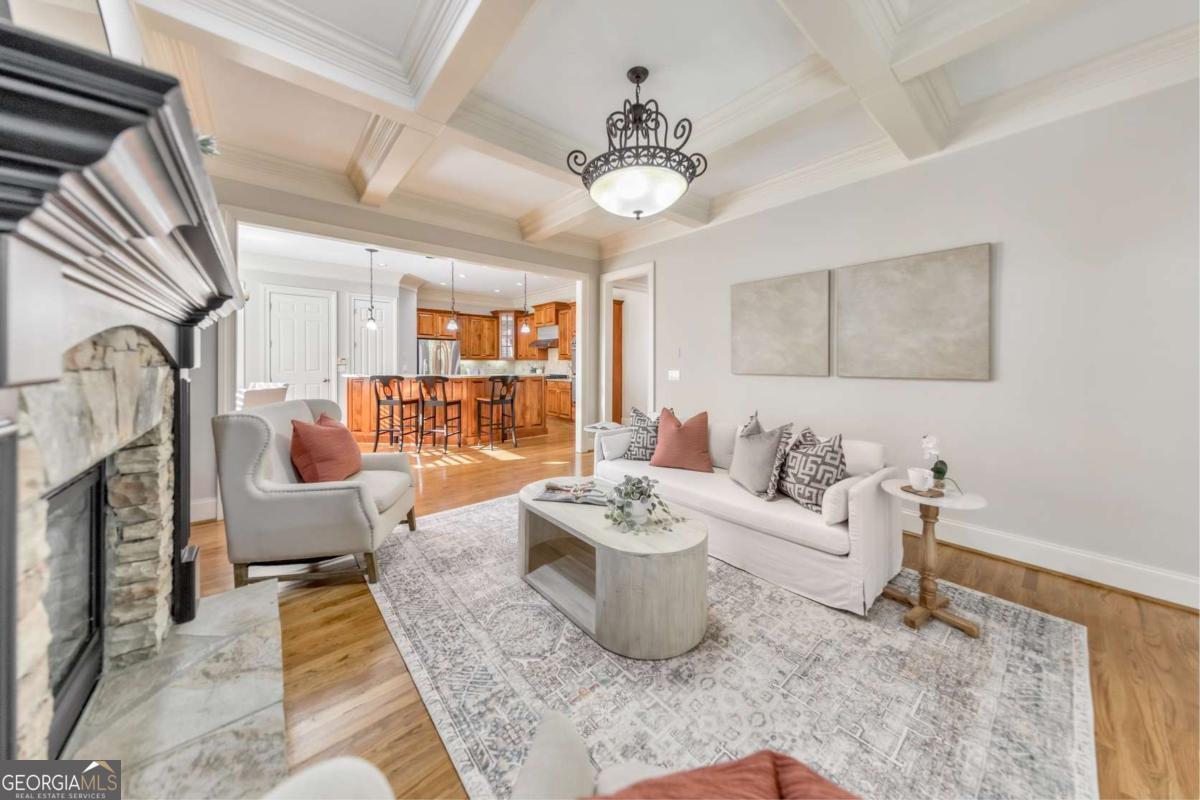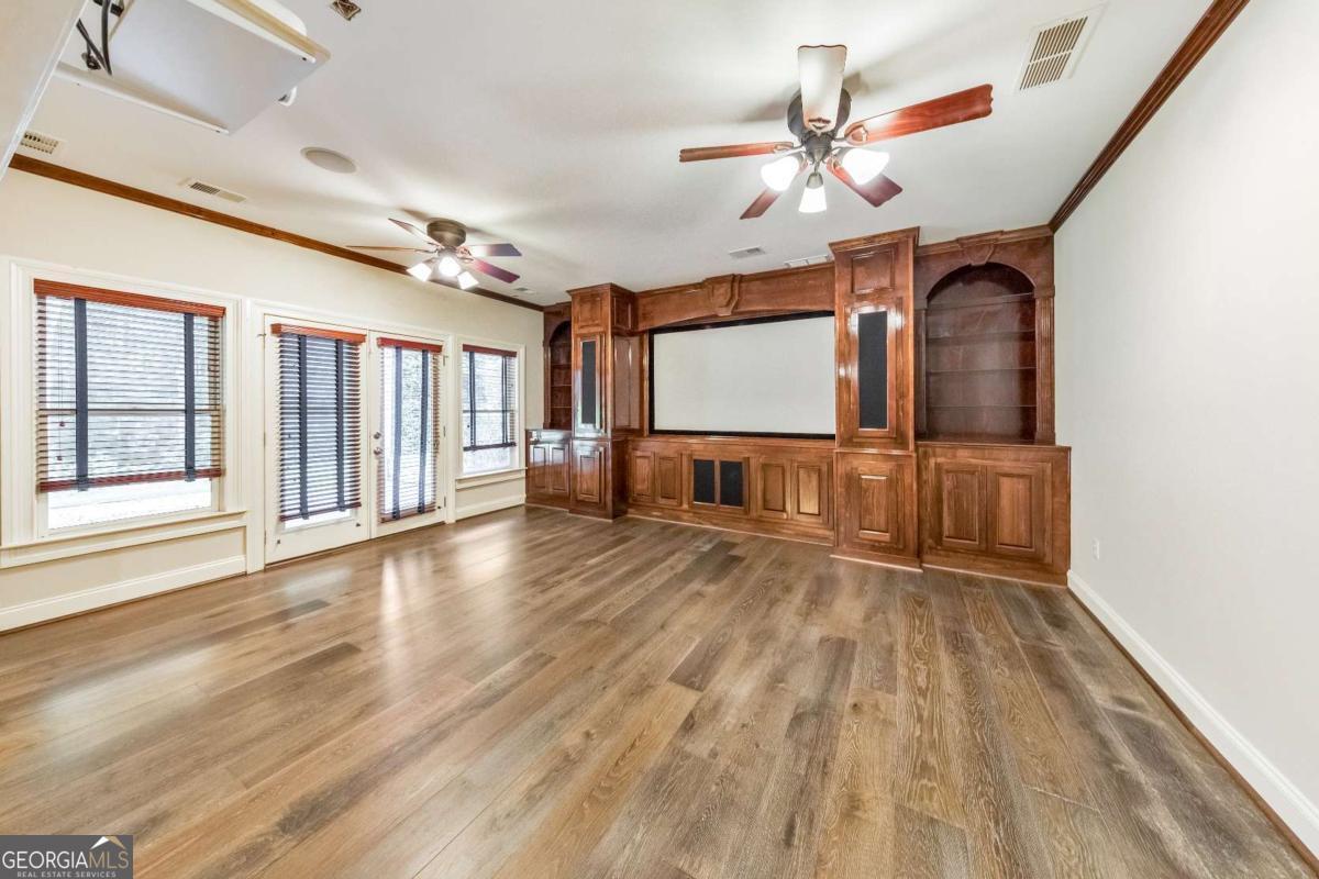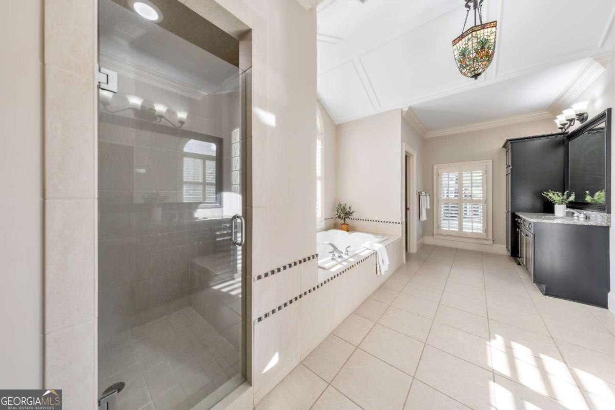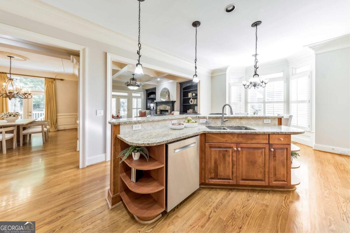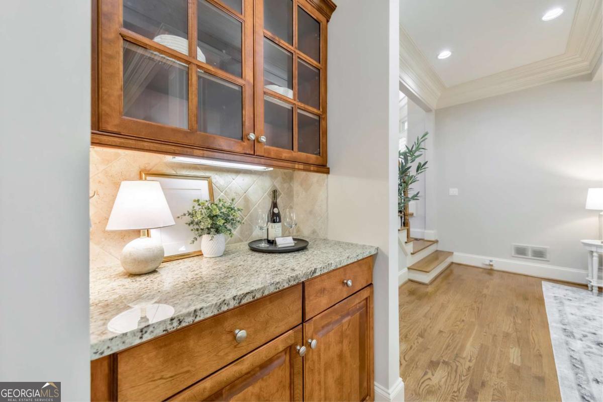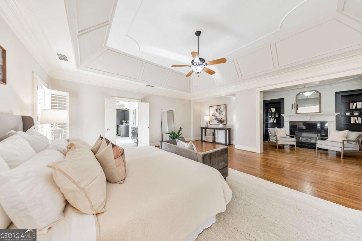 Here it is! The perfect home your family has been searching for! Nestled in a highly desirable Marietta neighborhood, this beautifully maintained 5-bedroom, 4.5-bath four-sided brick and stone residence sits on nearly half an acre at the end of a quiet cul-de-sac, just under two miles from Marietta Country Club and Mount Paran Christian School. Inside, a welcoming formal sitting and dining room sets the tone for entertaining family and friends. The heart of the home is the chef's kitchen featuring Jenn-Air double ovens, a brand-new six-burner cooktop, newer Bosch dishwasher, updated refrigerator, Pacific Trusteam vent hood, and granite countertops. The elegant keeping room flows seamlessly from the kitchen and offers a coffered ceiling, built-in shelves, and a gas fireplace. Just off this space, a bright sunroom, originally a screened-in porch, has been thoughtfully updated for year-round enjoyment. main-level laundry room with sink, storage, and washer/dryer adds everyday convenience. Timeless plantation shutters are featured throughout the home, and upgraded wrought iron spindles add sophistication to the staircase. Upstairs, the oversized primary suite impresses with soaring ceilings and a cozy sitting room with a gas fireplace. The spa-inspired primary bath includes vaulted ceilings, dual granite vanities, a jetted tub, shower, and a custom closet with two separate sections. Three additional oversized bedrooms complete the upper level, with two sharing a bath offering separate vanity areas and one featuring its own ensuite. Beautiful wood floors extend through the main, upper, and finished basement levels, while tile floors enhance all bathrooms. The finished basement is designed for entertaining, with a rec room featuring engineered wood flooring, a real brick accent wall, and a bar with kegerator, wine fridge, and ice maker. A projector system with screen and built-in entertainment center turns this space into the ultimate media room. This level also offers a full bath, bedroom/flex room, and abundant storage. Outside, a rear deck, covered lower patio with under-deck system, Zoysia lawn, and pergola swing provide a serene backdrop for outdoor living. Recent major updates include upstairs and main HVAC replaced in 2020 with a warranty and Cool Air maintenance, plus an ejector pump. The grounds are pristine thanks to a 4-zone sprinkler system and professional landscaping. Additional highlights include a circular driveway, three-car garage, and easy access to the neighborhood tennis courts. This remarkable home perfectly blends comfort, style, and community, making it an ideal place to build lasting family memories.