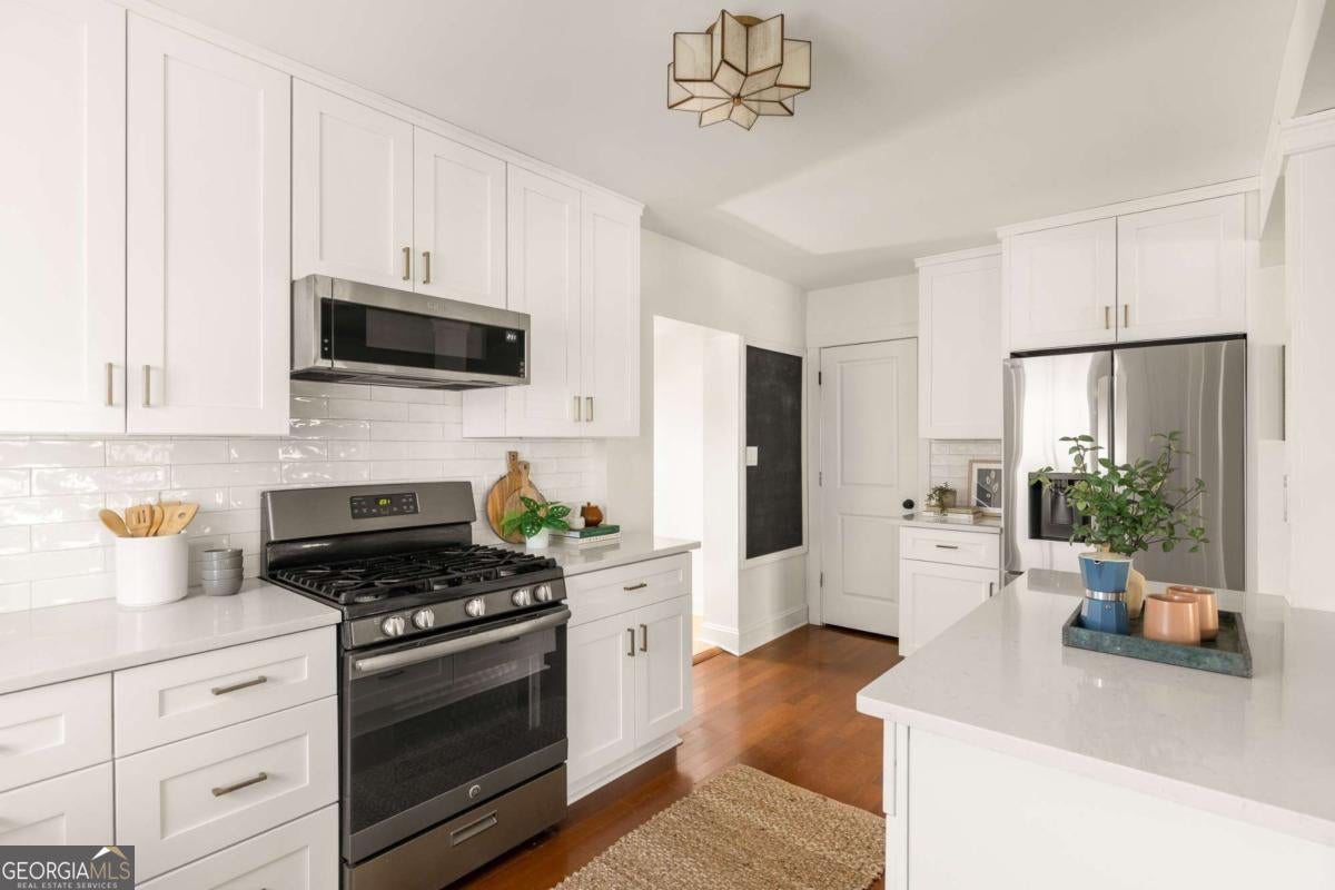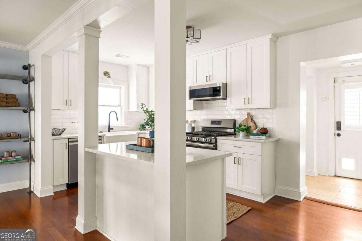 We are so excited to introduce this fabulous bungalow to you! The vibe of this home is part Scandinavian meets brick craftsman - and it is as cool as it sounds. With 3 full bedrooms and 3 full bathrooms, it has double owner's suites (one on each level), spacious living areas filled with natural light, and a renovated kitchen with ample storage and workspace. As you walk in, you enter the sun-drenched, open-concept living and dining area. With extra high ceilings, the living room has the original fireplace as the focal point and you step up to the kitchen and dining spaces. The kitchen features updated white cabinetry, quartz countertops, and separate pantry area. Behind the kitchen, is a large laundry area leading to the gorgeous private yard. Not only does the first floor have the en-suite space, but it also has a secondary bedroom perfect for guests or an at home office. A retreat awaits you at the top of the stairs, featuring a large primary bedroom and bathroom. Take a long nap after being taken away by calgon in the bathtub. The backyard is private with an outdoor kitchen and patio area. It is ideal for gatherings, gardening, or simply unwinding with a cocktail or mocktail at the end of the day. And finally, 467 E Pharr offers easy access downtown Decatur, Oakhurst Village, and some of the area's most beloved parks, shops, and restaurants providing the fabulous community feel that make Decatur so desirable. This is a fantastic opportunity to live and play in one of Decatur's most sought-after areas! A must see!
