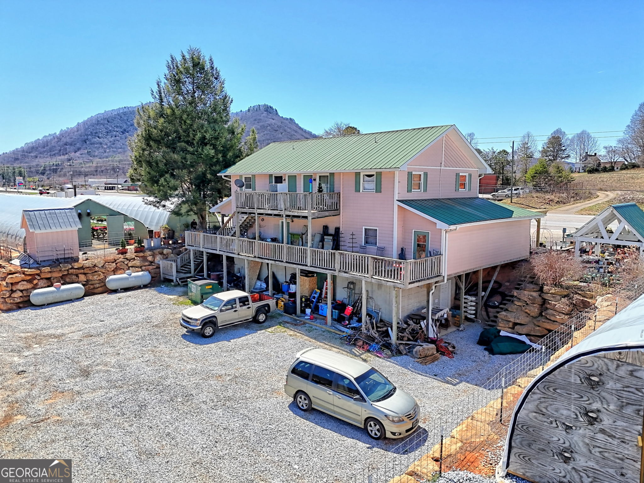 If you have dreamed of owning your own business in the beautiful north Georgia mountains, the possibilities here are endless. This 5.66 acre property offers ample frontage on Highway 441. The main building offers retail space on the main level as well as an office, kitchen, and bathroom. The upper level includes two income producing apartments, 2b/1ba each. The lower level is a full unfinished basement that serves as storage and also features a laundry area for the tenants to use. The property features access to the creek via a deeded 0.5 acre tract. Whatever your goals as a business owner, this property has so much to offer.