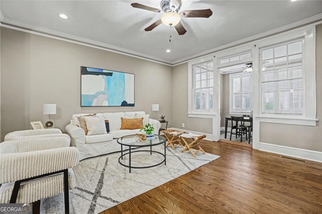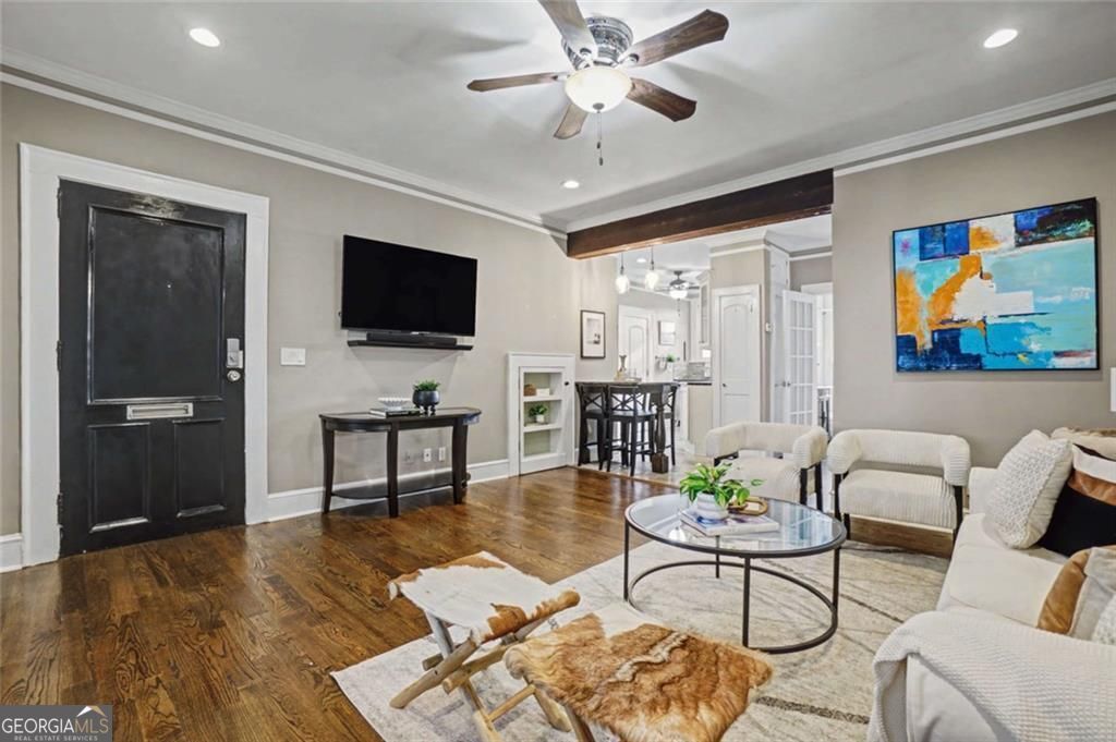 Welcome to Park Place Manor, one of Midtown's most coveted communities, where charm, location, and lifestyle come together beautifully. Situated directly across from Piedmont Park. Step inside and you'll immediately love the open-concept floor plan, seamlessly connecting the kitchen and living room - perfect for everyday living and effortless entertaining. The kitchen features stone tile flooring, a granite breakfast bar, and recessed lighting, creating a stylish and functional space to cook, gather, and connect. The large living area is full of character, highlighted by charming built-in bookcases and clever hidden storage tucked behind them - a unique feature you won't find just anywhere. Just off the living room, the spacious sunroom with plantation shutters offers the perfect flex space - ideal for a home office, reading nook, or relaxing retreat filled with natural light. Throughout the home, you'll find beautifully refinished solid hardwood floors and thoughtful upgrades that give the space warmth and style. Convenience is key with laundry in the unit and the entire community wired for Google Fiber. Outside your door, the beautiful green courtyard at the center of the community offers a wonderful gathering space - the perfect spot to enjoy Midtown's lively atmosphere, festivals, parades, and neighborhood events. Even better, you can walk everywhere: Piedmont Park, Atlanta Botanical Gardens, the BeltLine, Ponce City Market, Trader Joe's, dozens of Midtown's best restaurants and cafes. Low HOA dues include water, trash, and sewer, making this home as practical as it is desirable. If you've been looking for the perfect combination of location, character, and walkable Midtown living, this is the one. Come experience Park Place Manor and the Piedmont Park lifestyle for yourself!
