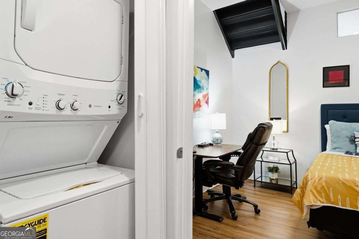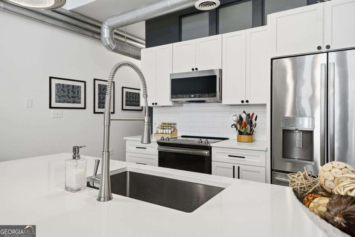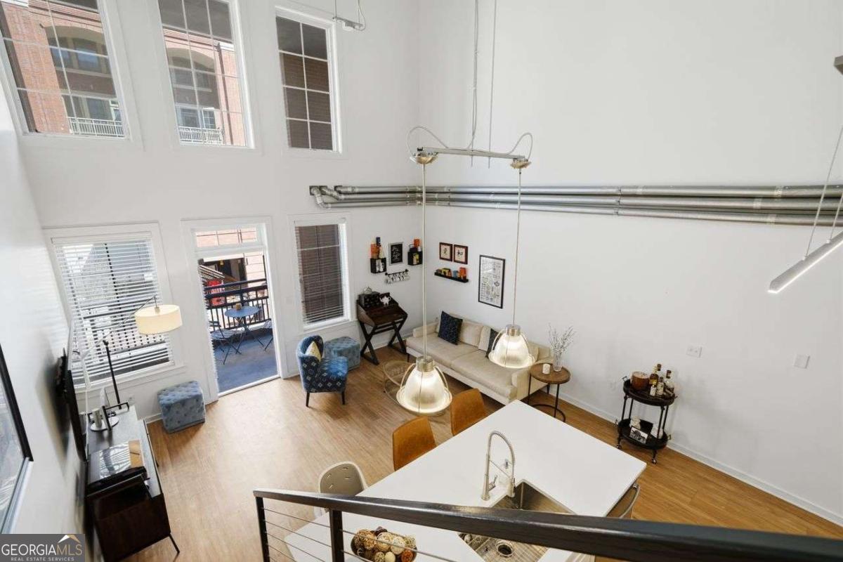 Industrial edge meets Atlanta energy in the sought-after District Lofts. Perfectly positioned in one of the city's fastest-growing urban corridors, this two-level loft places you steps from Atlanta's booming tech scene, creative offices, and the kind of walkable lifestyle that defines intown living. Inside, dramatic 22-foot ceilings, exposed concrete beams, and expansive windows set the tone-bold, modern, and unmistakably loft living. The main level features a full bedroom and bath ideal for guests or a home office, while the upstairs open loft serves as a spacious primary suite with a sleek, modern bathroom. The kitchen delivers clean, contemporary style with high-end quartz countertops, stainless steel appliances, and an open layout made for entertaining before hitting the BeltLine, nightlife, or nearby dining hotspots. Stylish. Industrial. Intown. This is Atlanta loft living at its best-where design, location, and momentum collide.