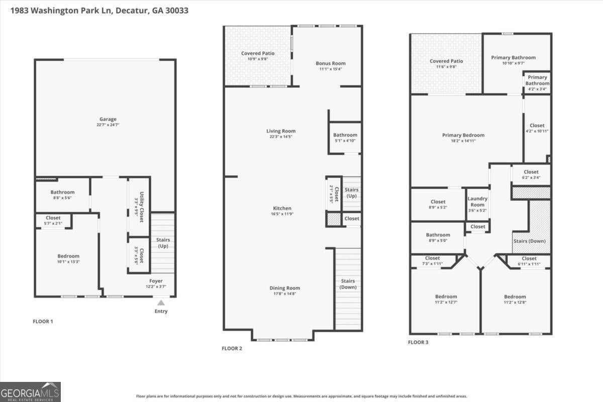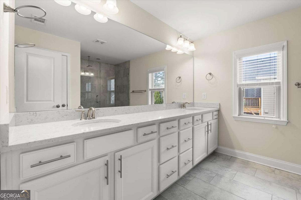 Located in the highly desirable Parkside at Mason Mill community, this sun-filled, move-in ready townhome offers two outdoor spaces, a covered deck off of the sunroom and and open sundeck off of the Primary Bedroom. The deck located on the main level is fully covered for year-round enjoyment. The lower level is accessed via the 2 car garage and the front door and has a bedroom, full bath and coat closet. The main level has an open-concept layout including a spacious dining area and kitchen featuring stainless steel appliances, quartz countertops, and giant island that transitions to the living area, alcove with built-in desk, sunroom and private 1/2 bath. Guests will appreciate the convenient two banks of guest parking spaces located on Central Park Road. The upper level includes an oversized primary suite with two walk-in closets, a ensuite bathroom with double vanity, a large walk-in shower, and direct access to the private sundeck. There is a walk-in linen closet in the hallway, and two additional bedrooms and additional third bath complete the upper level. Residents enjoy exceptional community amenities, including a clubhouse with fitness center and large gathering area for neighborhood events, junior Olympic-sized pool, dog park, and scenic walking trails with access to the PATH South Peachtree Creek Trail. Ideally located just minutes from Emory University, CHOA Arthur Blank Hospital, the VA, CDC, Toco Hill Shopping Center, and downtown Decatur.