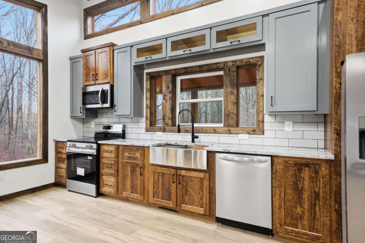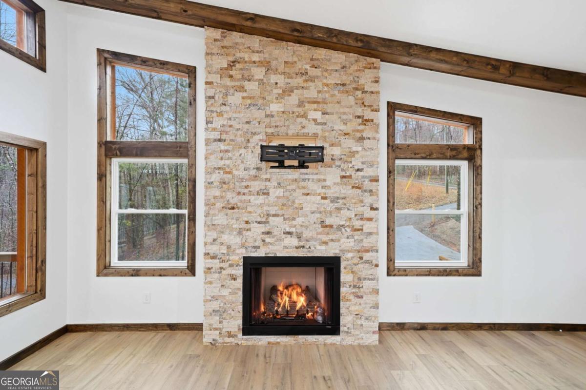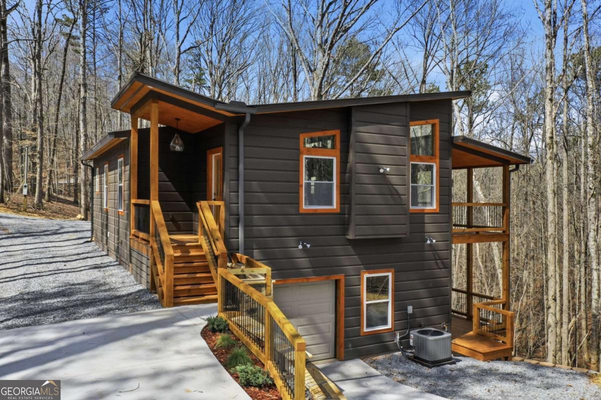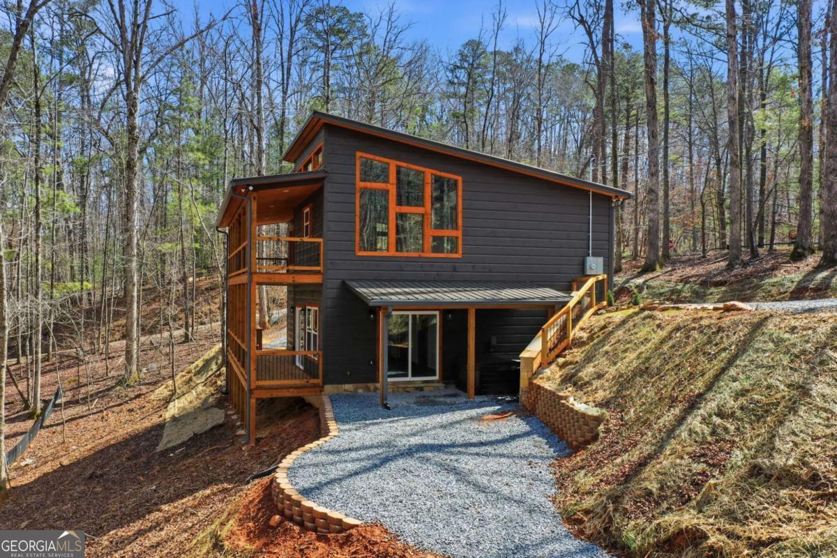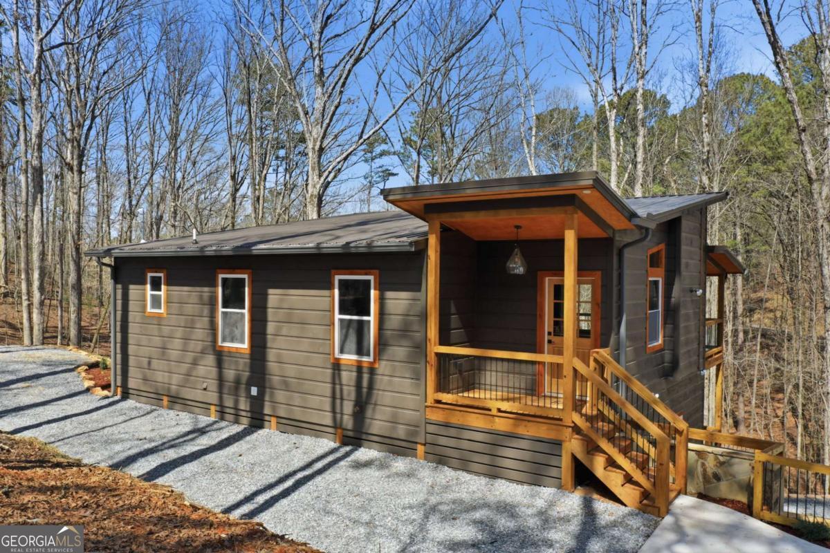 Dear Buyer, if you are looking for a NEW CONSTRUCTION quiet retreat, you will feel right at home at The Modern Monticello-a stunning new construction North Georgia cabin tucked into the trees of sought-after Coosawattee River Resort. Blending modern design with rustic mountain charm, this thoughtfully crafted home offers an open-concept layout with a spacious living, dining, and kitchen area-perfect for entertaining, relaxing, or maximizing short-term rental (STR) income potential. The kitchen is beautifully appointed with a pantry, granite countertops, farmhouse sink, and custom cabinetry, flowing seamlessly into the main living space anchored by a cozy fireplace and soaring ceilings. Lovely principal suite with double vanity and tiled shower on the main level. Step outside and experience what mountain living is all about-two levels of covered porches overlooking the peaceful forest, creating the ultimate indoor-outdoor lifestyle. Whether you're enjoying morning coffee, evening wine, or hosting guests, the setting is pure North Georgia magic. Designed with both comfort and functionality in mind, the home features: A rare mountain garage + lower-level parking (a huge win for buyers & renters) Horseshoe driveway with abundant parking-ideal for guests and STR turnover Dedicated laundry room Convenient half bath for guests Private hot tub + fire pit area for year-round enjoyment Located inside Coosawattee River Resort, owners and guests enjoy access to top-tier amenities including pools, fitness center, river access, parks, and more-making this an exceptional second home, vacation rental, or full-time residence. Be the very first to make memories in this brand-new Ellijay cabin.