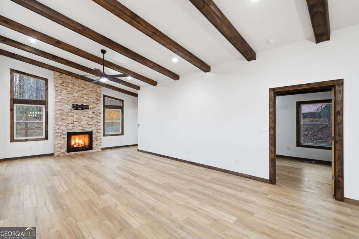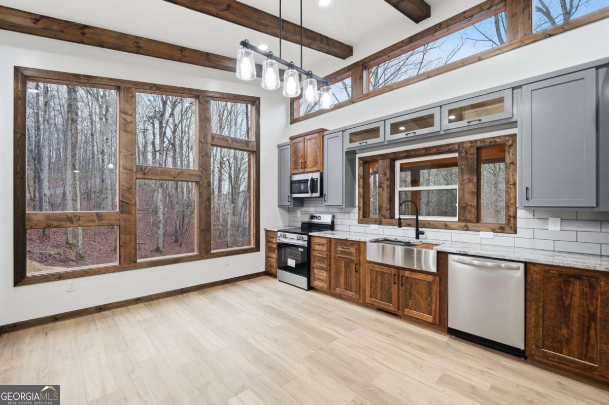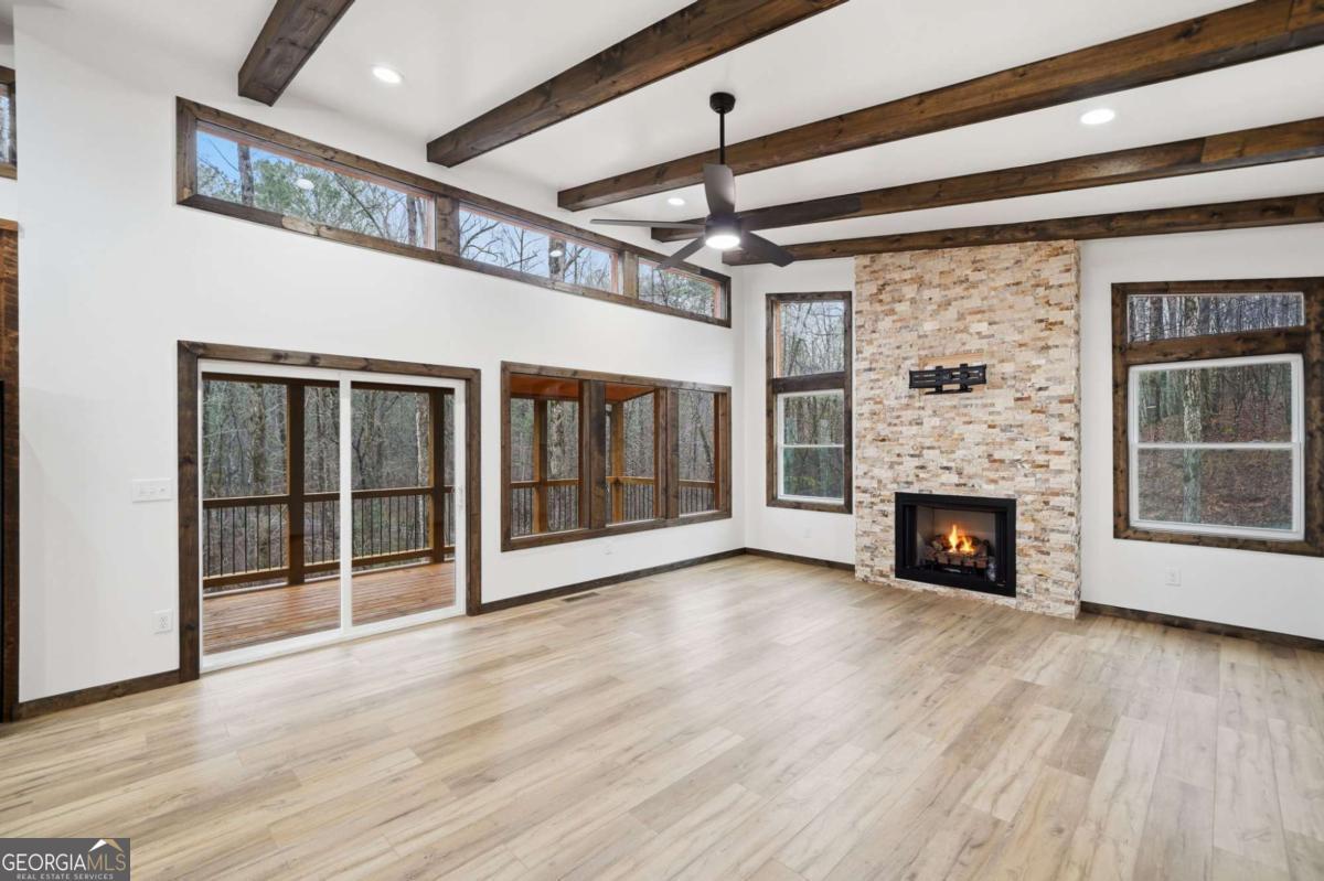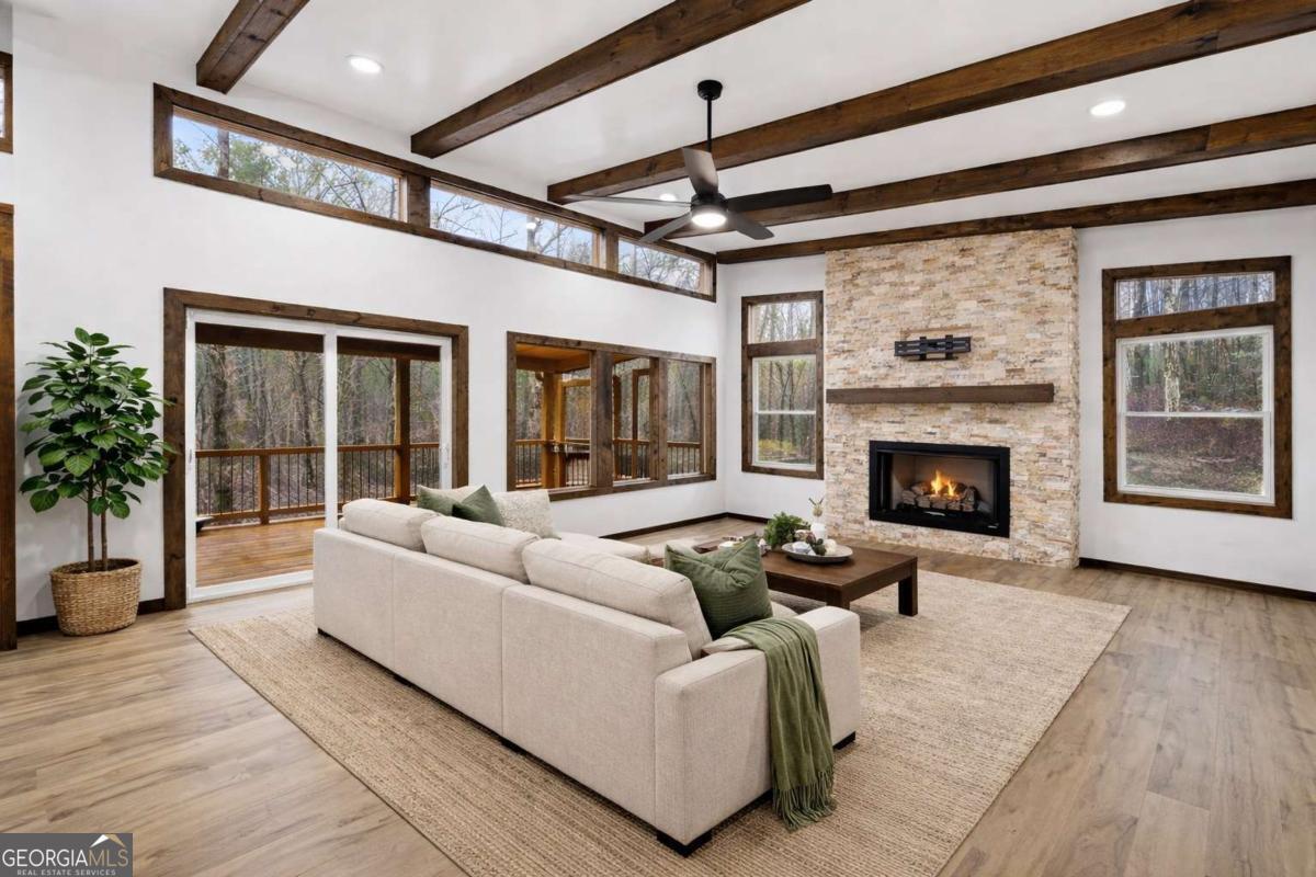 Dear Buyer, if you are looking for a NEW CONSTRUCTION quiet retreat, you will feel right at home at The Modern Monticello-a stunning new construction North Georgia cabin tucked into the trees of sought-after Coosawattee River Resort. Blending modern design with rustic mountain charm, this thoughtfully crafted home offers an open-concept layout with a spacious living, dining, and kitchen area-perfect for entertaining, relaxing, or maximizing short-term rental (STR) income potential. The kitchen is beautifully appointed with a pantry, granite countertops, farmhouse sink, and custom cabinetry, flowing seamlessly into the main living space anchored by a cozy fireplace and soaring ceilings. Lovely principal suite with double vanity and tiled shower on the main level. Step outside and experience what mountain living is all about-two levels of covered porches overlooking the peaceful forest, creating the ultimate indoor-outdoor lifestyle. Whether you're enjoying morning coffee, evening wine, or hosting guests, the setting is pure North Georgia magic. Designed with both comfort and functionality in mind, the home features: A rare mountain garage + lower-level parking (a huge win for buyers & renters) Horseshoe driveway with abundant parking-ideal for guests and STR turnover Dedicated laundry room Convenient half bath for guests Private hot tub + fire pit area for year-round enjoyment Located inside Coosawattee River Resort, owners and guests enjoy access to top-tier amenities including pools, fitness center, river access, parks, and more-making this an exceptional second home, vacation rental, or full-time residence. Be the very first to make memories in this brand-new Ellijay cabin.
