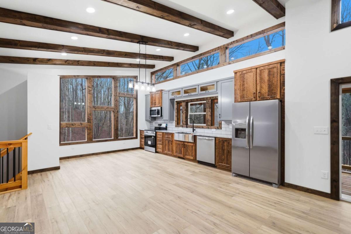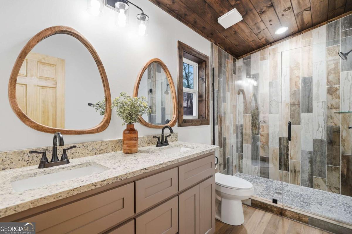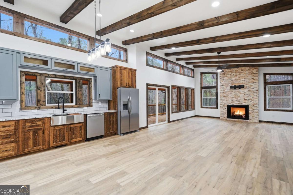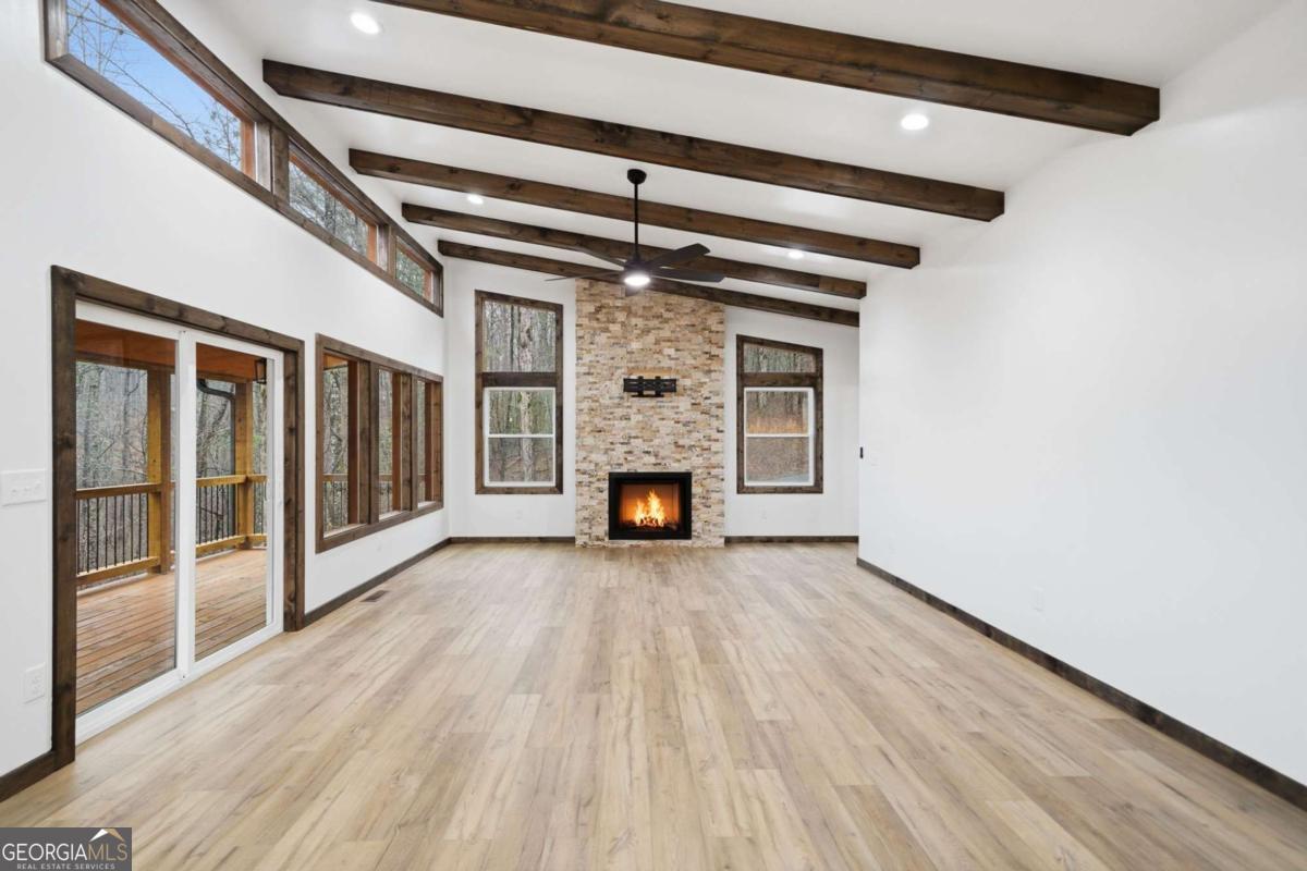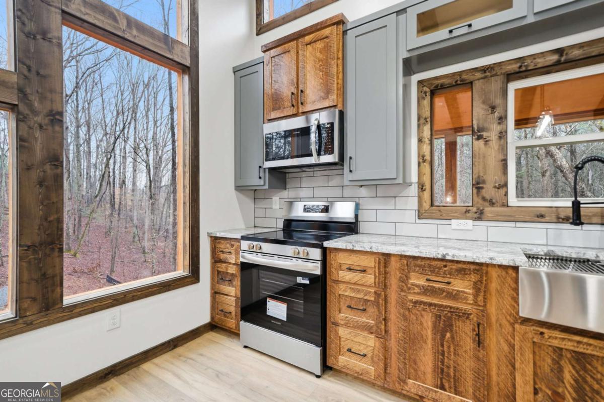 Dear Buyer, if you are looking for a NEW CONSTRUCTION quiet retreat, you will feel right at home at The Modern Monticello-a stunning new construction North Georgia cabin tucked into the trees of sought-after Coosawattee River Resort. Blending modern design with rustic mountain charm, this thoughtfully crafted home offers an open-concept layout with a spacious living, dining, and kitchen area-perfect for entertaining, relaxing, or maximizing short-term rental (STR) income potential. The kitchen is beautifully appointed with a pantry, granite countertops, farmhouse sink, and custom cabinetry, flowing seamlessly into the main living space anchored by a cozy fireplace and soaring ceilings. Lovely principal suite with double vanity and tiled shower on the main level. Step outside and experience what mountain living is all about-two levels of covered porches overlooking the peaceful forest, creating the ultimate indoor-outdoor lifestyle. Whether you're enjoying morning coffee, evening wine, or hosting guests, the setting is pure North Georgia magic. Designed with both comfort and functionality in mind, the home features: A rare mountain garage + lower-level parking (a huge win for buyers & renters) Horseshoe driveway with abundant parking-ideal for guests and STR turnover Dedicated laundry room Convenient half bath for guests Private hot tub + fire pit area for year-round enjoyment Located inside Coosawattee River Resort, owners and guests enjoy access to top-tier amenities including pools, fitness center, river access, parks, and more-making this an exceptional second home, vacation rental, or full-time residence. Be the very first to make memories in this brand-new Ellijay cabin.