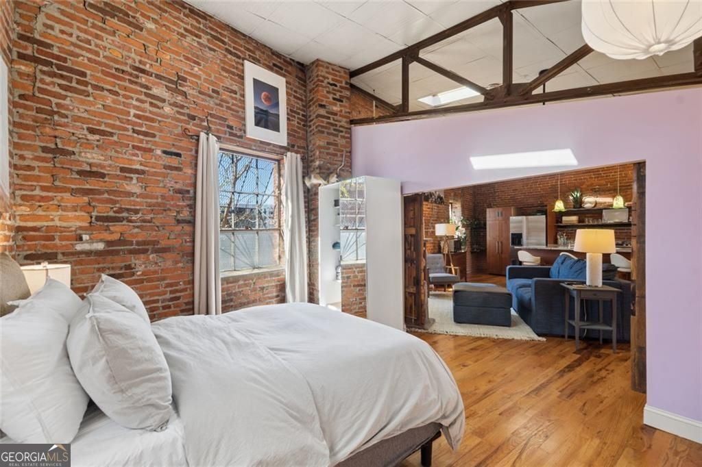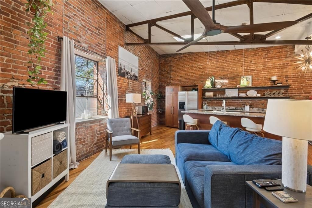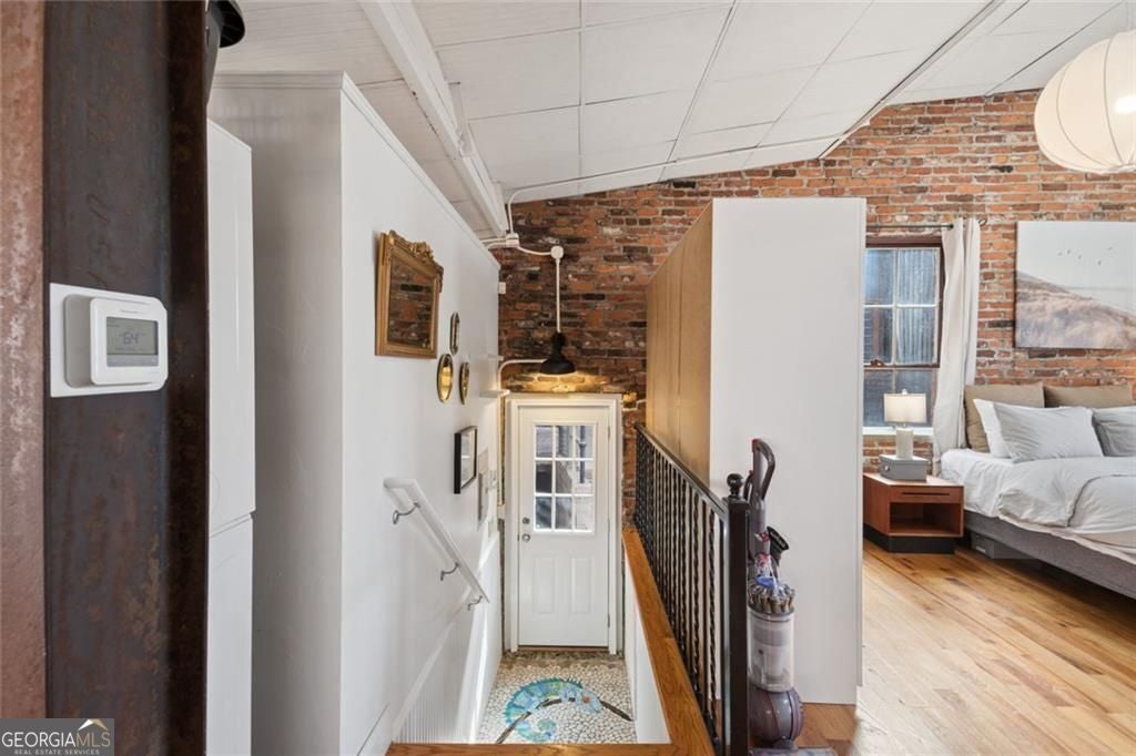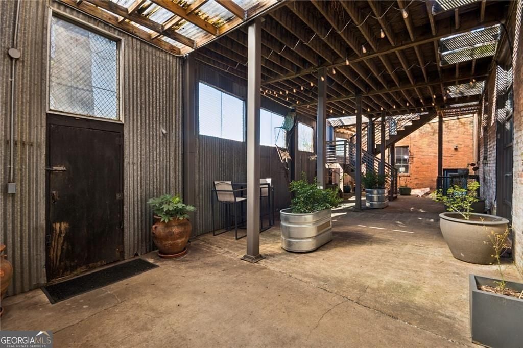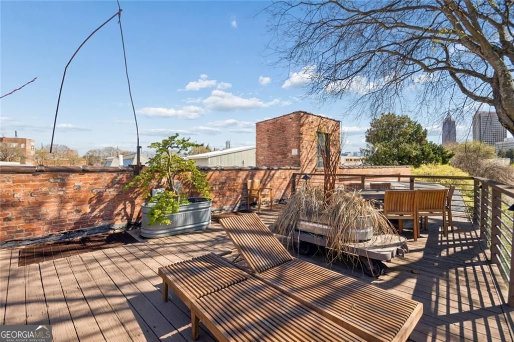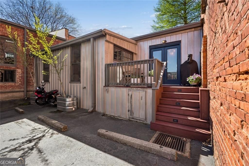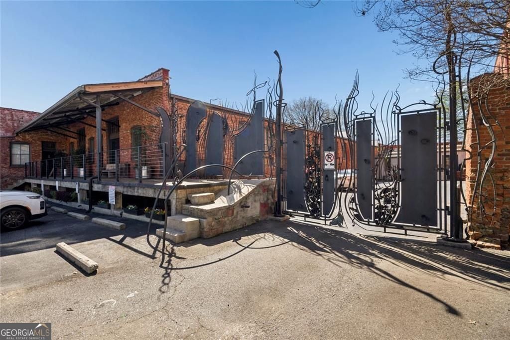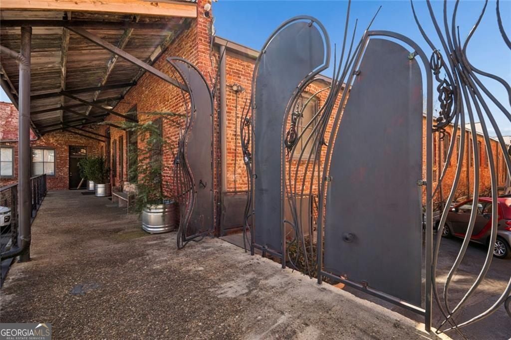 This beautiful free-standing loft sits just minutes from Georgia Tech and offers a rare mix of industrial character and warm design. Tucked behind hand-forged iron gates, the home welcomes you with a short private drive leading to its front deck and entrance, giving it a sense of privacy that's hard to find in the city. Inside, the updated kitchen features granite and quartz countertops, oak hardwood floors, and hand-tiled mosaic details. Barn doors crafted from Thai fishing boats open to a spacious bedroom filled with skylights, original windows, and historic steel trusses dating back to 1886. There's also a separate office area that could easily function as a second bedroom. Step out the back door and you'll find a private patio, plus access to a shaded rooftop deck with city views, a dog run, gym, storage unit, and additional storage beneath the porch. Guest parking is free, making it easy for friends to visit. If you enjoy spaces with history, character, and a little privacy in the middle of the city, this one might be worth a closer look.