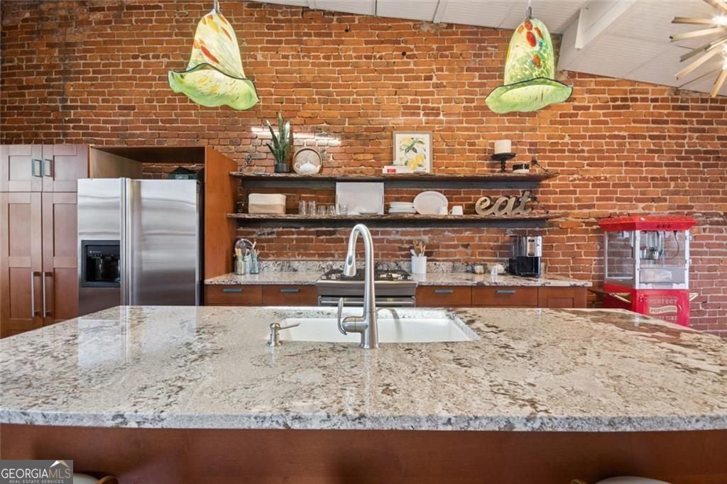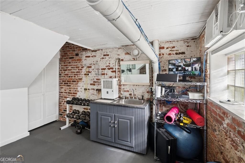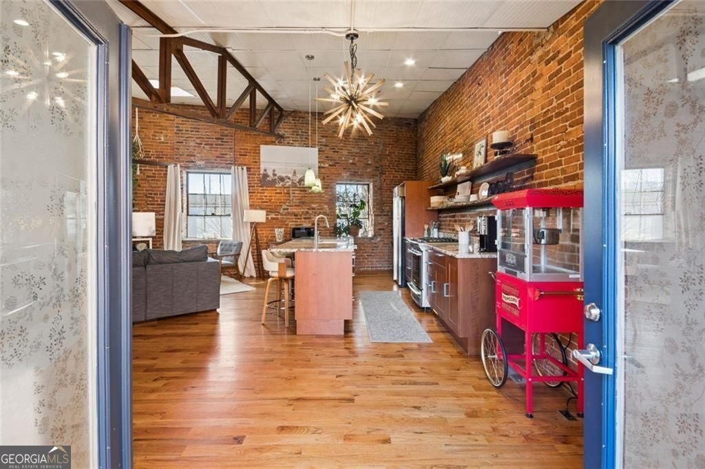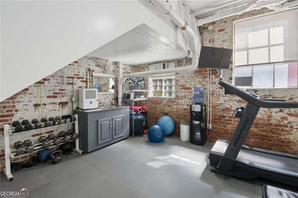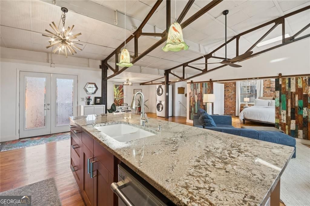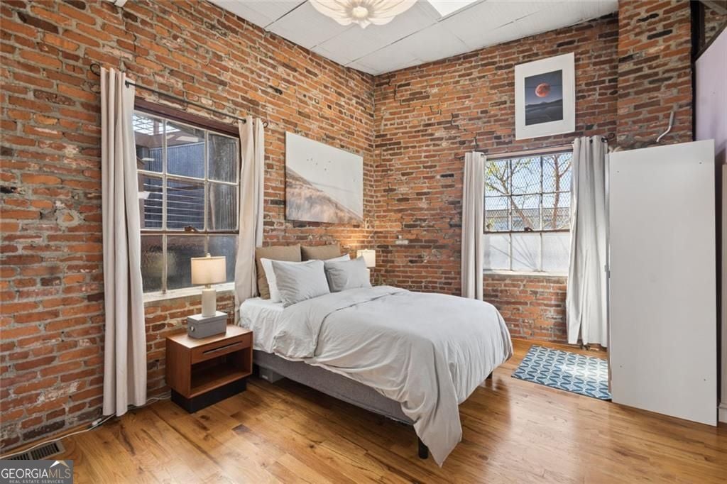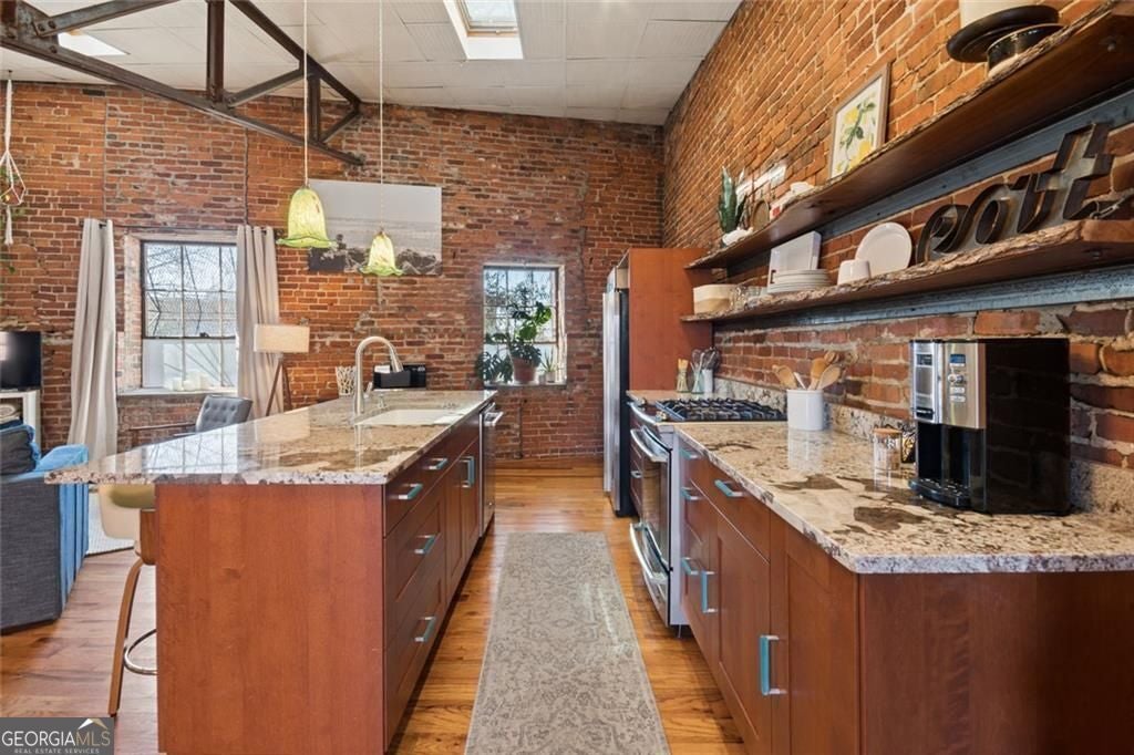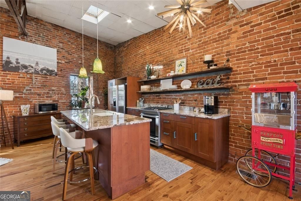 This beautiful free-standing loft sits just minutes from Georgia Tech and offers a rare mix of industrial character and warm design. Tucked behind hand-forged iron gates, the home welcomes you with a short private drive leading to its front deck and entrance, giving it a sense of privacy that's hard to find in the city. Inside, the updated kitchen features granite and quartz countertops, oak hardwood floors, and hand-tiled mosaic details. Barn doors crafted from Thai fishing boats open to a spacious bedroom filled with skylights, original windows, and historic steel trusses dating back to 1886. There's also a separate office area that could easily function as a second bedroom. Step out the back door and you'll find a private patio, plus access to a shaded rooftop deck with city views, a dog run, gym, storage unit, and additional storage beneath the porch. Guest parking is free, making it easy for friends to visit. If you enjoy spaces with history, character, and a little privacy in the middle of the city, this one might be worth a closer look.