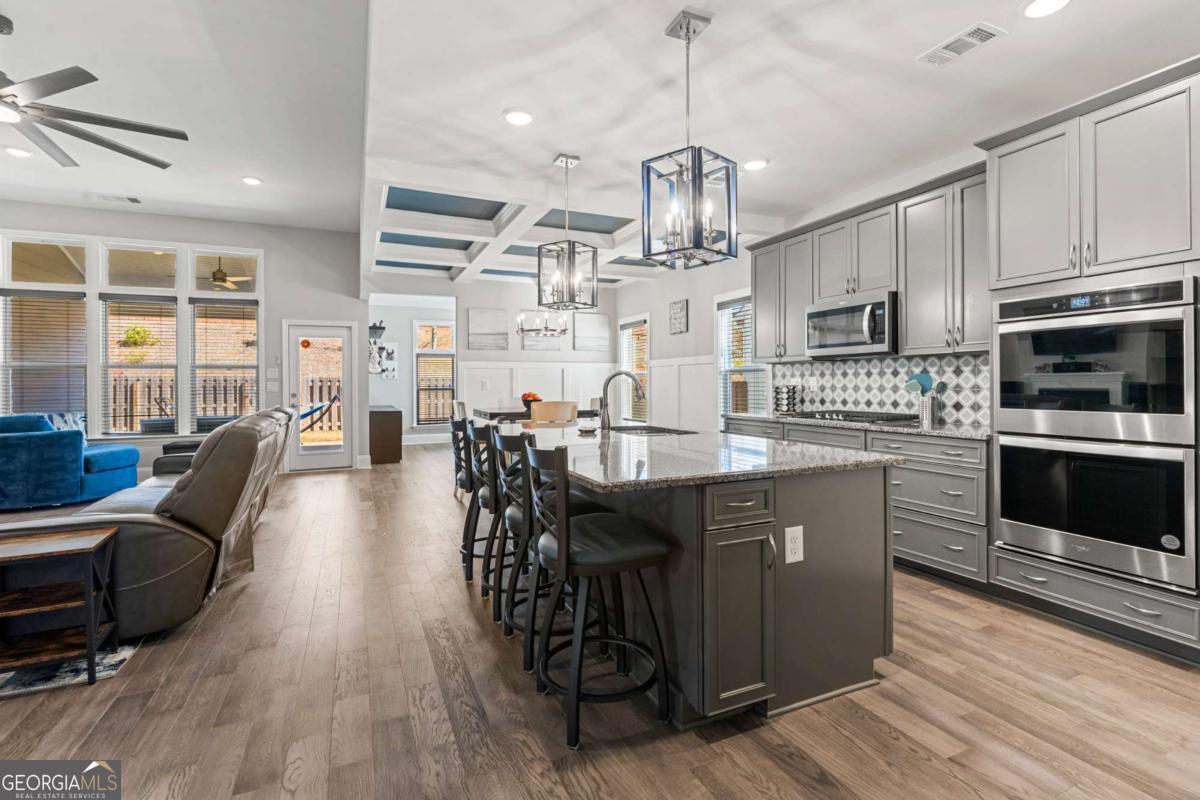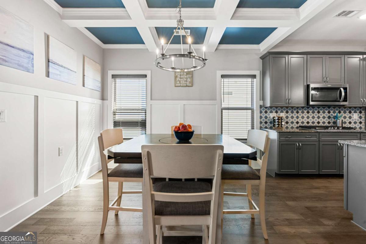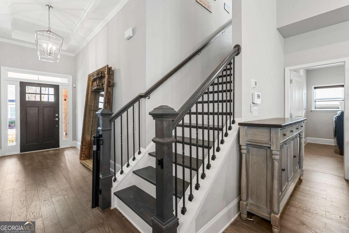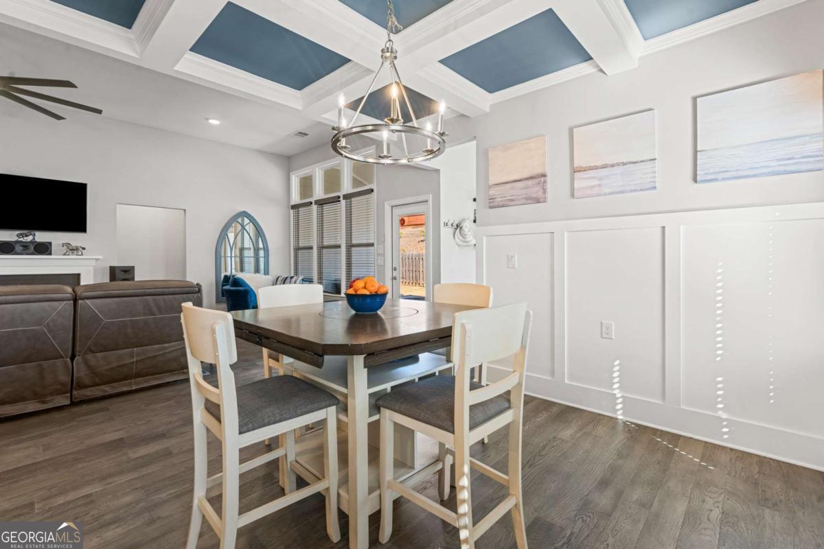 Like new with upgraded finishes throughout, this home is located within a gated community known for its active, social atmosphere-offering access to a private lake, pool, and amenities that make it easy to enjoy where you live. Inside, the main level features luxury vinyl flooring throughout most of the space and an open-concept layout that feels both comfortable and functional. The dining area is accented with a coffered ceiling, while the spacious great room anchors the home. A separate office or sunroom provides flexibility for working from home or a quiet place to unwind. The master suite is generously sized and well-appointed with double vanities, a tiled shower, and a large walk-in closet. A secondary bedroom on the main level adds convenience for guests or additional living needs. Upstairs, you'll find a private suite along with a loft area-ideal for guests or multi-purpose space. The covered back porch overlooks a private, fenced yard, all maintained by the HOA, offering easy, low-maintenance living without sacrificing outdoor space. Homes like this don't last long, come and find your new home here!