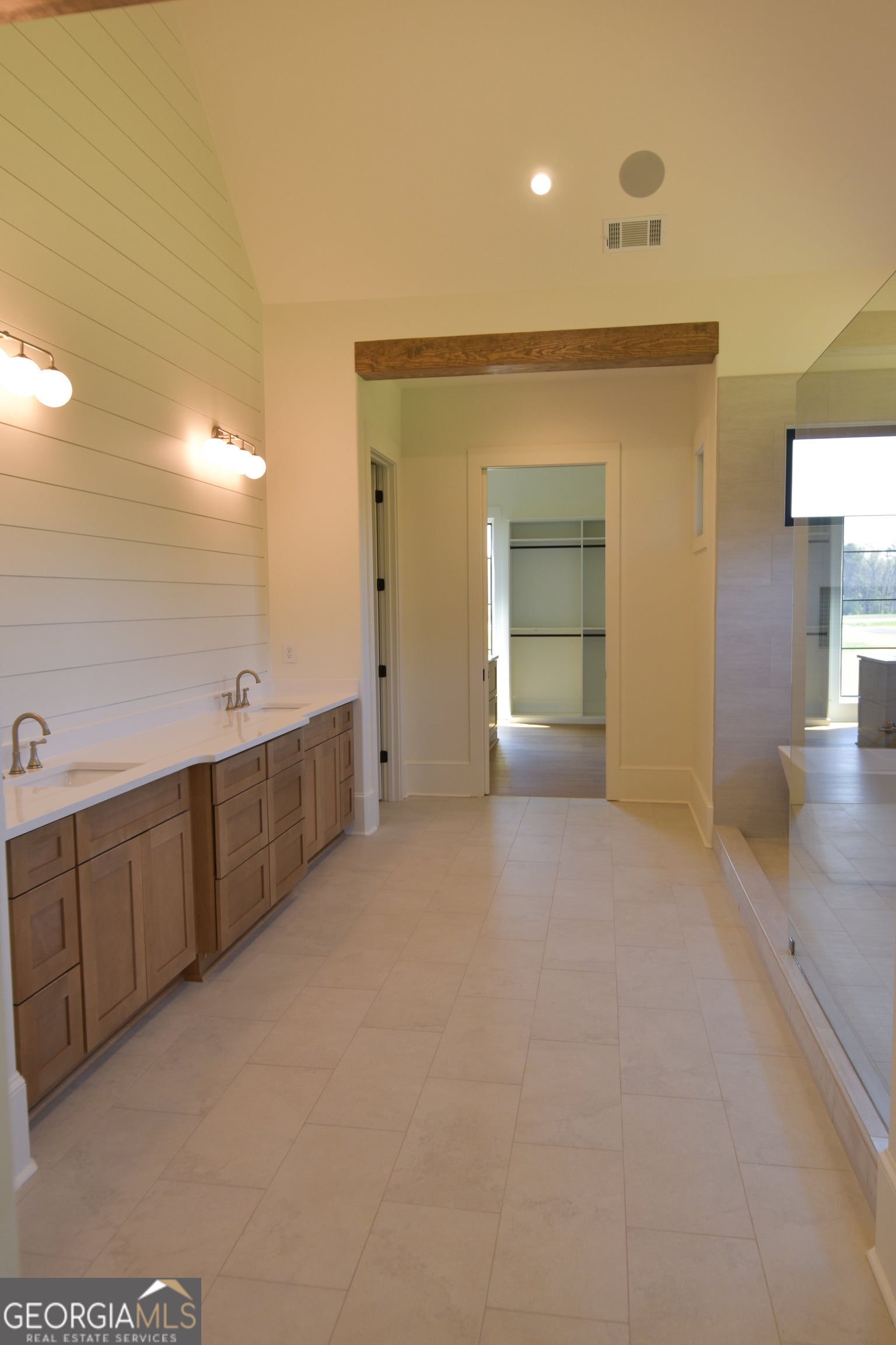 - Interior FeaturesBeamed Ceilings, Double Vanity, Walk-In Closet(s), Vaulted Ceiling(s), Soaking Tub, Tile Bath
