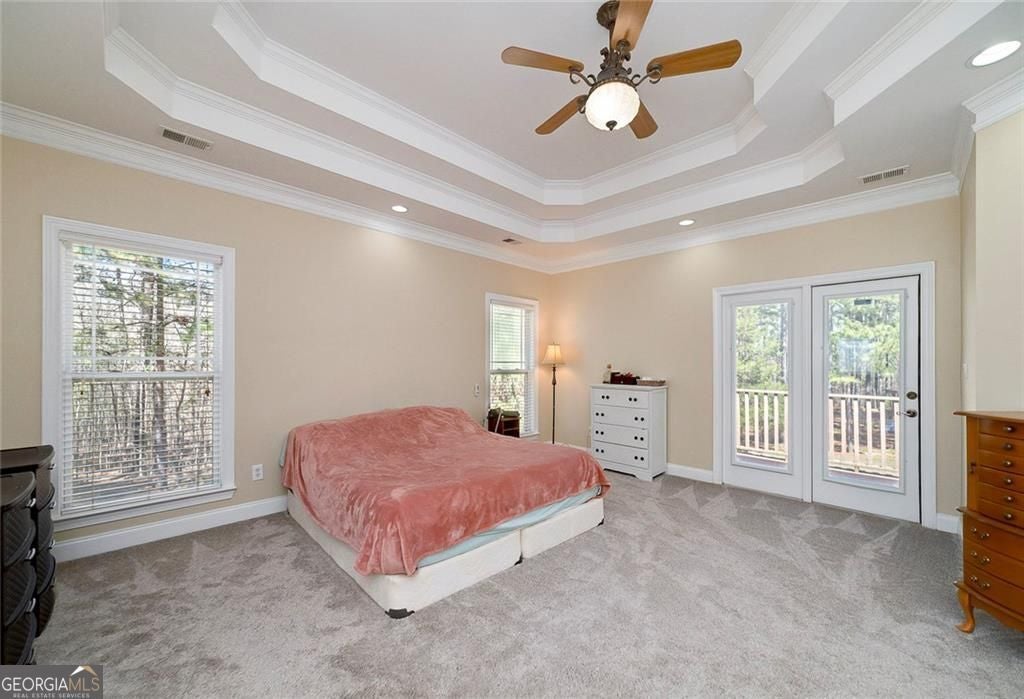 - Interior FeaturesBookcases, Double Vanity, Walk-In Closet(s), Split Bedroom Plan, Tray Ceiling(s), Tile Bath