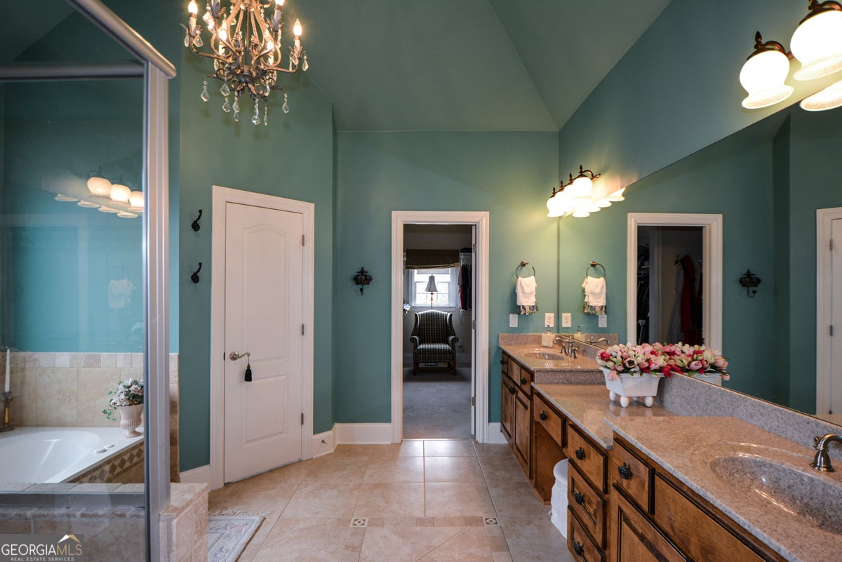 - Interior FeaturesDouble Vanity, High Ceilings, Pulldown Attic Stairs, Split Bedroom Plan, Tile Bath, Tray Ceiling(s), Walk-In Closet(s), Whirlpool Bath, Bookcases, Two Story Foyer