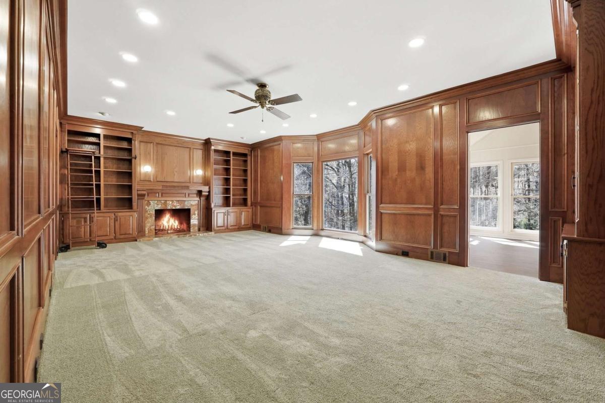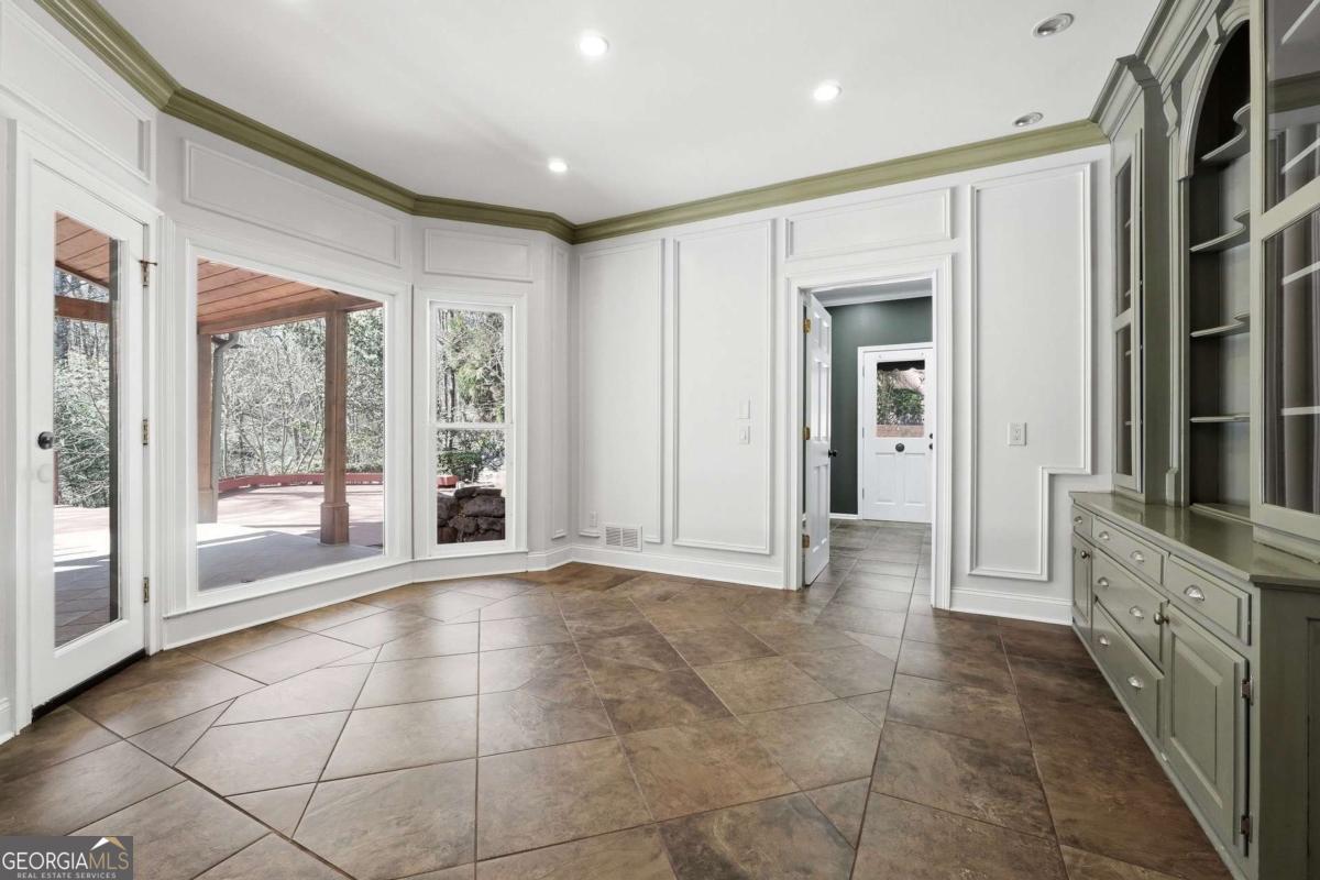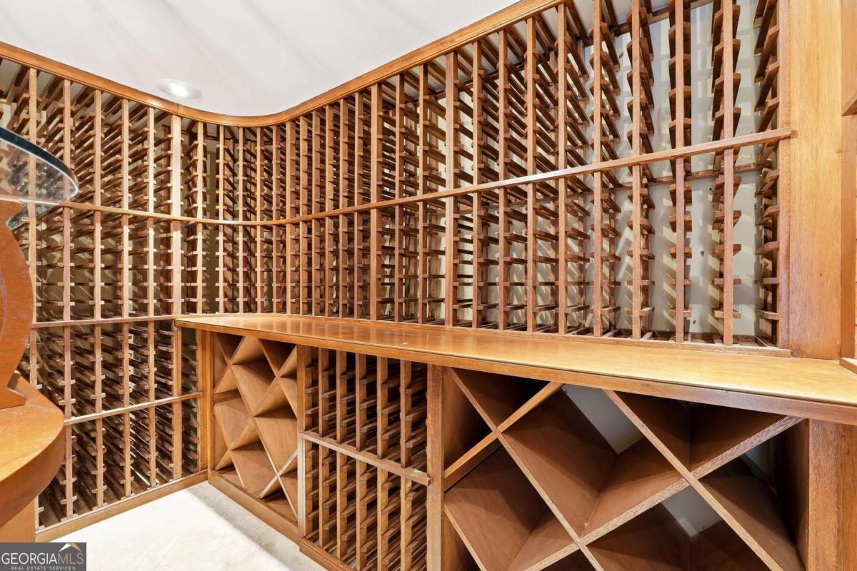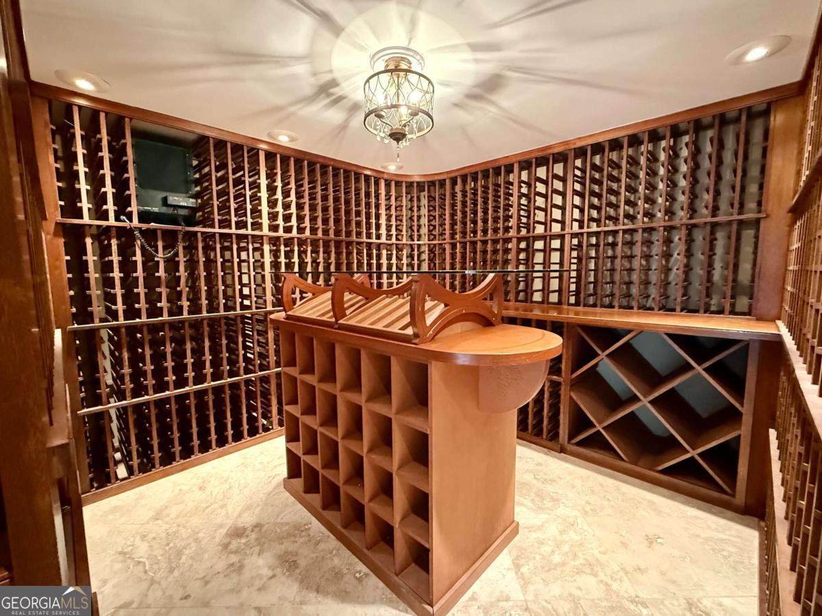 Tucked within the sought-after River Bluff community, this timeless four-sided brick estate offers a rare blend of refined craftsmanship, thoughtful updates, and exceptional lifestyle features in a beautifully private setting. From the moment you enter, the home presents with quiet sophistication. The foyer showcases rare marble floors and is flanked by light-filled formal spaces, creating an ideal flow for both everyday living and elevated entertaining. Expansive floor to ceiling windows draw the outdoors in, while freshly painted interiors, gorgeous hardwood floors, and designer light fixtures provide a clean, refreshed canvas throughout. The kitchen is both functional and beautifully appointed, featuring rare stone countertops, custom cabinetry, generous prep space, a warming drawer, and doors that allow it to live as open-concept or closed off, depending on preference and occasion. A large main-level laundry room, functioning as a mudroom with exterior access and a convenient sink, adds everyday practicality. Just beyond, the formal dining room with judge's paneling and floor-to-ceiling windows offers a joyful setting for gatherings and connects seamlessly to the kitchen. One of the home's most striking spaces is the richly appointed mahogany-clad club room, wrapped floor-to-ceiling in beautiful wood that immediately reads as luxury. A hidden wet bar is tucked within this space, ideal for entertaining or simply enjoying the home. The adjoining sunroom, finished with brand new LVP flooring, overlooks the backyard water features and lush landscape-a peaceful spot where deer are frequently seen. Upstairs, five bedrooms are thoughtfully arranged for comfort and privacy, all served by high-end plush carpet that reinforces the quiet, retreat-like feel of the second floor. The light, neutral palette underfoot offers an elegant backdrop and an easy starting point for future customization. The primary suite is a true retreat, with a spacious bedroom, custom California Closets including an additional closet for folded items, and a generous bath featuring dual vanities, an extra bank of cabinetry to ease getting ready, a Jacuzzi tub, walk-in tiled shower, and private water closet. Each of the four secondary bedrooms includes California Closet systems and brand new ceiling fans, and they each share one of two Jack-and-Jill bathrooms for the utmost in convenience and livability. The terrace level adds a significant extension of living space. Here you'll find an expansive room that can act as a bedroom with ensuite bath and closet, a separate living area, and a sink-and-cabinet zone that could easily be converted into a full kitchen. This level is ideal as an in-law or guest suite, kids' play space, or home theater, with an additional large unfinished storage area. A professionally designed wine cellar-one of only two in Atlanta by this designer-with capacity for approximately 5,000 bottles serves as a true collector's showpiece, combining function and visual impact rarely found in residential properties. Outdoor living is equally compelling. The expansive deck-recently rebuilt and refreshed-pairs with a huge covered porch and additional uncovered porch, together creating multiple zones for dining, lounging, and entertaining. Raised flower beds are built in and ready for spring planting. Three beautiful water features anchor the landscaped backyard, enhancing the tranquil ambiance and complementing the surrounding natural setting. The entire front and backyard have just been completely refreshed and landscaped, offering a polished, move-in-ready presentation from every angle. The property is also equipped with an invisible fence, offering flexibility for pet owners without interrupting the landscape. Recent improvements include a newer roof, updated heating system, brand new interior paint, new LVP in the sunroom, and new carpet on the basement level-delivering peace of mind and a truly turnkey experience.