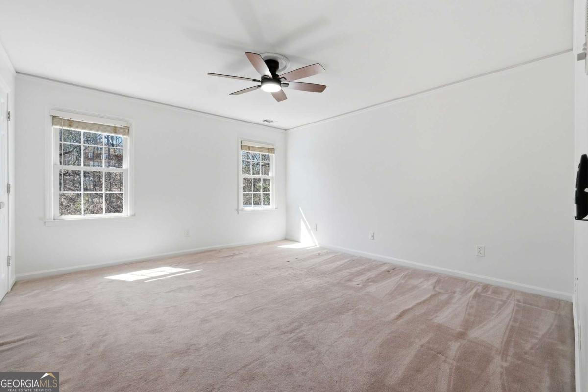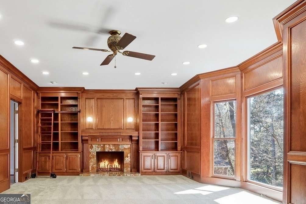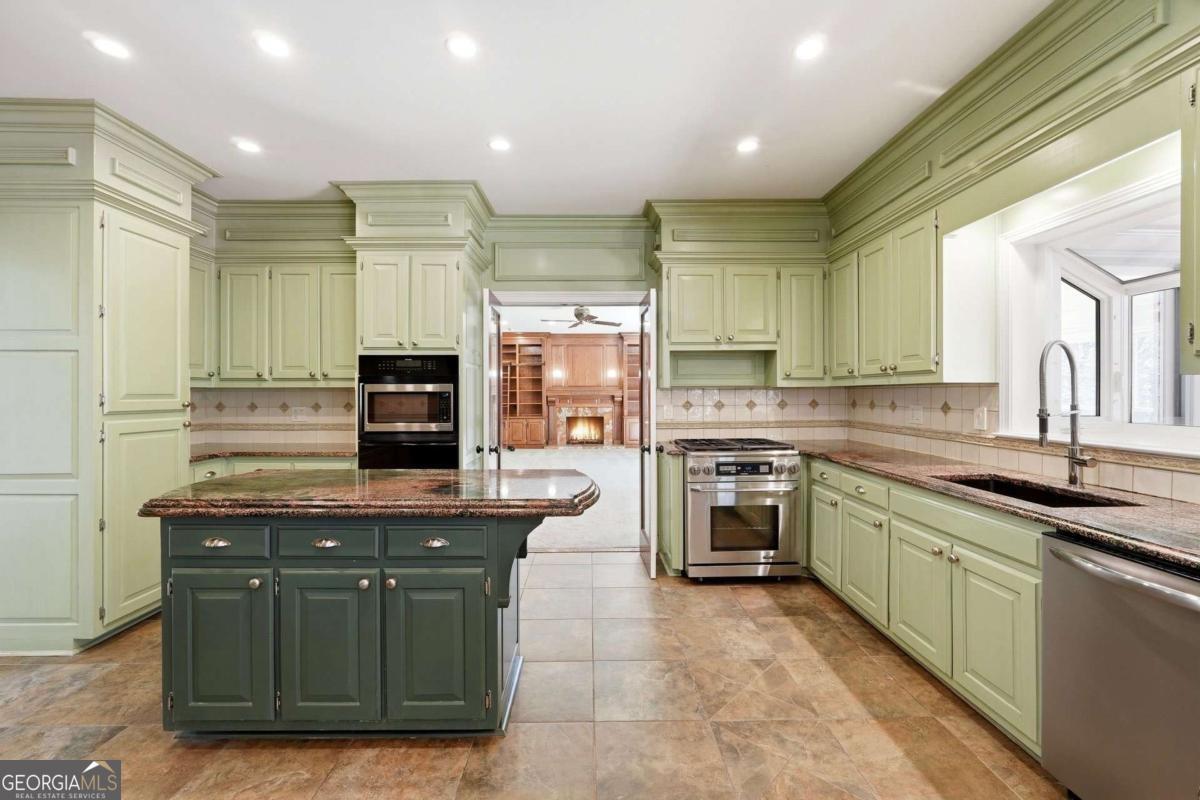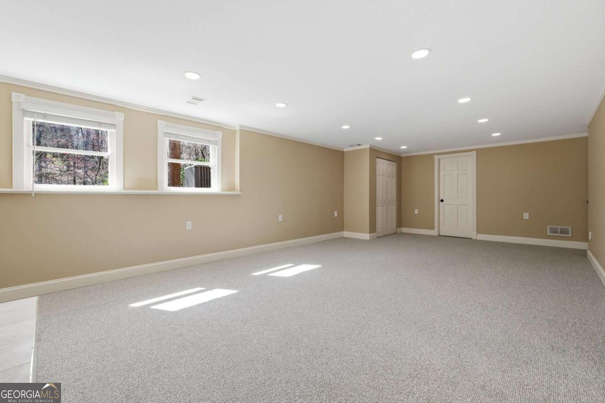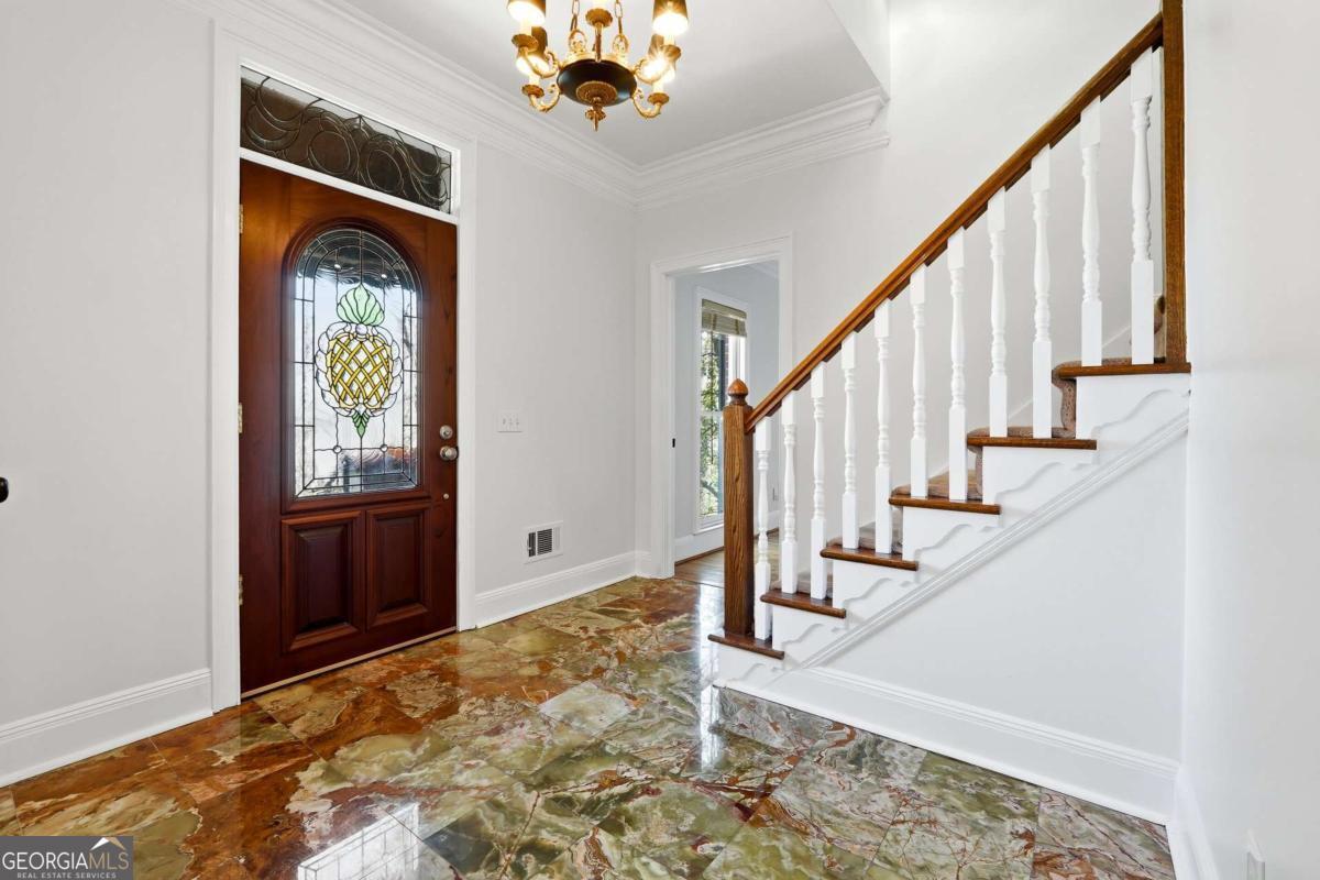 Tucked within the sought-after River Bluff community, this timeless four-sided brick estate offers a rare blend of refined craftsmanship, thoughtful updates, and exceptional lifestyle features in a beautifully private setting. From the moment you enter, the home presents with quiet sophistication. The foyer showcases rare marble floors and is flanked by light-filled formal spaces, creating an ideal flow for both everyday living and elevated entertaining. Expansive floor to ceiling windows draw the outdoors in, while freshly painted interiors, gorgeous hardwood floors, and designer light fixtures provide a clean, refreshed canvas throughout. The kitchen is both functional and beautifully appointed, featuring rare stone countertops, custom cabinetry, generous prep space, a warming drawer, and doors that allow it to live as open-concept or closed off, depending on preference and occasion. A large main-level laundry room, functioning as a mudroom with exterior access and a convenient sink, adds everyday practicality. Just beyond, the formal dining room with judge's paneling and floor-to-ceiling windows offers a joyful setting for gatherings and connects seamlessly to the kitchen. One of the home's most striking spaces is the richly appointed mahogany-clad club room, wrapped floor-to-ceiling in beautiful wood that immediately reads as luxury. A hidden wet bar is tucked within this space, ideal for entertaining or simply enjoying the home. The adjoining sunroom, finished with brand new LVP flooring, overlooks the backyard water features and lush landscape-a peaceful spot where deer are frequently seen. Upstairs, five bedrooms are thoughtfully arranged for comfort and privacy, all served by high-end plush carpet that reinforces the quiet, retreat-like feel of the second floor. The light, neutral palette underfoot offers an elegant backdrop and an easy starting point for future customization. The primary suite is a true retreat, with a spacious bedroom, custom California Closets including an additional closet for folded items, and a generous bath featuring dual vanities, an extra bank of cabinetry to ease getting ready, a Jacuzzi tub, walk-in tiled shower, and private water closet. Each of the four secondary bedrooms includes California Closet systems and brand new ceiling fans, and they each share one of two Jack-and-Jill bathrooms for the utmost in convenience and livability. The terrace level adds a significant extension of living space. Here you'll find an expansive room that can act as a bedroom with ensuite bath and closet, a separate living area, and a sink-and-cabinet zone that could easily be converted into a full kitchen. This level is ideal as an in-law or guest suite, kids' play space, or home theater, with an additional large unfinished storage area. A professionally designed wine cellar-one of only two in Atlanta by this designer-with capacity for approximately 5,000 bottles serves as a true collector's showpiece, combining function and visual impact rarely found in residential properties. Outdoor living is equally compelling. The expansive deck-recently rebuilt and refreshed-pairs with a huge covered porch and additional uncovered porch, together creating multiple zones for dining, lounging, and entertaining. Raised flower beds are built in and ready for spring planting. Three beautiful water features anchor the landscaped backyard, enhancing the tranquil ambiance and complementing the surrounding natural setting. The entire front and backyard have just been completely refreshed and landscaped, offering a polished, move-in-ready presentation from every angle. The property is also equipped with an invisible fence, offering flexibility for pet owners without interrupting the landscape. Recent improvements include a newer roof, updated heating system, brand new interior paint, new LVP in the sunroom, and new carpet on the basement level-delivering peace of mind and a truly turnkey experience.