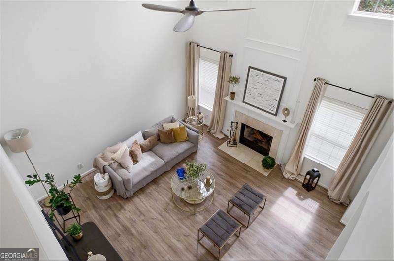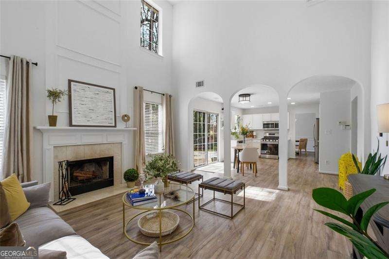 Welcome to this beautifully maintained single-family home tucked away on a quiet cul-de-sac in highly sought-after East Cobb. Meticulously cared for, this home offers both comfort and style with thoughtful updates throughout. Recent improvements include a brand-new roof, fresh interior paint, new ceiling fans and light fixtures, and brand-new carpet in all bedrooms-making this home truly move-in ready. As you step inside, you'll immediately notice the abundance of natural light and the bright, airy feel. The living room features soaring 20-foot ceilings and a cozy fireplace, creating the perfect space to relax or entertain. Elegant archways add warmth and character as they seamlessly connect the living area to the kitchen. The formal dining room is ideal for hosting sit-down meals, while the versatile flex room can easily serve as a home office, sitting area, or additional living space. The main-level half bathroom has been fully remodeled with a new vanity, lighting, and toilet. Upstairs, you'll find even more natural light along with a spacious primary suite featuring a beautifully appointed bathroom and a generous walk-in closet. Two additional guest bedrooms offer comfortable space for family or visitors, and the large laundry room provides convenience for everyday living. Additional highlights include a newer water heater and two HVAC systems that have been recently serviced for peace of mind. Step outside to enjoy the backyard-perfect for relaxing, grilling, or unwinding with your favorite drink. All of this in a location that's hard to beat-just minutes from restaurants, shopping, and entertainment.