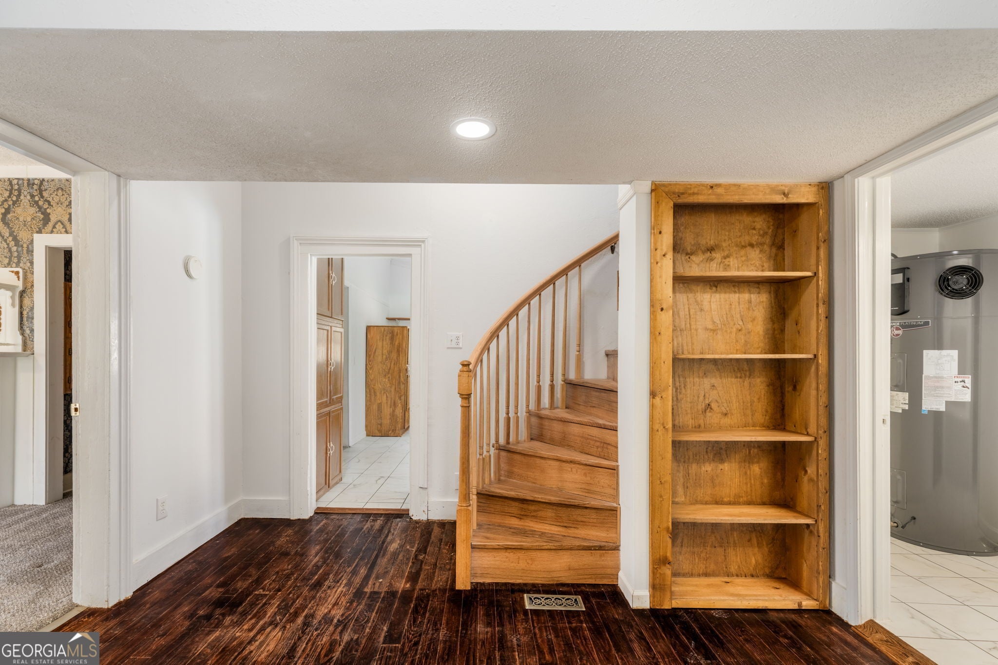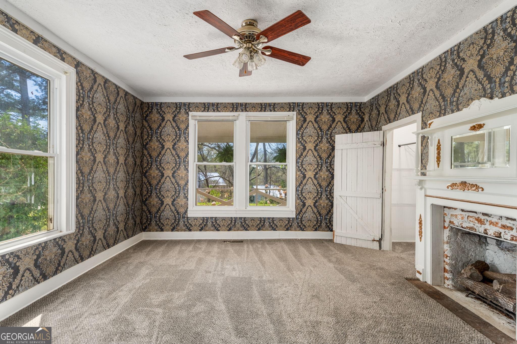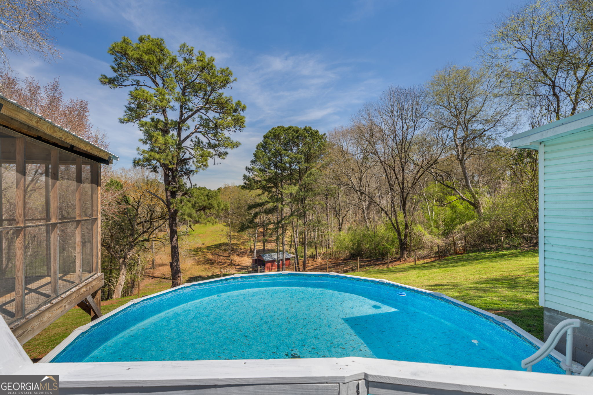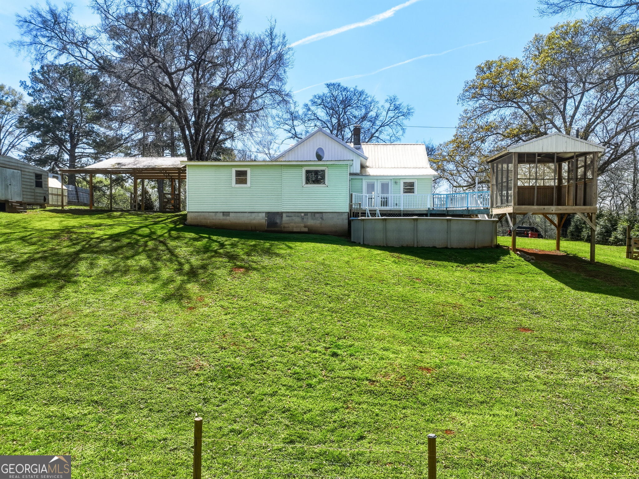This one feels truly special! There's a sense of calm here-the kind you notice the moment you arrive. Perched on a peaceful hill in a quaint community just off the Ocmulgee River and across from Juliette Dam, this charming country cottage sits on nearly 4 acres of rolling pasture and scenic views. Start your mornings on the front porch with views of the river and dam, and the soothing sound of flowing water. And wind down out back in the screened gazebo overlooking the pasture, barn, and saltwater pool just steps away. The property is thoughtfully set up for country living. A two-car carport with double gates allows drive-through access to the rear acreage. You'll also find a greenhouse, chicken coop, and a 12x24 metal storage building making it easy to grow, raise, and store-all in one place. The fenced pasture is ideal for sheep, goats, or horses and includes a classic red barn and charming wooden bridge. Inside, the home blends rustic character and craftsmanship with unique details throughout-Venetian wallpaper, two antique fireplace mantels, and a one-of-a-kind spiral staircase handcrafted from an old oak tree harvested right from the property. There's even a hidden surprise-a custom oak shelf that reveals a secret passage. The kitchen features concrete countertops, a farmhouse sink, and a stylish arabesque tile backsplash. Both bathrooms are spacious and updated with tile showers and vintage-style vanities. The primary suite is generously sized with a walk-in closet, while the secondary bedroom offers built-in cabinetry and ample closet space. Upstairs provides additional storage space or the perfect kids' play area. Major system upgrades offer peace of mind, including low-maintenance vinyl siding, a metal roof, new plumbing lines, insulated double-pane windows, and an energy-efficient heat pump water heater that even helps cool the home during warmer months. Located just across the river from Juliette Park where you can join Ocmulgee Outdoor Expeditions on a river trip-and only a two-minute drive to the iconic Whistle Stop Cafe and local antique shops, this property offers a lifestyle that's hard to find and even harder to leave.