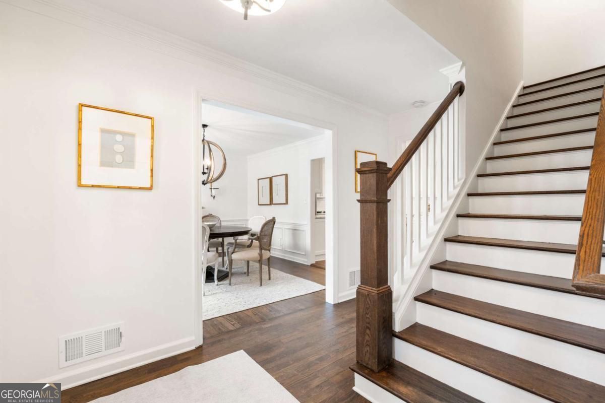 Nestled in the coveted Mount Vernon Woods neighborhood, this beautifully appointed home offers timeless style and thoughtful updates throughout. Rich hardwood floors span the entire home, creating a warm and inviting atmosphere. The chef's kitchen opens seamlessly to a cozy family room anchored by a wood-burning fireplace and flows to a covered, screened-in porch overlooking a private, flat backyard ideal for outdoor entertaining and relaxed evenings. The main level also features elegant formal living and dining rooms, providing the perfect setting for gatherings and special occasions. Upstairs, the oversized primary suite serves as a true retreat, highlighted by a stunningly renovated spa-like bath with dual closets, a beautiful freestanding soaking tub, and a spacious walk-in shower. Two generously sized secondary bedrooms and a full bath complete the upper level. Ideally located with convenient access to major highways and just minutes from shopping, dining, and the vibrant Sandy Springs City Center.
