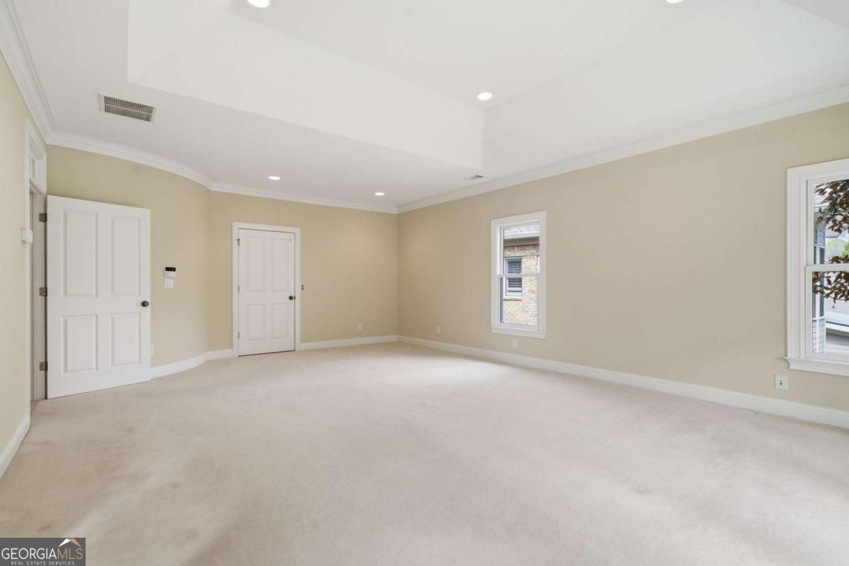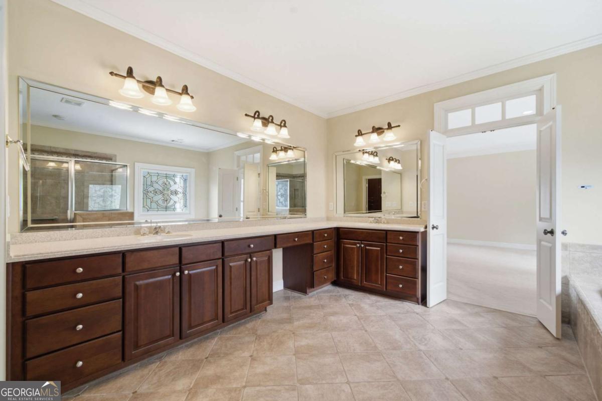 OPEN SAT 3/21 and SUN 3/22 2-5 p.m. 610 Society Street presents a rare combination of location, luxury, and convenience in The Palisades at Milton Park. Ideally situated just minutes from downtown Alpharetta, Avalon, and GA-400-and within walking distance to upscale shopping and dining-this residence offers both accessibility and lifestyle. Tucked quietly at the back of the community beyond a picturesque pond and charming stone bridge, the home provides exceptional privacy while remaining just a short stroll to swim, tennis, and pickleball amenities. Residents enjoy a vibrant neighborhood atmosphere with an active social calendar, including clubs and events throughout the year. The home welcomes you with a large, inviting fieldstone front porch, setting the tone for its timeless architecture and warm, elegant presence. This exceptional residence features elevator access to all three levels and a fenced backyard-one of the largest in the community-opening directly to the Big Creek Greenway, offering serene views and unmatched privacy. Expanded by the owner, the residence boasts an enlarged footprint and is arguably one of the largest homes in the neighborhood, complete with an oversized garage designed to accommodate large SUVs, a utility sink, and a full wall of storage cabinetry. Additional enhancements include lightning rods for storm protection. The four-sided brick exterior and stone chimney provide timeless appeal and low maintenance, complemented by an HOA that covers comprehensive lawn care, including mowing, trimming, fertilization, pine straw, and irrigation system inspections. Inside, a graceful curved staircase sets an elegant tone, flanked by a formal dining room and butler's pantry. The chef's kitchen is thoughtfully designed with double ovens, a traditional sink, a prep "veggie" sink-both with disposals-abundant cabinetry, an oversized island, built-in desk, and custom pull-out pantry storage. The kitchen opens seamlessly to the great room, featuring built-ins and an impressive oversized stone fireplace with gas logs and gas starter. A richly appointed study with judge's paneling and a powder room complete the main level. Upstairs, you'll find three en-suite bedrooms, including a spacious primary suite with tray ceiling, private screened porch, elevator access, and a spa-inspired bath featuring a Bain Ultra self-cleaning tub, large shower, double vanities, and a custom closet. A generously sized laundry room offers cabinetry and a utility sink for added convenience. The finished terrace level expands the living space with a full bath, bedroom or second office, another great room, and a second fireplace. Outdoor living continues on the inviting fieldstone patio, with the added benefit of a separate exterior storage closet-perfect for gardening tools, outdoor equipment, and recreational gear. Additional features include a whole-home water purification system and a convenient holiday lighting switch system. Meticulously maintained and thoughtfully designed, this home delivers elevated living with direct access to one of Alpharetta's most sought-after outdoor amenities-the Big Creek Greenway.