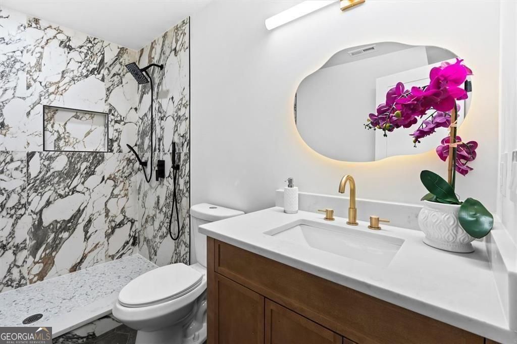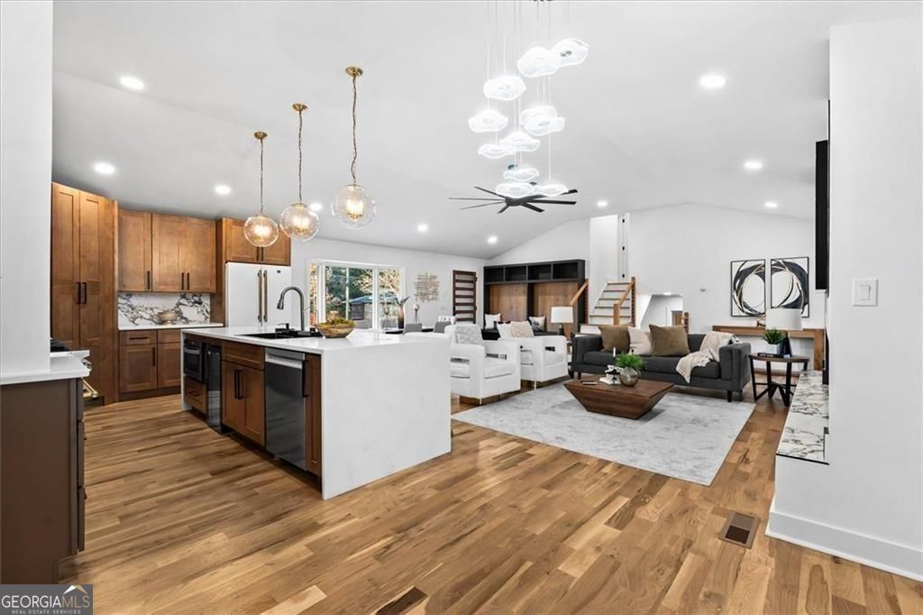 Welcome to this beautifully remodeled split-level home offering 3 bedrooms and 3 full bathrooms, perfectly blending modern upgrades with thoughtful design. Major improvements include a brand-new HVAC system, plumbing, electrical, and roof!! Step inside to discover spacious rooms, abundant closet space, and stunning white oak hardwood floors throughout. The inviting entryway features custom-built storage, setting the tone for the stylish custom details found throughout the home. The kitchen is designed to impress with quartz countertops, a 36-inch freestanding gas range, a wine cooler, and a generous walk-in pantry. The bathrooms showcase delicate, calming finishes, while the oversized walk-in closets provide excellent storage. The lower level offers a versatile space perfect for a home office, gym, or media area. The large backyard features a deck, pergola, and cozy fire pit surrounded by string lights. Situated on a desirable corner lot with a pasture-style front yard, this home also offers convenient access to the East-West Connector, shopping, dining, and everyday essentials. This move-in-ready home combines comfort, style, and location - don't miss this opportunity!