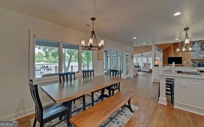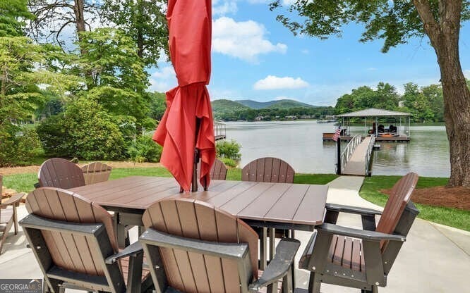 Magnificent Sunsets from the Large Lakefront Home on Lake Chatuge!**This stunning lakefront home is located in one of Hiawassee's most established and desirable residential lake communities. Completely and thoughtfully renovated in 2024, this property blends modern luxury with timeless charm.**Situated on a nearly flat lot, the home enjoys breathtaking lake and mountain views to the west-perfectly positioned for spectacular sunset vistas.**Step inside to an open-concept main level featuring soaring ceilings and expansive windows that showcase the incredible views. The original fireplace anchors the spacious living area, which seamlessly flows into the gourmet kitchen and dining area-ideal for entertaining.**The Main Level owner's suite is a true retreat, offering serene lake views and a luxurious en-suite bath. Upstairs, a split-bedroom layout features two generously sized bedrooms-both with lake views-connected by a shared bath.**The finished Terrace Level provides additional living space and guest accommodations, perfect for family and friends.**Outdoors, enjoy a new covered double-slip dock with two boat lifts and a 100-foot access walkway, making lake days effortless and fun. A two-car garage and expansive concrete parking area ensure plenty of space for guests.**This one-of-a-kind lakefront home is packed with special features and ready to become your personal paradise on Lake Chatuge!!