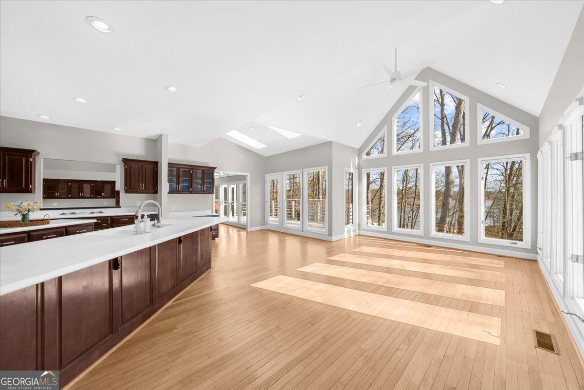 **Prime Lake Lanier location, private dock, and a price that makes lake living attainable** Set along the shores of Lake Lanier in the established lakeside community of Sidney on Lanier, this well-maintained waterfront home offers an exceptional opportunity for buyers seeking both lifestyle and location. Inside, the home is designed for comfortable everyday living and easy entertaining. The main level features a spacious primary suite with a large bath and private screened porch, soaring windows in the Fireside Great room, and a generous kitchen with prep island that opens to a light-filled keeping/dining room that naturally becomes the gathering place for family and friends. Upstairs are three additional bedrooms, a classic Jack-and-Jill bath, and a dedicated office ideal for working remotely or quiet study. The terrace level adds even more flexible space with a welcoming Family/Rec Room featuring a fireplace and bar area, a screened porch, Guest bedroom and Full bath, plus a drive-around third garage with Workshop space-perfect for storing lake gear, golf carts, or hobbies. Outdoor living is just as inviting with expansive main level deck and screened porches overlooking the waterfront setting and seasonal views. A very gentle walk leads to the private dock with boat slip and party deck, also easily accessible by golf cart, making spontaneous afternoons on the water effortless. The setting is hard to beat-just minutes from the charm, restaurants, and shopping of Downtown Gainesville, medical offices and hospitals, and only a five-minute boat ride to Gainesville Marina. Tucked in a protected cove that opens to deep water, the property offers both calm waters for relaxing and quick access to the main channel for boating. Commuters will also appreciate convenient access to Georgia State Route 400 and Atlanta while still enjoying the slower rhythm of life on the water. The home has been carefully maintained and offers a transferable moisture-free stucco warranty and termite bond, newer roof with warranty, new hot water heater, regularly serviced HVAC and septic systems, fresh interior and exterior paint, new carpet, updated landscaping, and path that can accommodate a cart - leading to the water's edge. With its sought-after location, private dock, and easy access to Gainesville's amenities by land or water, this property presents a rare chance to enjoy the Lake Lanier lifestyle at an exceptional value.