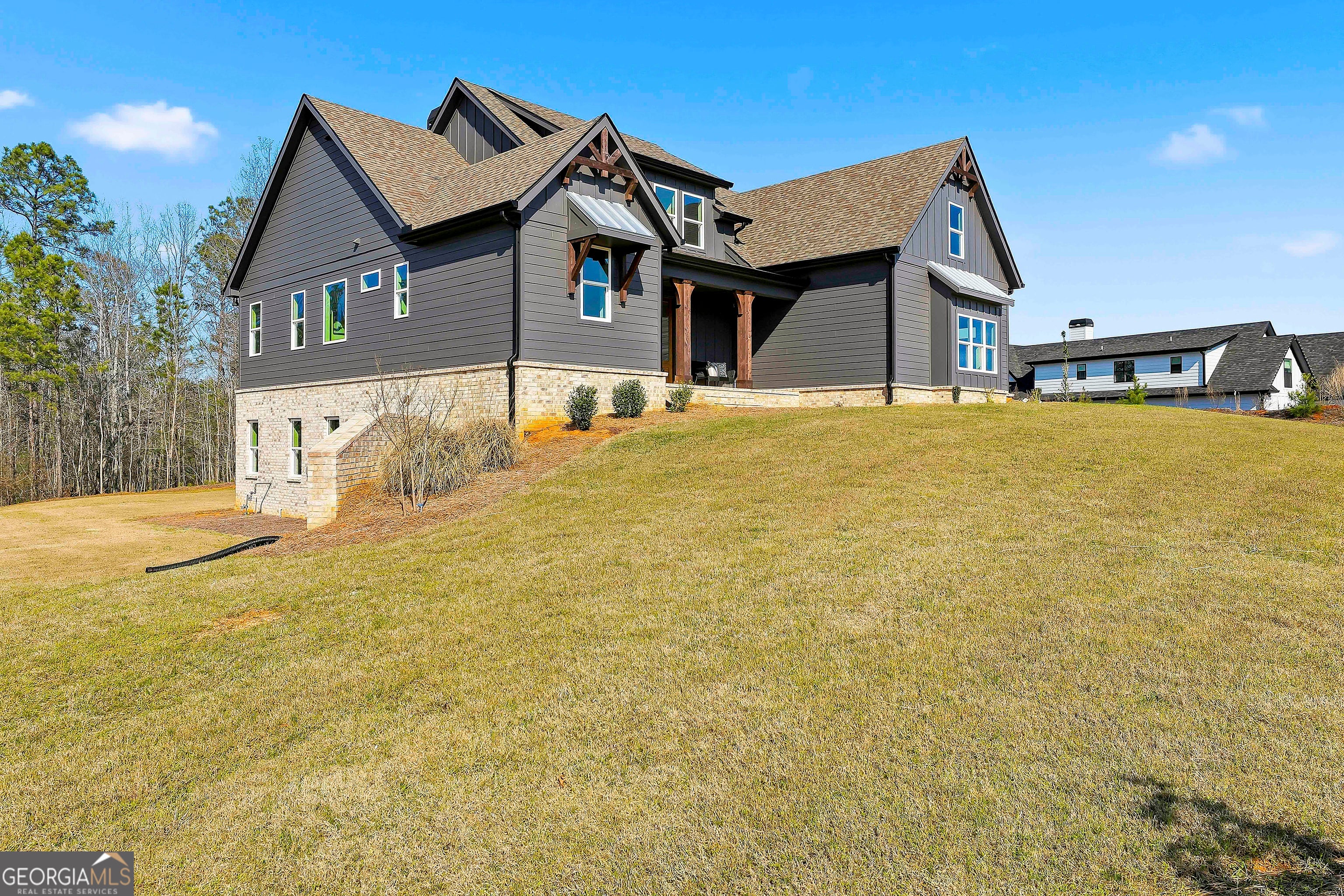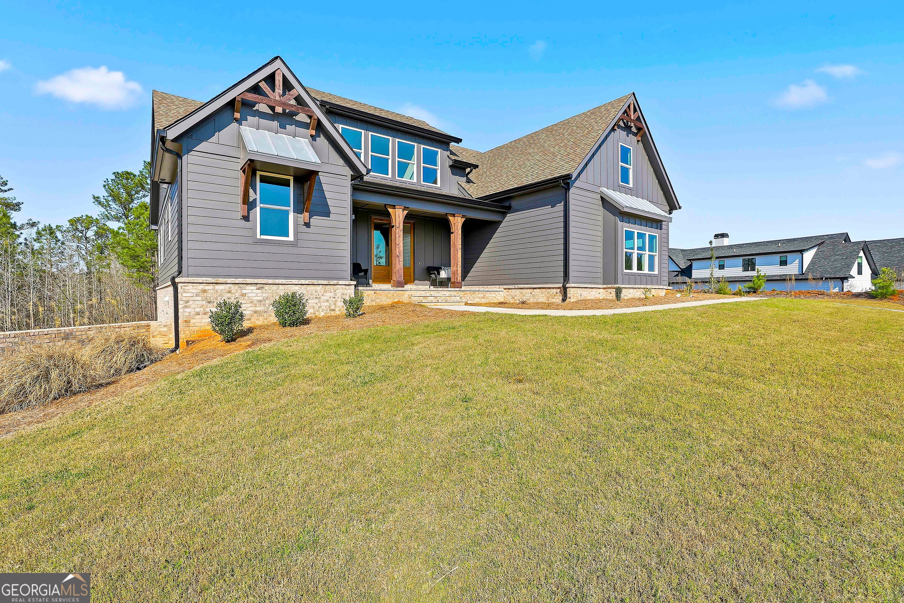 Exceptional New Construction in desirable Arbor Springs, offering 5 bedrooms, 4 bathrooms, a primary suite on the main level, and an unfinished basement with over 2,000 square feet of future potential. A covered front porch welcomes you into the foyer, opening to the heart of the home where the living room showcases beautiful wood beams, built-in cabinetry, and a stunning brick fireplace. The impressive kitchen is designed for both everyday living and entertaining, featuring a large island with bar seating, an eat-in dining area, and a spacious walk-in pantry. Custom sliding glass doors lead to the covered back patio complete with its own fireplace, perfect for relaxing or hosting gatherings while overlooking the flat backyard. The main-level primary suite offers a luxurious en suite bathroom featuring a freestanding soaking tub, glass walk-in shower, dual vanities, and a walk-in closet with custom shelving. A guest bedroom and full bathroom are also conveniently located on the main floor. Upstairs, you'll find a private bedroom with its own en suite bathroom, along with two additional bedrooms that share a full bathroom featuring dual sinks. The unfinished basement offers more than 2,000 square feet ready to be finished to suit your needs, along with access to an additional patio overlooking the flat backyard. Enjoy community amenities including a pool, tennis courts, clubhouse, parks, playgrounds, and more. Southeast Mortgage is our preferred lender. If buyer chooses to work with them, Southeast Mortgage will provide 1% credit up to $5,000. Reach out to the listing agent for more information.
