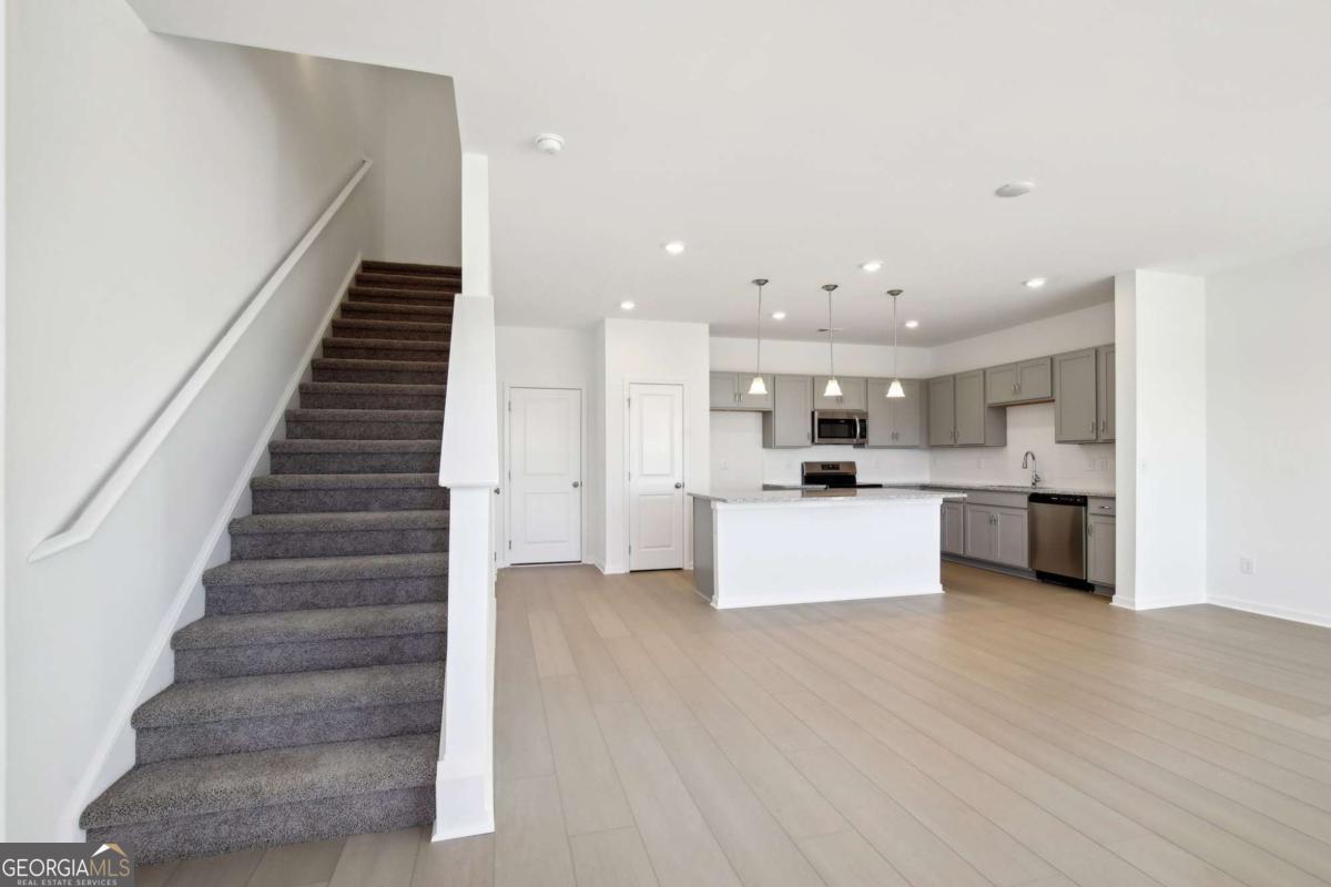Move in Ready August 2026! The Carson plan by Smith Douglas Homes in Crescent Towns! This thoughtfully designed rear-entry 3BR/2.5BA townhome offers comfort, convenience, and functionality throughout. A two-car rear garage leads into a stylish kitchen featuring upgraded cabinetry, granite countertops, and a large center island. The cozy dining area flows seamlessly into the kitchen and family room, where a linear fireplace creates a warm focal point and an exit leads to the expansive front porch-perfect for relaxing or entertaining. Upstairs, the owner's suite provides a private retreat with double vanities, a large separate shower, private water closet, and a spacious walk-in closet. Two additional bedrooms, a full hall bath, and a conveniently located second-floor laundry room make everyday living easy. Nine-foot ceilings on both levels enhance the open, airy feel throughout the home. Residents will also enjoy planned community amenities including a pool with cabana, while HOA-provided lawn maintenance adds to the low-maintenance lifestyle this elegant townhome offers. Photos representative of plan not of actual home. Agent is not onsite at present time. Please contact Valerie Parks for further information and to set up an appointment.
