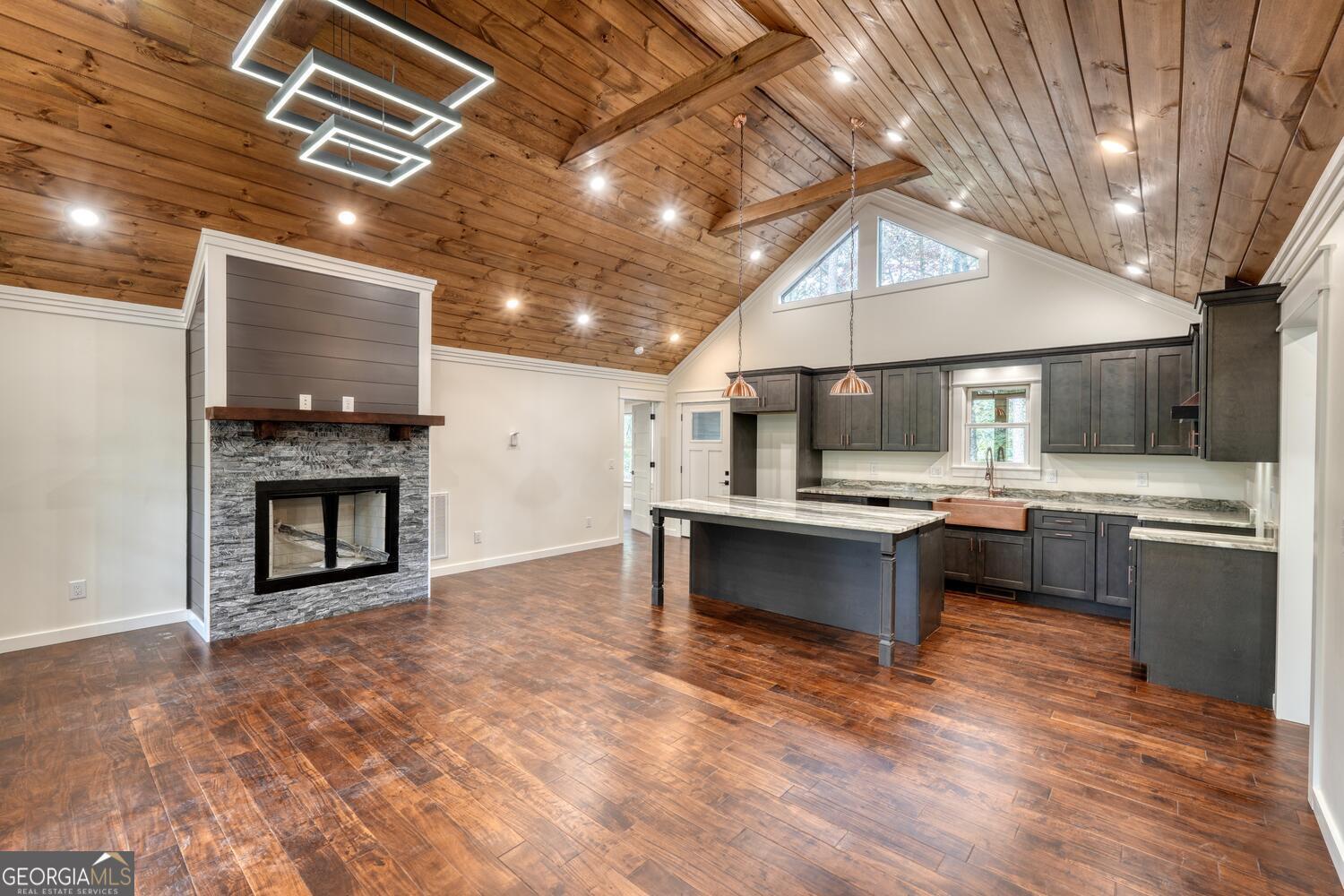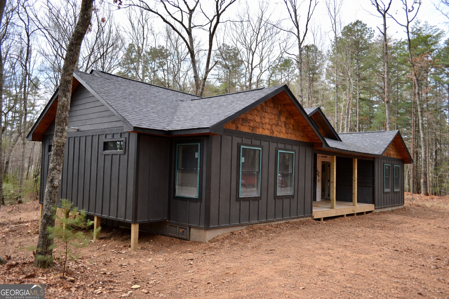 Brand new mountain home with rare privacy + unbeatable location! This stunning 3BR / 2BA home is perfectly situated in a gated community and backs directly to United States Forest Service land-meaning no rear neighbors, just endless nature and long-range tranquility. This thoughtfully designed 3 bedroom, 2 bathroom home features a rare and highly functional layout with direct bathroom access from every bedroom, providing convenience and privacy for both homeowners and guests. Step inside to an inviting open-concept living space highlighted by warm wood accents and quality craftsmanship throughout. The spacious kitchen and living area flow seamlessly, perfect for entertaining or relaxing after a day in the mountains. Out back, you'll find a large covered porch-an ideal spot for morning coffee or evening gatherings-overlooking a peaceful wooded setting. This home is located between Blairsville and Blue Ridge allowing you to enjoy the best of what both towns have to offer.