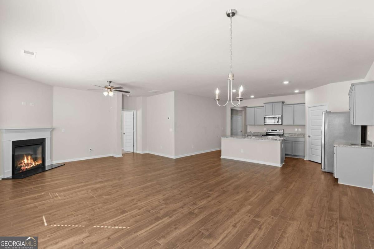 Stunning like new ranch home in Elmstone Commons at Locust Grove Station! This Henry County community offers open concept designs built for the way you live. Beautiful brick foundation with Cedar siding. Foyer with transom window above door. Gourmet kitchen featuring granite countertops, custom cabinets, stainless steel appliances, luxury vinyl tile, extra storage and expansive owner's retreats. The CALI ranch design offers a spacious family room that expands to a casual dining area. There is plenty of room for everyone to gather around the open island kitchen. The owner's retreat features dual vanities, separate shower and luxurious garden tub. Secondary bedrooms are fully carpeted and offer over-sized closets for extra storage. Upgraded lighting, craftsman doors, hardwood floors throughout. Huge separate laundry room. Large two car garage. New shopping plaza with Publix and dining in walking distance of this home. Close to the Tanger Outlets.
