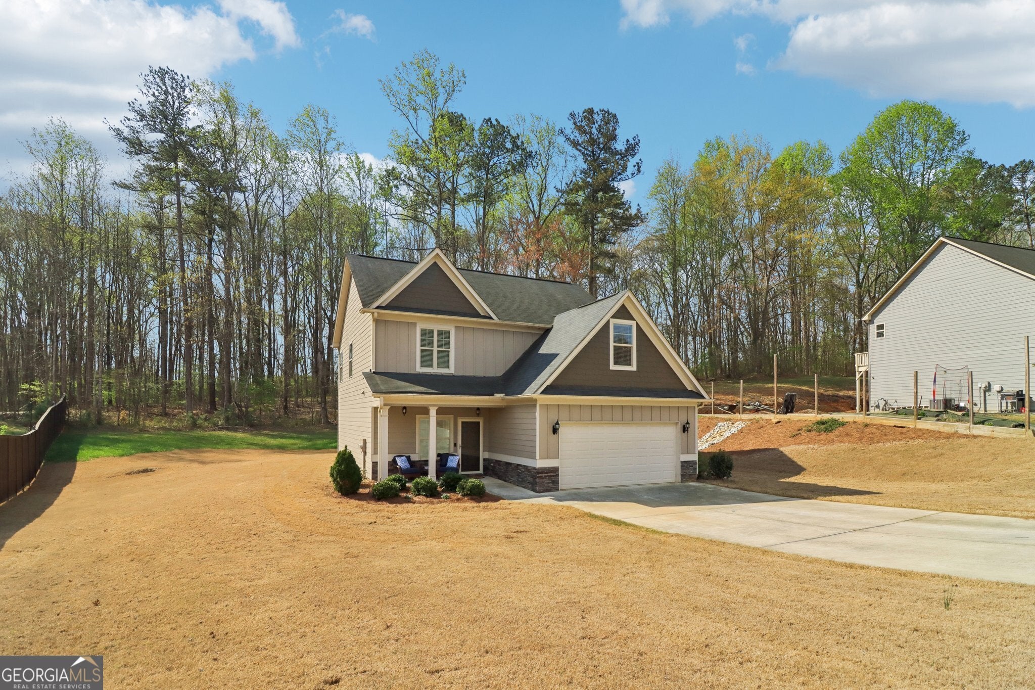 Welcome to 90 Ashley Pointe Drive! Tucked away on a quiet cul-de-sac with only 16 homes and no HOA, this property offers space, functionality, and a location that's hard to beat. Built in 2019, this 4-bedroom, 2.5-bath home features 1,965 square feet with a traditional layout, a comfortable main level with multiple living areas, and all bedrooms upstairs, including a spacious primary suite. The kitchen flows easily into the main living space, making everyday living and entertaining simple. Upstairs, you'll find generously sized bedrooms and a practical layout designed for flexibility. Situated on a level lot in an established neighborhood, the home includes thoughtful upgrades such as custom blinds and a leaf filter gutter system for added convenience and low maintenance. The backyard offers room to relax or create your own outdoor space. Enjoy added privacy with this property backing to GreyStone Power utility-owned land. This designated utility corridor is not slated for residential development, providing a more stable, open backdrop and enhanced long-term privacy. Conveniently located in unincorporated Hiram between Hiram, Dallas, Douglasville, and Powder Springs-just minutes to shopping, dining, WellStar Paulding Hospital, and I-20. Homes in no-HOA cul-de-sac settings like this don't come up often-don't miss it!