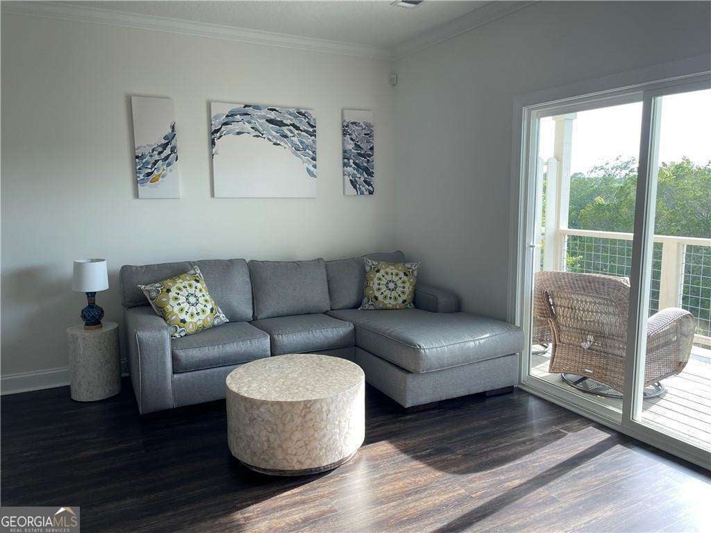 Beautifully maintained and move-in ready, this 1 bedroom, 1 bathroom condo-built in 2021-offers modern coastal living in the desirable Hidden Harbor community. Being sold with some furniture, this property is ideal as a primary residence, second home, or investment opportunity. The interior showcases quality finishes throughout, including solid surface countertops, stainless steel appliances, and a functional breakfast bar in the kitchen. The spacious living area is filled with natural light and features sliding glass doors that open to a private deck-perfect for relaxing or enjoying the coastal breeze. The bedroom offers a queen-size bed. The laundry room is equipped with a washer and dryer. Additional highlights include a dedicated covered parking bay beneath the building along with a private storage room-ideal for bikes, beach gear, or extra belongings. Hidden Harbor is a gated community offering a swimming pool and beautifully maintained grounds. Residents enjoy a peaceful coastal setting with close proximity to marinas, waterways, and the Golden Isles lifestyle. While the marina is separately owned, access opportunities may be available, adding to the appeal for boating enthusiasts. UTILITIES: GA Power, Public Water & Sewer. Roof 4.5 yrs, Water Heater 4.5 yrs, HVAC 4.5 yrs. Termite Bond with Prevail & covered by HOA.
