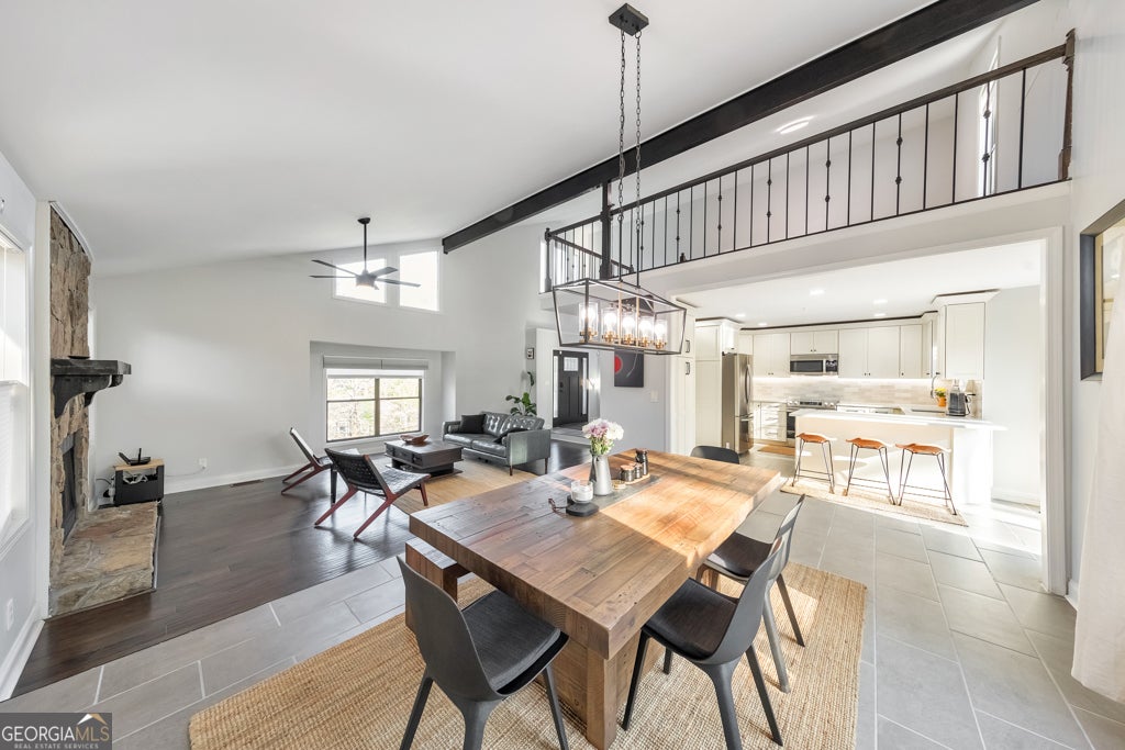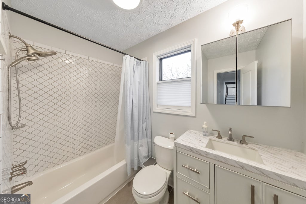 Welcome to this stunning, fully remodeled 5 bedroom, 3 bathroom home in the sought-after Churchill Falls community of Marietta, located in the highly desirable Lassiter High School district. Renovated in 2022, this move-in ready home showcases high-end finishes and thoughtful upgrades throughout, paired with a bright open floorplan designed for modern living. From the moment you step inside, you are greeted by a grand two-story foyer, abundant natural light, and beautiful new wood floors that flow seamlessly throughout the home-completely carpet-free for easy, low-maintenance living. The dramatic two-story fireside family room serves as the heart of the home and flows effortlessly into the sunny dining area, perfect for both everyday living and entertaining. The beautifully updated kitchen features premium Cambria quartz countertops, upgraded Diamond brand cabinetry, stainless steel appliances, and a breakfast bar for additional seating and functionality. Upstairs, the spacious primary suite offers a private retreat with a fully updated ensuite bathroom featuring dual vanities, a new soaking tub, a separate frameless glass shower, and a walk-in closet. Two generously sized secondary bedrooms share an updated hall bathroom. Just a few steps up, a versatile loft overlooks the family room below, complete with updated handrails and loft railings-ideal for a home office, reading nook, or flex space. The lower level expands the living space with two additional bedrooms that can easily serve as a home gym, media room, playroom, or guest space, along with a full bathroom and convenient laundry area. Additional 2022 upgrades include a new front door and all interior doors, resurfaced ceilings in the living and dining rooms, and fully updated bathrooms throughout with new vanities, tubs, faucets, and toilets. Step outside to enjoy the large rear deck overlooking a spacious fenced-in backyard, complete with a brand new fence featuring two entrance points, a garden bed, firepit area, and patio-perfect for relaxing or entertaining outdoors. An attached two-car garage adds convenience, while the prime location offers easy access to premier shopping, dining, and major roadways. This beautifully updated home truly has it all-space, style, and an unbeatable location.