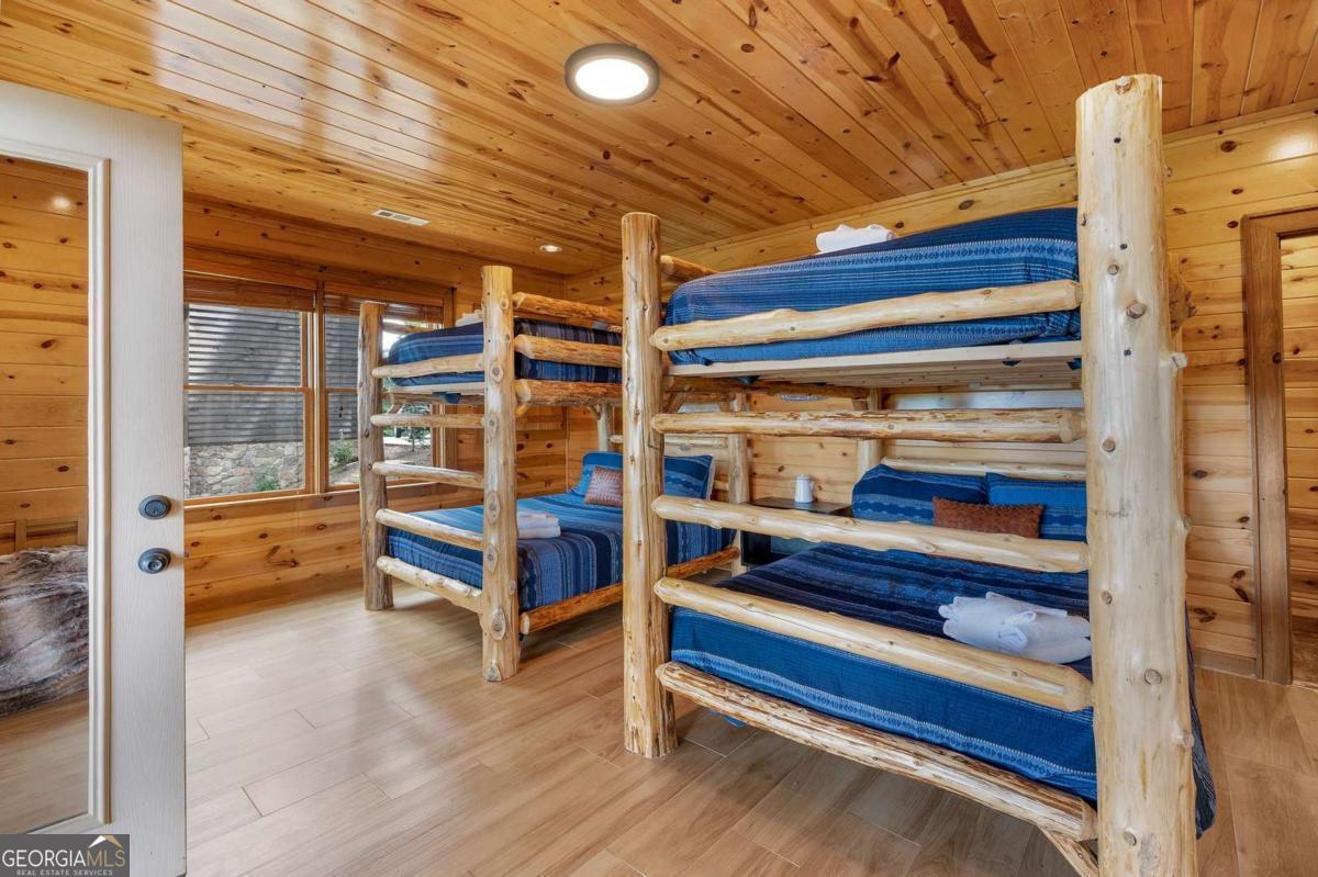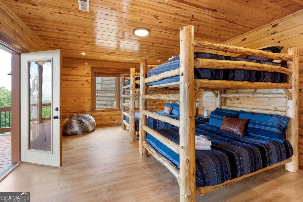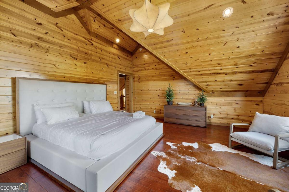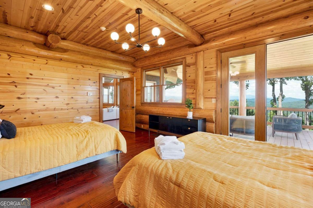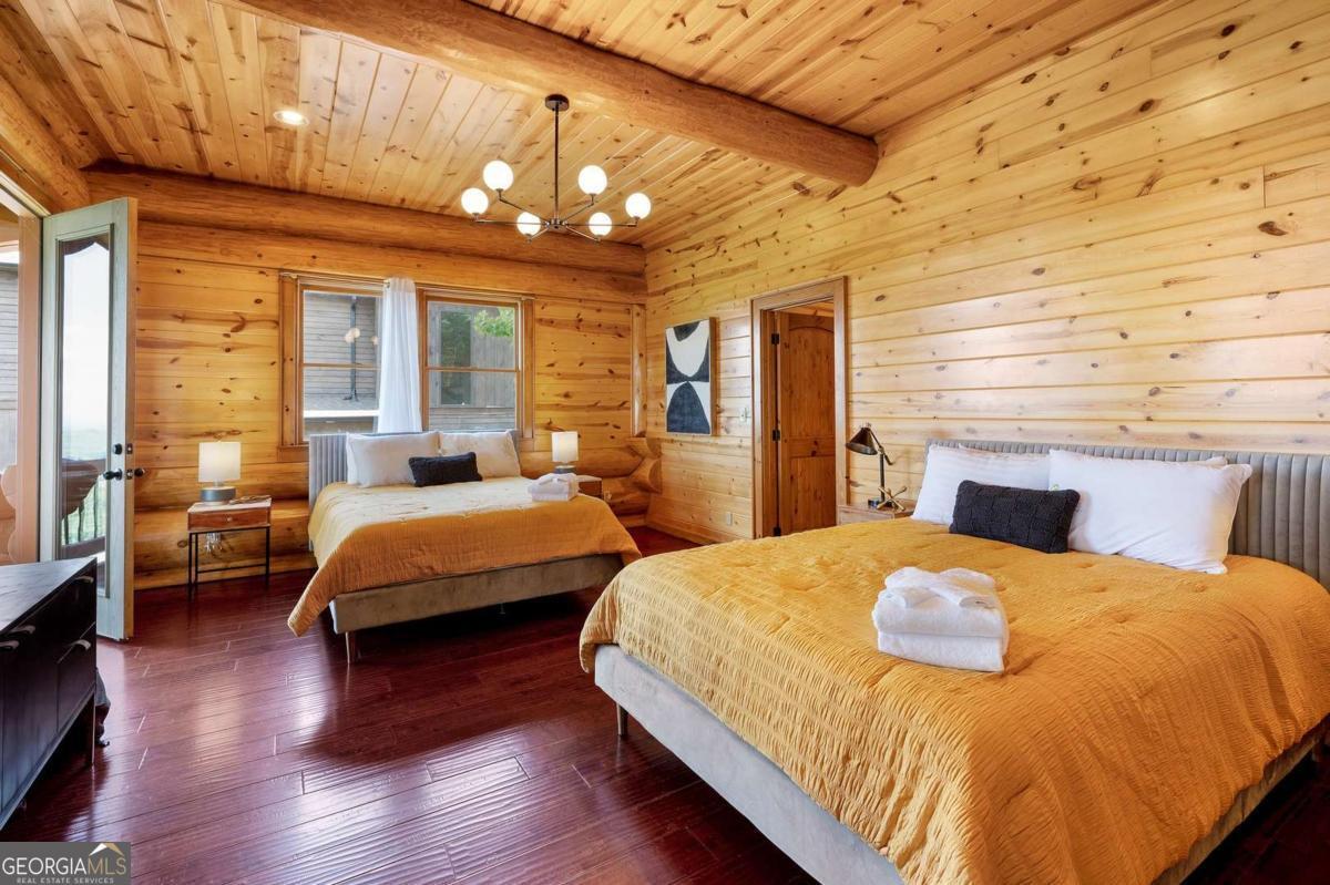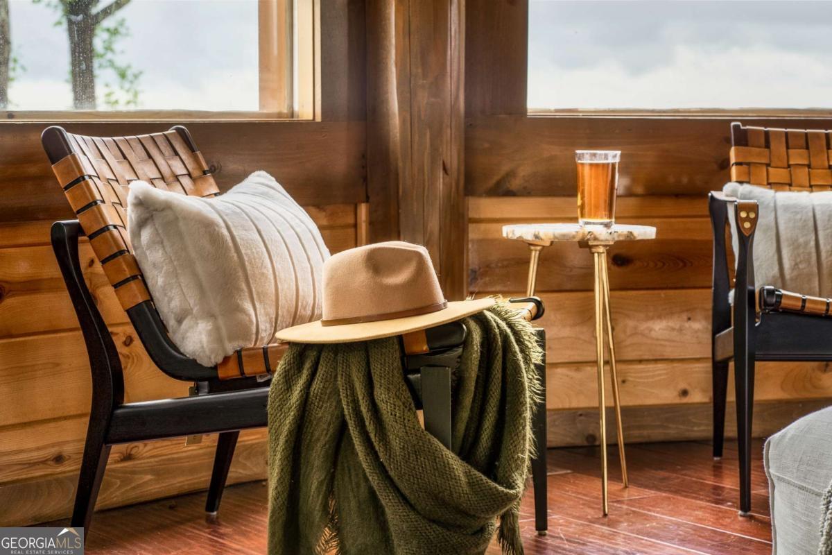Perched high above the clouds, just minutes from the charm of downtown Blue Ridge yet worlds away from the hustle, this extraordinary Canadian Log chalet is a true masterpiece. Step inside and feel instantly embraced by its warmth and elegance. The heart of the home-a chef's kitchen outfitted with top-of-the-line Viking appliances-flows seamlessly into an open-concept living space adorned with designer furnishings and impeccable craftsmanship at every turn. With oversized bedrooms and thoughtful design, this retreat effortlessly accommodates everything from a romantic weekend escape to festive holiday gatherings. Floor-to-ceiling windows invite the awe-inspiring beauty of the multilayered mountain ranges indoors, ensuring that breathtaking views are always part of the experience. Step outside onto one of four expansive decks, where unforgettable sunsets and crisp mountain air await. This impeccably maintained home not only offers a luxurious escape but also boasts a successful rental history, making it a stellar investment opportunity. Whether you're savoring quiet mornings with coffee or hosting unforgettable evenings under a canopy of stars, this chalet is the ultimate upscale getaway you've been dreaming of.