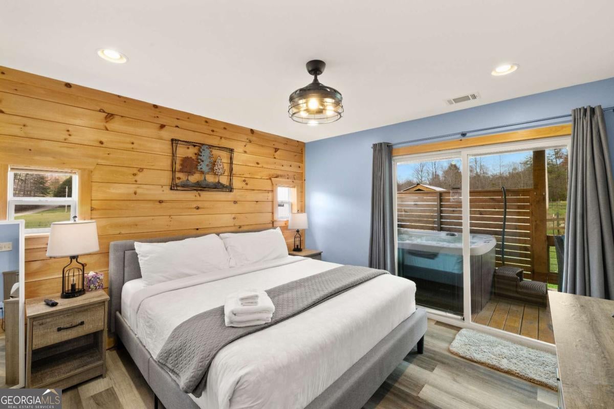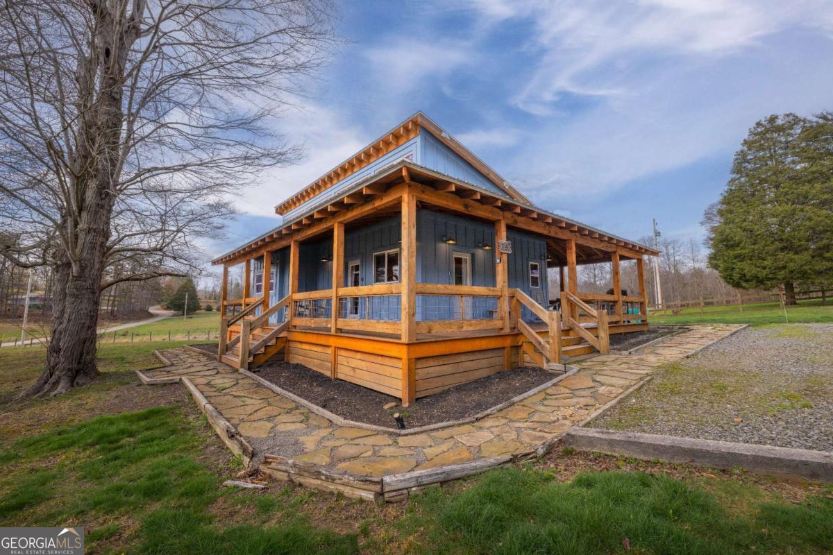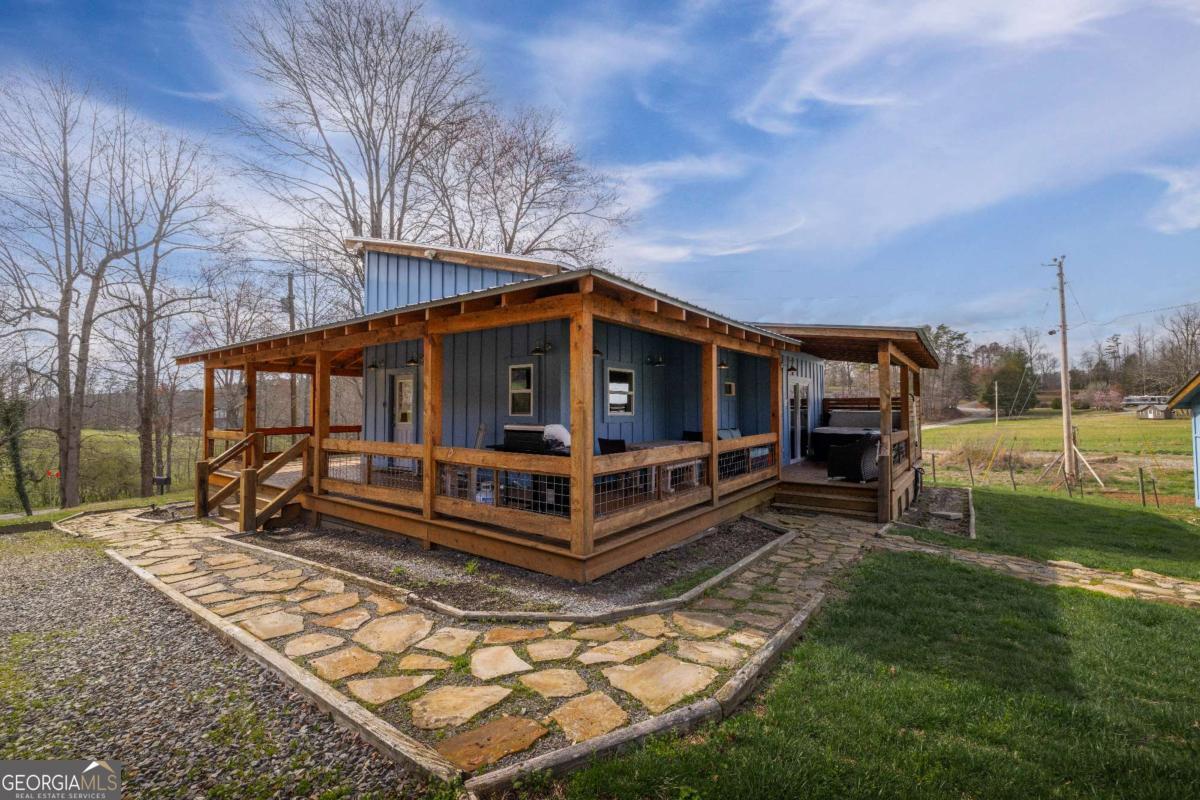Nestled on a serene, one-acre flat and usable lot, this modern 2-bedroom, 2-bathroom cabin with a loft offers the perfect blend of comfort, style, and location. Situated just five minutes from Downtown Blue Ridge, you'll enjoy unbeatable convenience while still savoring quaint mountain living! Step inside to discover a thoughtfully designed main level with two cozy bedrooms and two full bathrooms, perfect for unwinding after a day of adventures. Above the airy living room, the loft provides additional sleeping accommodations, making it ideal for hosting family and friends. Outside, the wraparound porch beckons you to enjoy the crisp mountain air, whether you're sipping your morning coffee, dining alfresco, or soaking in the hot tub on the patio. Surrounded by peaceful pastures and stunning mountain views, this property offers exceptional privacy without sacrificing proximity to all the attractions and amenities Blue Ridge has to offer. Whether you're seeking a lucrative short-term rental, a full-time residence, or a weekend escape, this cabin is a proven gem. Don't miss out on this rare opportunity to combine modern comfort with the charm of mountain living!