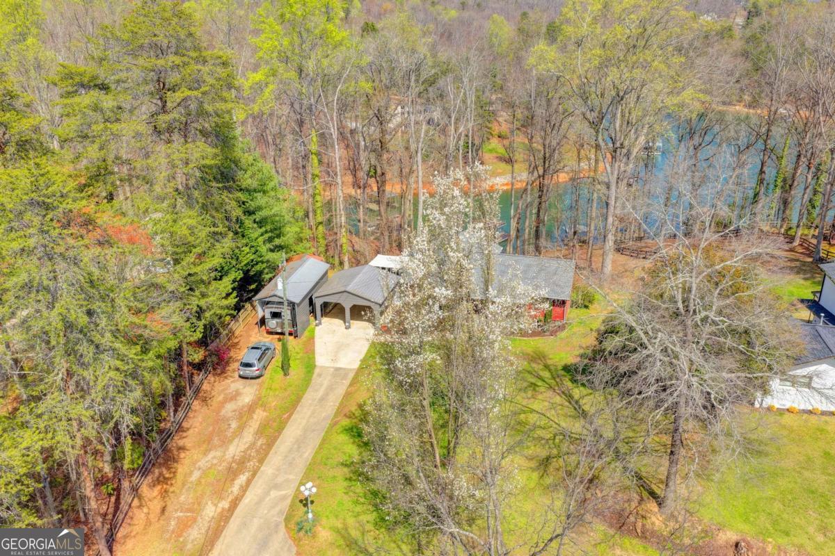 Tucked away on nearly an acre along the shores of Lake Lanier, situated on DEEP WATER, across the lake from Gainesville Marina, where you can fuel your boat and your belly, this rare waterfront opportunity offers the perfect blend of privacy, potential, and location. With approximately 120 feet of shoreline and the Corps line just steps from the water's edge, you'll enjoy easy access to the lake and the freedom to truly maximize your outdoor living experience. A single-slip dock is already permitted-ready for your boat, your mornings on the water, and your sunset evenings. The home itself is full of character and ready for its next chapter. Whether you're looking to renovate, reimagine, or create your dream lake retreat, the possibilities here are endless. Expansive outdoor spaces-including a huge deck and a screened porch-invite you to relax, entertain, and take in the peaceful surroundings. Inside, a bright and inviting sunroom offers incredible potential for year-round enjoyment, with beautiful lake views that will truly open up with a simple vista prune on the trees. Convenience meets lifestyle with this property's close proximity to Simpson Park boat launch, making getting out on the water effortless. Additional features include a 2-car carport and an RV shed-perfect for storing your lake toys, boat accessories, or accommodating guests with recreational vehicles. If you've been searching for a property on Lake Lanier where you can create something special-this is it. A setting like this, with this much shoreline and such easy water access, is becoming harder to find. Bring your vision and make it your own lakefront escape.