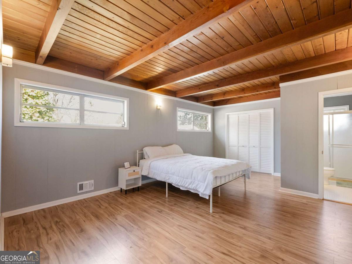 A beautifully maintained brick duplex in the heart of Jefferson Park offering flexibility, charm, and income potential. This unique property features two separate living spaces: a spacious 3 bedroom / 2 bath main residence and a private 1 bedroom / 1 bath suite. The main level showcases timeless character with original hardwood floors, graceful archways, sun-filled rooms, and warm wood ceilings that highlight the home's historic charm. Enjoy a large living room with a classic brick fireplace and built-in shelving, an inviting dining room perfect for gatherings, and an updated kitchen that blends modern convenience with original detail. The three generously sized bedrooms and two full baths offer comfortable living for owners or tenants alike. Upstairs, the 1/1 suite provides its own private retreat complete with vintage charm, eat-in kitchen, bedroom, bath, and flexible office space. With separate metering (except gas), this space is ideal for short-term rental, long-term income, house hacking, multi-generational living, or a private guest suite. Outside, the flat, partially fenced yard offers plenty of room to relax, entertain, or create your own backyard oasis. Imagine evenings around a fire pit enjoying the vibrant community atmosphere Jefferson Park is known for. Conveniently located just minutes from Hartsfield-Jackson International Airport, Midtown, and major interstates, this property combines neighborhood charm with unbeatable accessibility. Whether you're looking for an owner-occupant opportunity with rental income, a pure investment property, or a character-filled home with flexible living options.