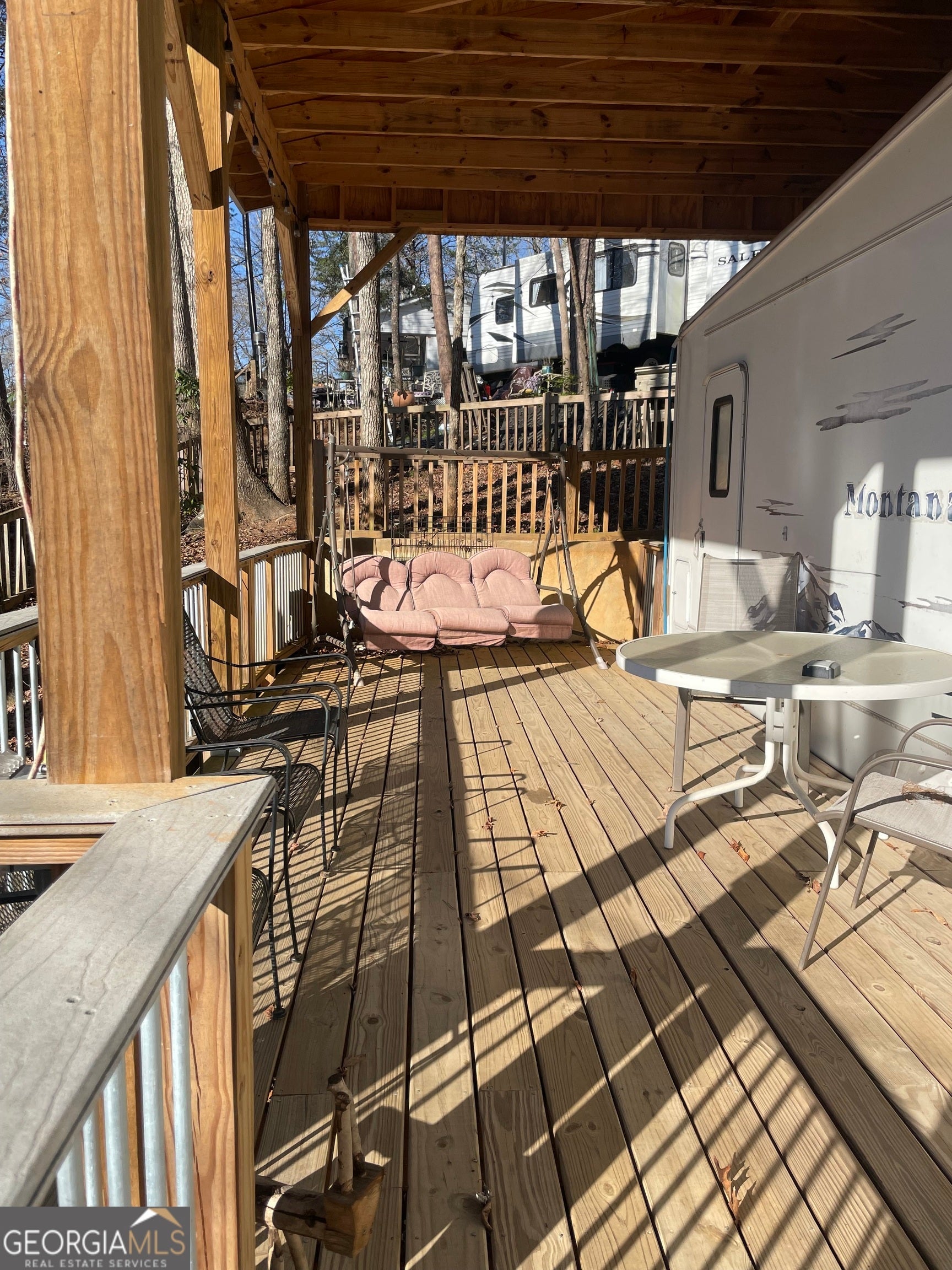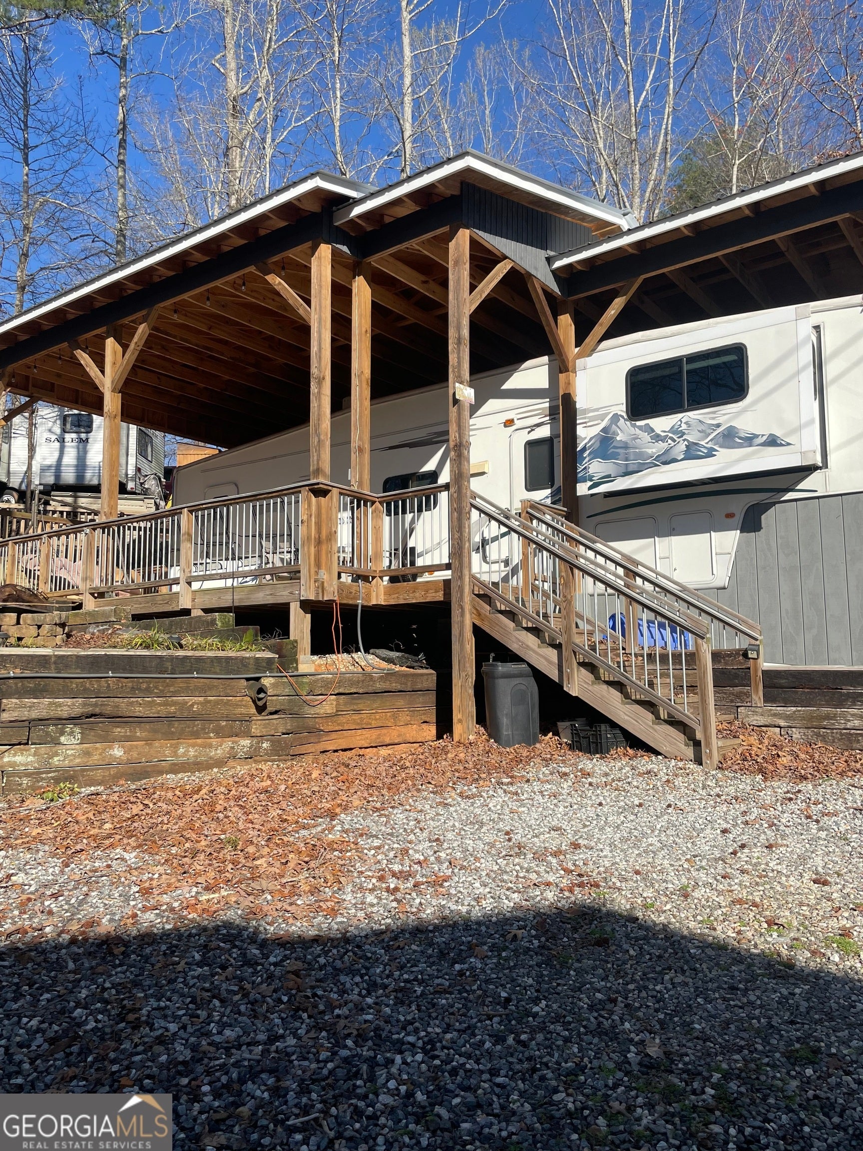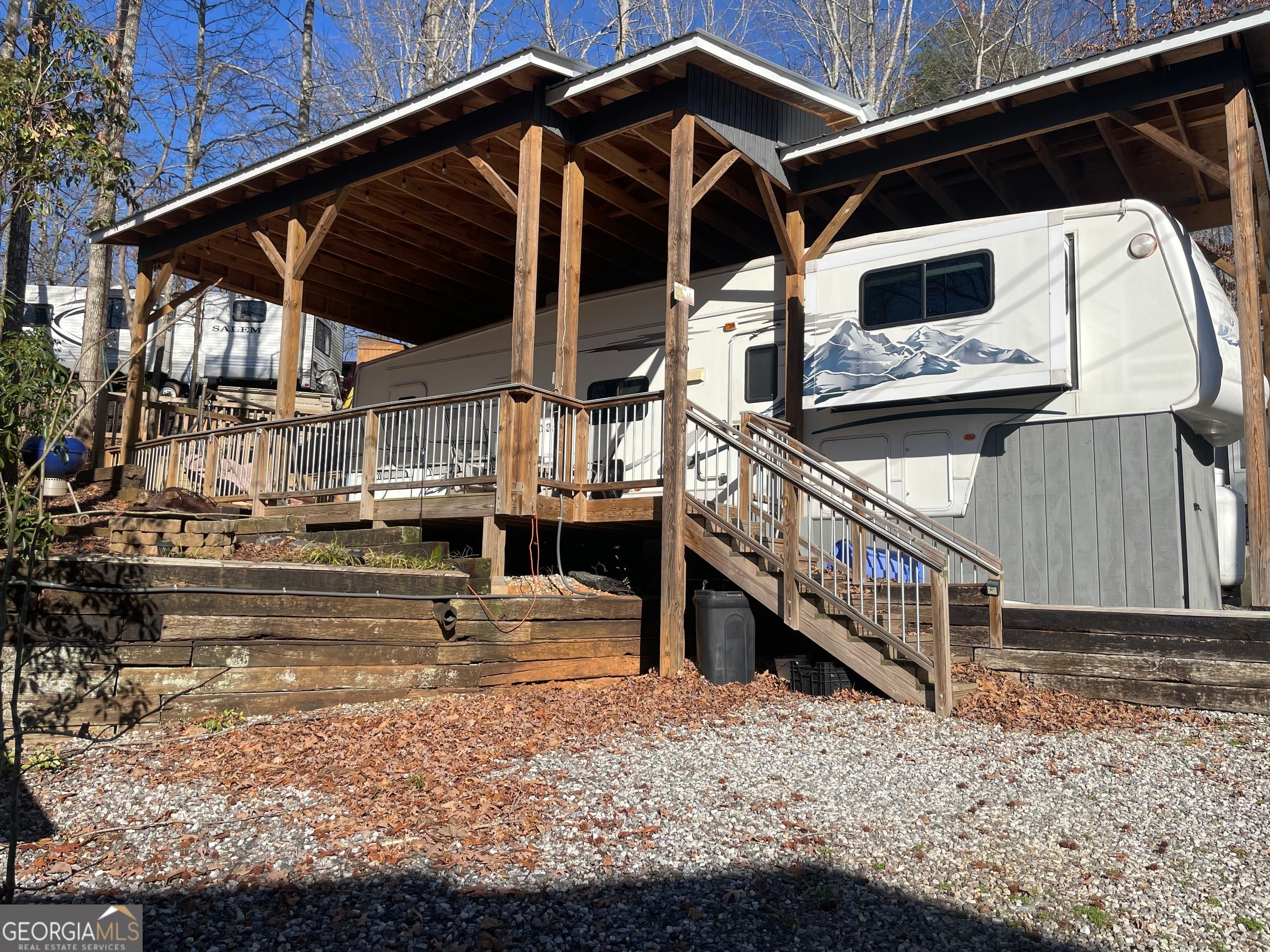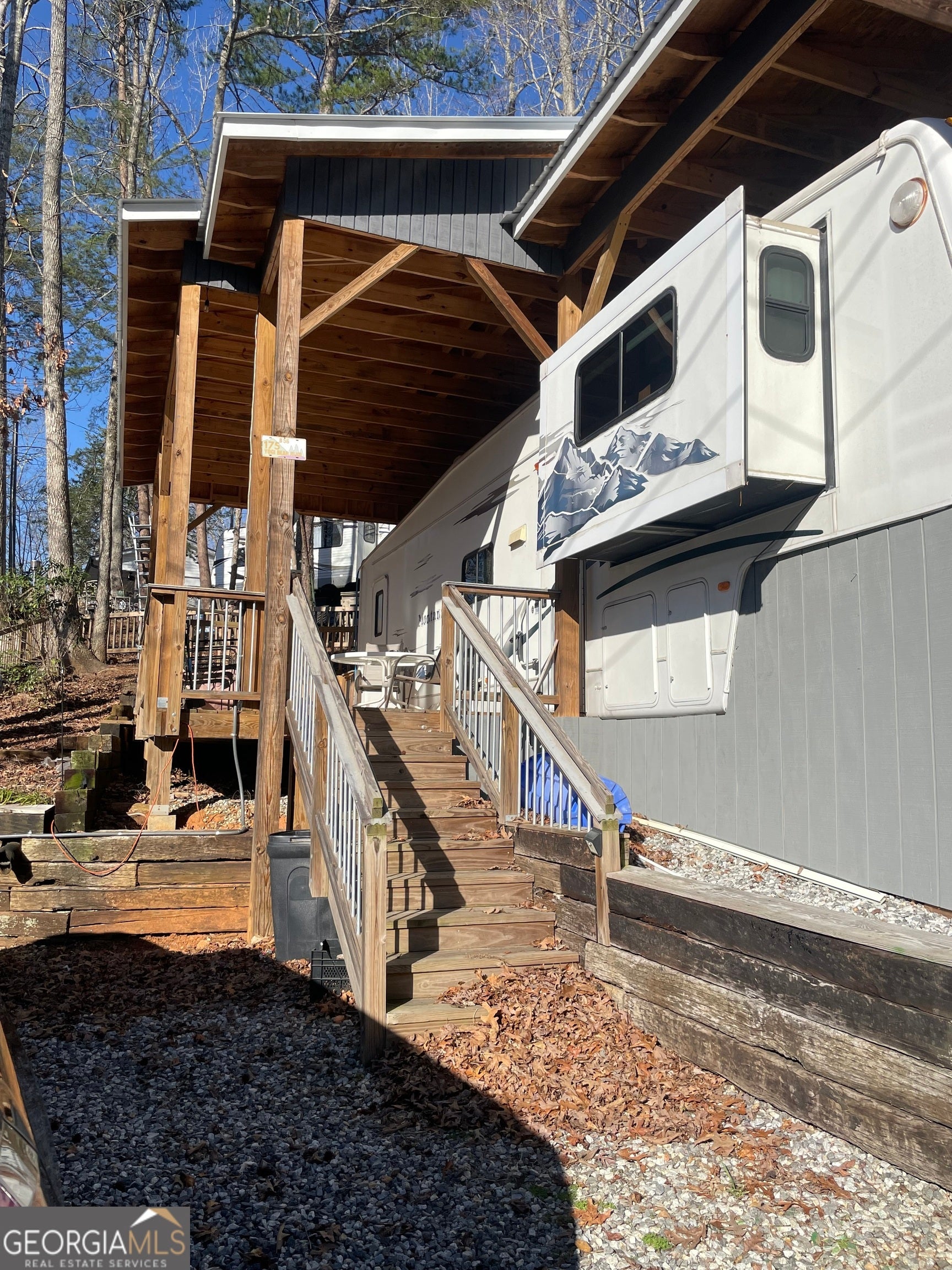 Beautiful view of lake right from the front porch and living room! Great price for a fully furnished, ready to go, 1 BD/1BA RV with incredible views and steps from the water of Lake Qualatchee! Available for short term rental, vacation home or full time living. Extra yard space with wooden fence, large storage area under trailer hitch, cement retaining wall across back of property, parking for two cars and golf cart. Mountain Shadows is a gated community with so much to offer. Indoor and Outdoor pools, water slide, miniature golf, horse stables and trails, fishing and kayaking, playground, chapel with Sunday services, diner, country store, community hall and lots of planned activities for families! Resort is centrally located to Cleveland, Helen, Clarkesville, Lake Burton, Blairesville, Hiawassee, plenty of shopping and restaurants and easy access to freeway. Sellers are motivated and have priced below what they have in it! Please take a look and bring your offers, just in time for spring and fishing season!