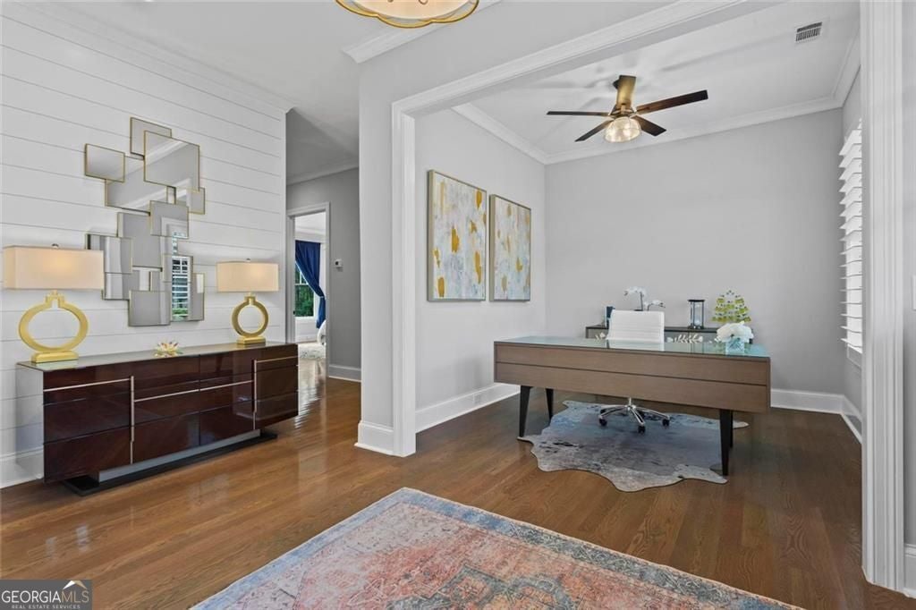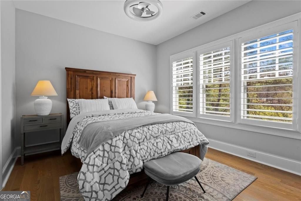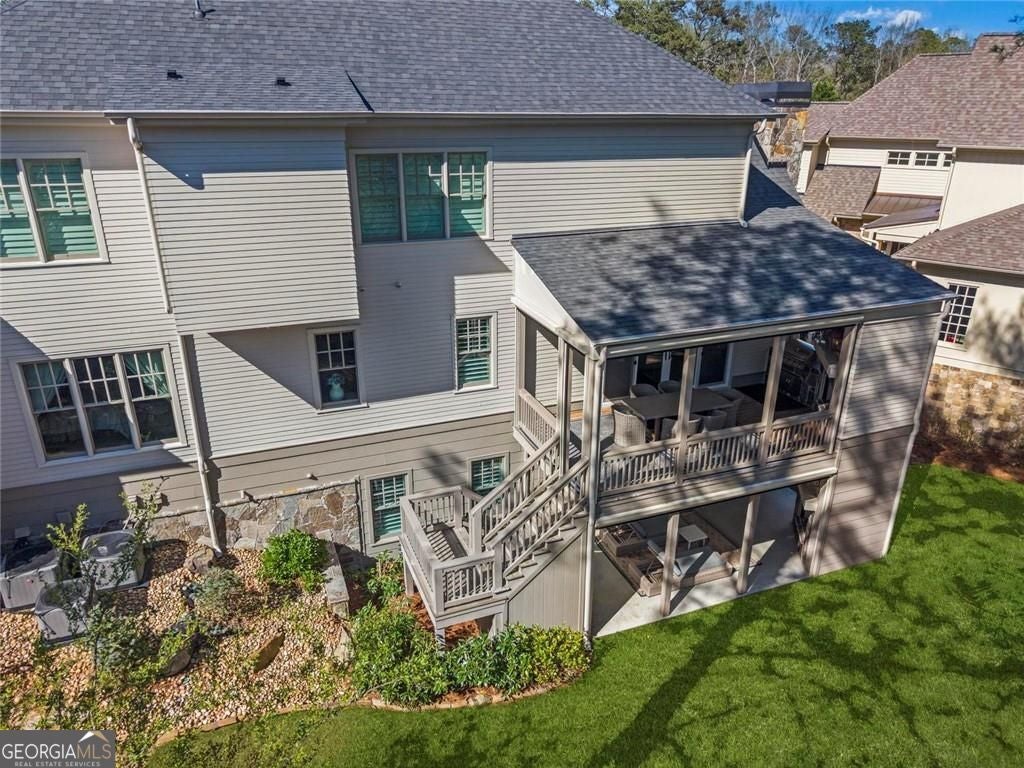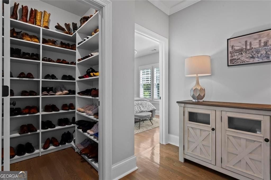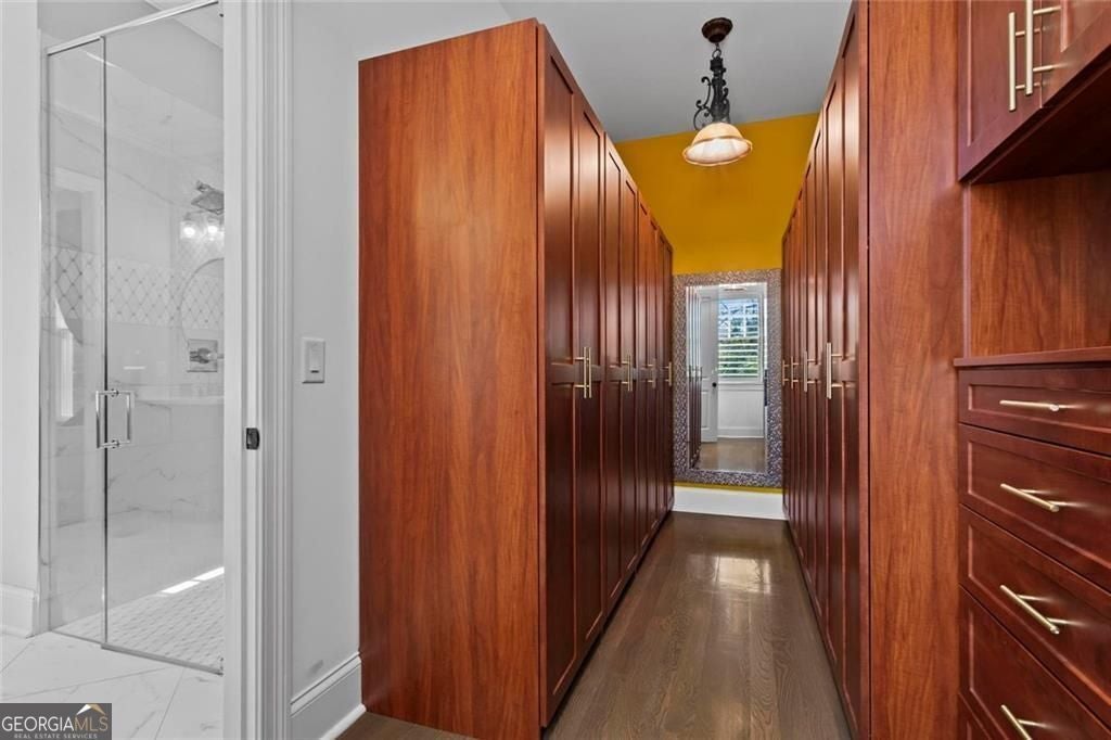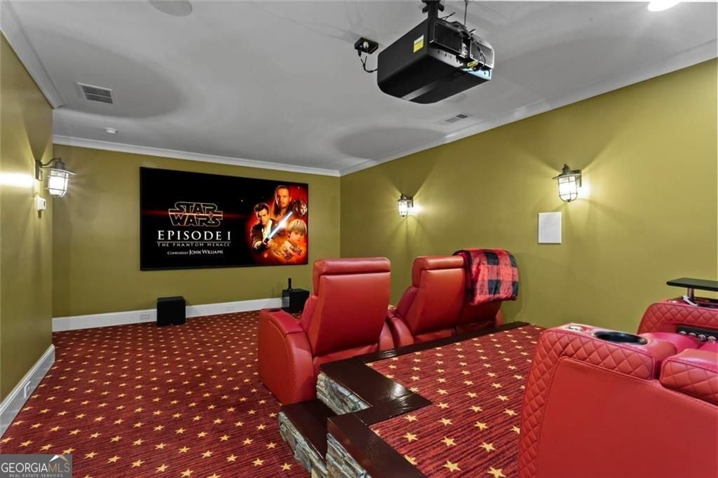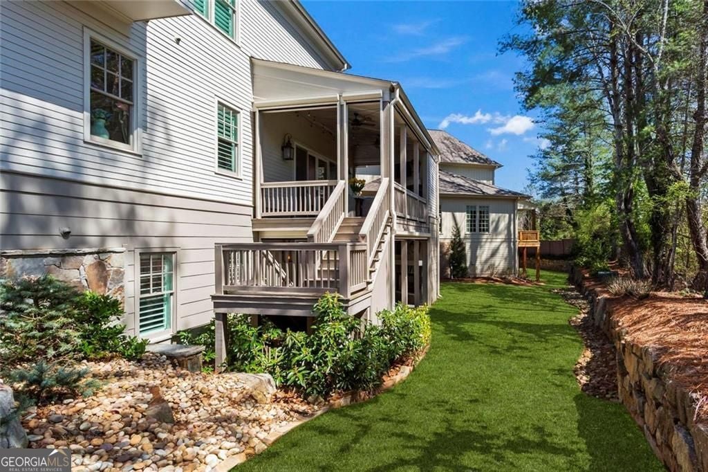Welcome to 2578 Middle Coray Circle, a stunning luxury home featuring designer finishes and impressive upgrades. The residence boasts a cedar shake and stone exterior on a full, finished daylight terrace level, and is sited on a professionally landscaped cul-de-sac lot in a coveted East Cobb neighborhood. Constructed by one of the area's top custom home builders, the expansive floor plan with its thoughtful design, exceptional craftsmanship, and meticulous attention to detail, offers an idyllic setting for lavish celebrations and cozy gatherings alike. A sheltered portico welcomes visitors into a spacious foyer, where exceptional millwork and beautiful site-finished hardwood floors extend throughout the house. A convenient, light-filled office sits right of the entry, with luxurious 4-inch plantation shutters, also found throughout the residence. High-end designer lighting adds sophisticated style. The custom closets highlight a commitment to both elegance and functionality. Enjoy ample storage with two shoe closets for up to 200 pairs, keeping your wardrobe beautifully organized. The chef's dream kitchen is the centrepiece of the home, featuring high-end Thermador appliances, a spacious pantry/scullery, ample recessed and under-cabinet lighting, a subway tile backsplash, ceiling-high custom cabinets, and elegant quartz countertops-all perfect for creating tasty culinary delights. An island breakfast bar showcases a waterfall countertop and gorgeous pendant lighting. Located behind a door adjacent to the scullery, the main level offers a conveniently situated laundry room. The kitchen opens seamlessly to the spacious dining area and fireside great room, both with soaring vaulted ceilings. The great room boasts a stone fireplace situated on a shiplap accent wall. Panoramic sliding doors from the dining and great room lead onto your main level covered deck complete with stone fireplace, built-in grill, ceiling fans, gas lanterns and remote-controlled retractable screens. Unwind in the main-level owner's suite, boasting a spa-style bath with designer tile flooring and a large walk-in shower. The custom owner's closet is both stunning and functional, creating an organized space that adds simplicity to daily life. Quality finishes continue upstairs with three large secondary bedrooms-one with an ensuite bath and Juliet balcony, and two sharing a bath with double vanities. The upper level features a flex space ideal for teens, a second well-equipped laundry room, and a spacious shoe closet. Delight in the thoughtfully finished terrace level, boasting a large open office or entertaining space, a fifth bedroom and full bath plus more storage! This premier entertainment space features a large theater room with a 110-inch screen, perfect for enjoying movies or watching your favorite sports. Panoramic sliding doors lead to the lower-level covered patio, with a fireplace, gas lanterns, ceiling fans and remote-controlled retractable screens. This impressive home features space for a future elevator, two indoor and two outdoor fireplaces, seven gas lanterns, and a three-car garage with epoxy floors. The beautifully landscaped grounds are maintained through the HOA, for a simple, lock and leave lifestyle. The Oaks at Mill Pond neighborhood boasts tree-lined streets, sidewalks and lavishly landscaped common areas. Often described as a mini Serenbe, The Oaks at Mill Pond invites residents to "Step Back to A Simpler Place in Time" with its quaint charm, yet modern and sophisticated luxury appointments. Conveniently located to shopping, dining, downtown Roswell, Woodstock, and Avenue East Cobb.