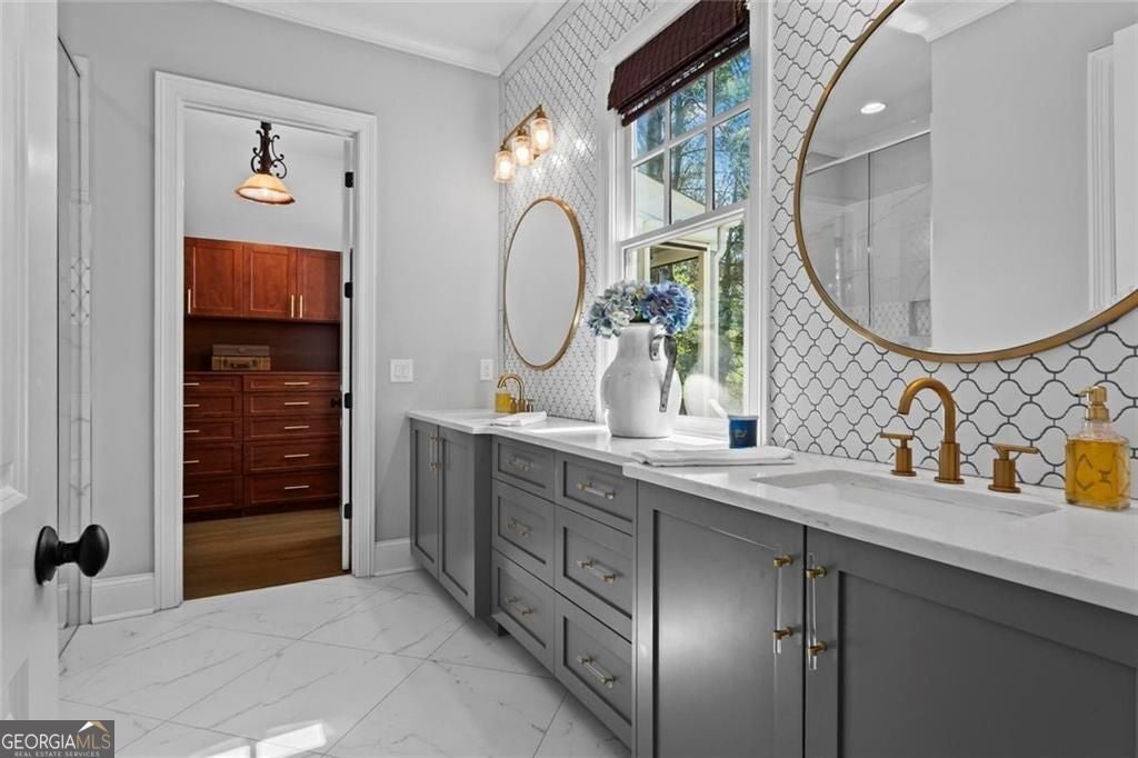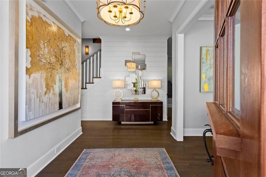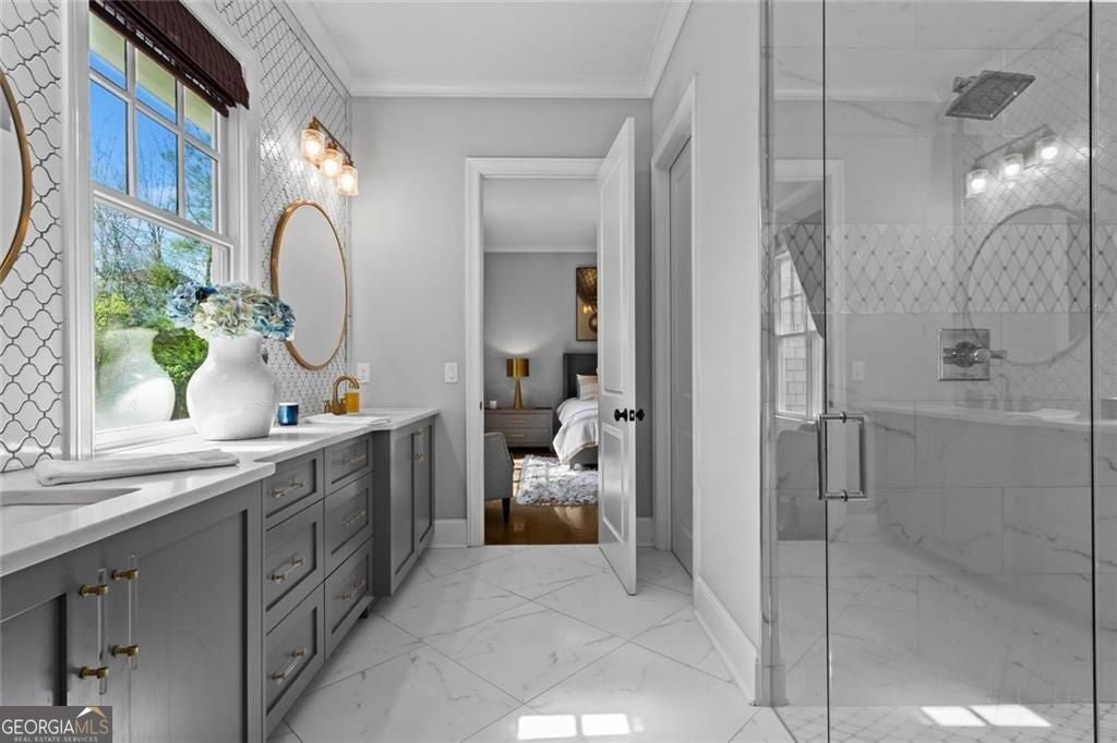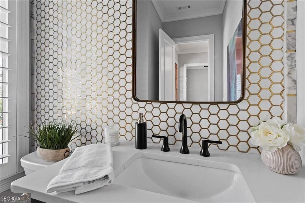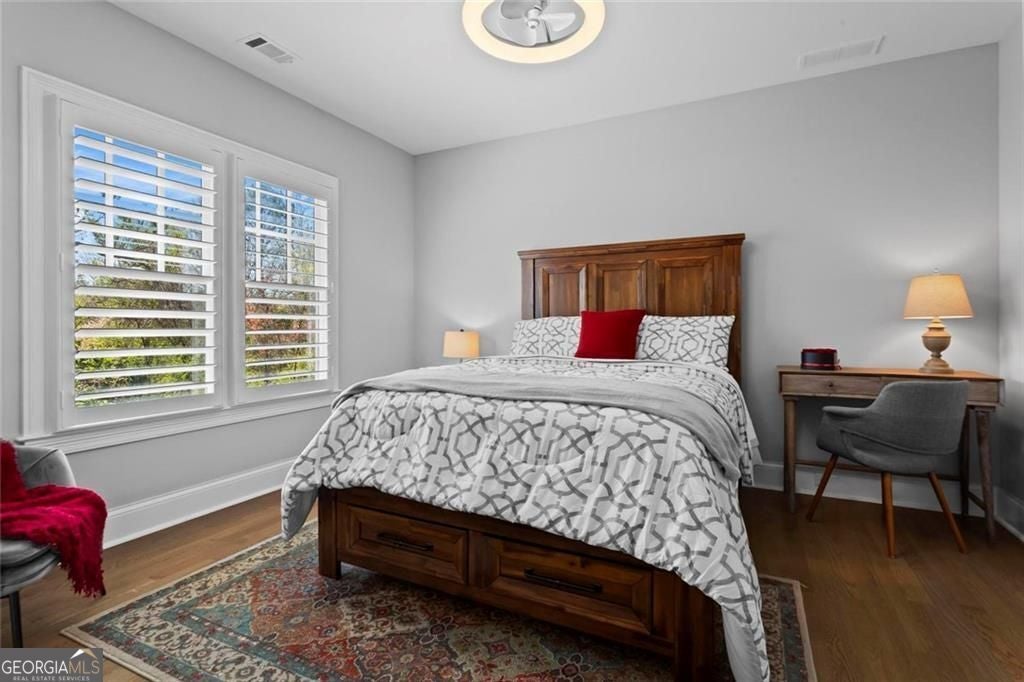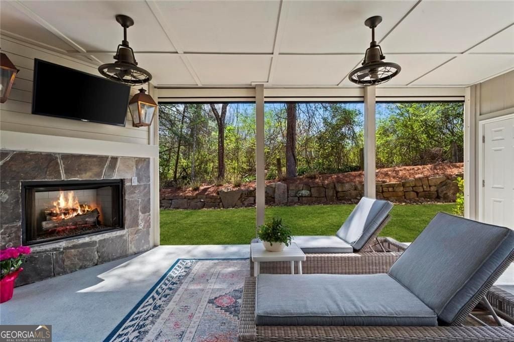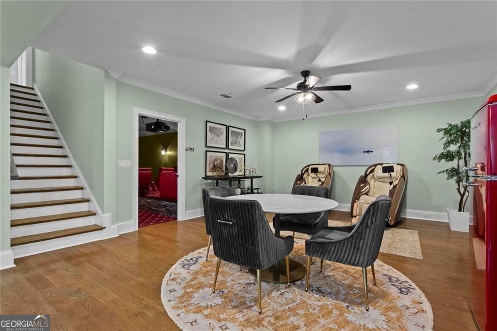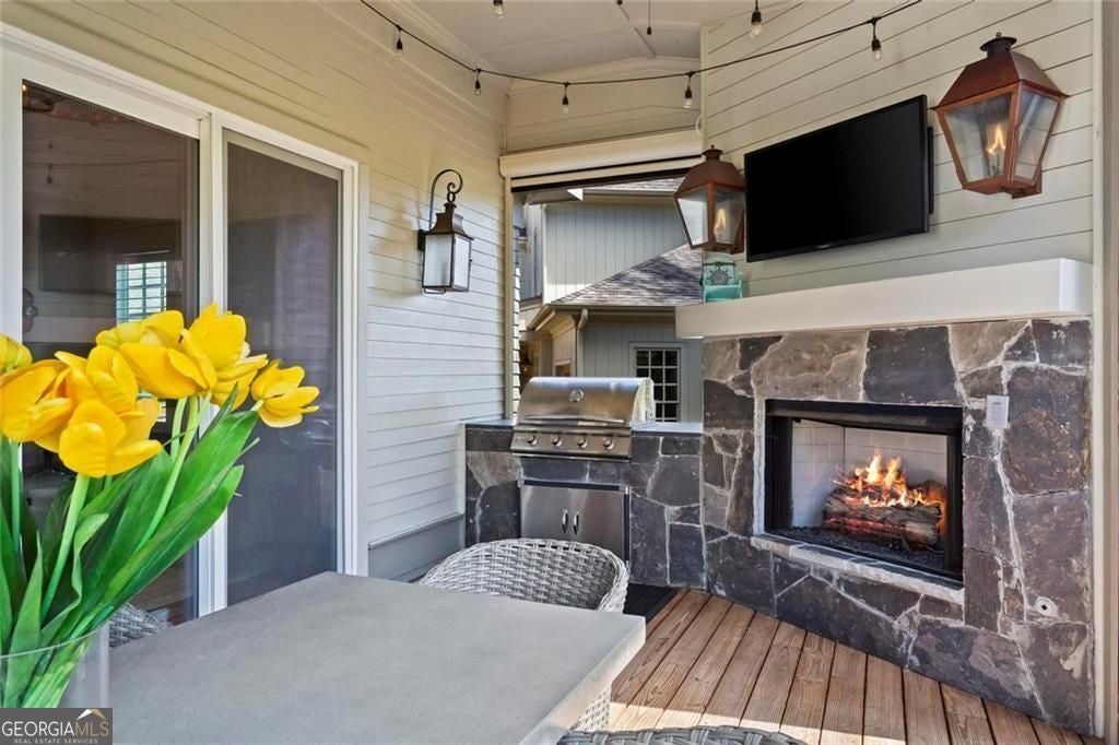 Welcome to 2578 Middle Coray Circle, a stunning luxury home featuring designer finishes and impressive upgrades. The residence boasts a cedar shake and stone exterior on a full, finished daylight terrace level, and is sited on a professionally landscaped cul-de-sac lot in a coveted East Cobb neighborhood. Constructed by one of the area's top custom home builders, the expansive floor plan with its thoughtful design, exceptional craftsmanship, and meticulous attention to detail, offers an idyllic setting for lavish celebrations and cozy gatherings alike. A sheltered portico welcomes visitors into a spacious foyer, where exceptional millwork and beautiful site-finished hardwood floors extend throughout the house. A convenient, light-filled office sits right of the entry, with luxurious 4-inch plantation shutters, also found throughout the residence. High-end designer lighting adds sophisticated style. The custom closets highlight a commitment to both elegance and functionality. Enjoy ample storage with two shoe closets for up to 200 pairs, keeping your wardrobe beautifully organized. The chef's dream kitchen is the centrepiece of the home, featuring high-end Thermador appliances, a spacious pantry/scullery, ample recessed and under-cabinet lighting, a subway tile backsplash, ceiling-high custom cabinets, and elegant quartz countertops-all perfect for creating tasty culinary delights. An island breakfast bar showcases a waterfall countertop and gorgeous pendant lighting. Located behind a door adjacent to the scullery, the main level offers a conveniently situated laundry room. The kitchen opens seamlessly to the spacious dining area and fireside great room, both with soaring vaulted ceilings. The great room boasts a stone fireplace situated on a shiplap accent wall. Panoramic sliding doors from the dining and great room lead onto your main level covered deck complete with stone fireplace, built-in grill, ceiling fans, gas lanterns and remote-controlled retractable screens. Unwind in the main-level owner's suite, boasting a spa-style bath with designer tile flooring and a large walk-in shower. The custom owner's closet is both stunning and functional, creating an organized space that adds simplicity to daily life. Quality finishes continue upstairs with three large secondary bedrooms-one with an ensuite bath and Juliet balcony, and two sharing a bath with double vanities. The upper level features a flex space ideal for teens, a second well-equipped laundry room, and a spacious shoe closet. Delight in the thoughtfully finished terrace level, boasting a large open office or entertaining space, a fifth bedroom and full bath plus more storage! This premier entertainment space features a large theater room with a 110-inch screen, perfect for enjoying movies or watching your favorite sports. Panoramic sliding doors lead to the lower-level covered patio, with a fireplace, gas lanterns, ceiling fans and remote-controlled retractable screens. This impressive home features space for a future elevator, two indoor and two outdoor fireplaces, seven gas lanterns, and a three-car garage with epoxy floors. The beautifully landscaped grounds are maintained through the HOA, for a simple, lock and leave lifestyle. The Oaks at Mill Pond neighborhood boasts tree-lined streets, sidewalks and lavishly landscaped common areas. Often described as a mini Serenbe, The Oaks at Mill Pond invites residents to "Step Back to A Simpler Place in Time" with its quaint charm, yet modern and sophisticated luxury appointments. Conveniently located to shopping, dining, downtown Roswell, Woodstock, and Avenue East Cobb.