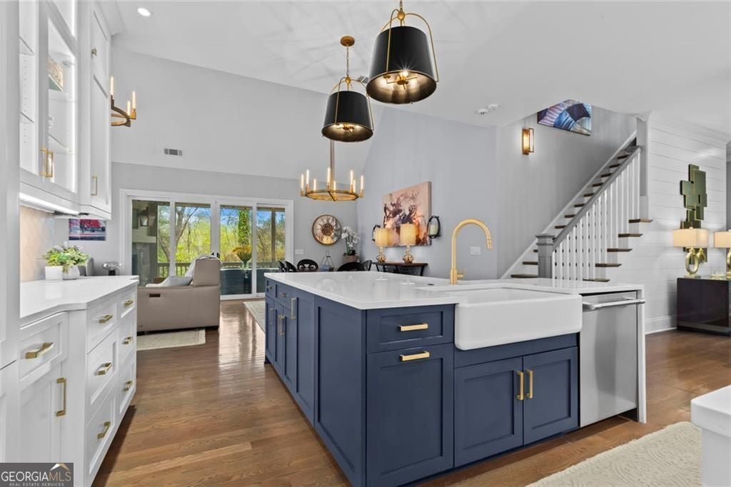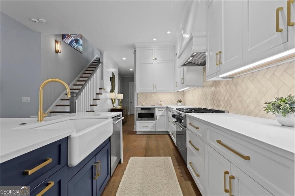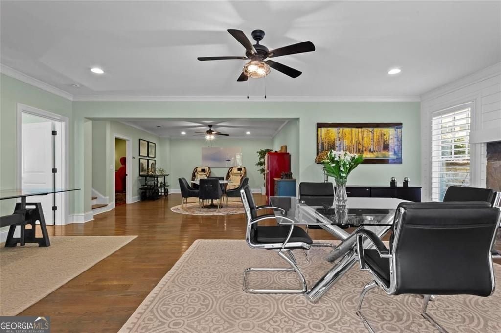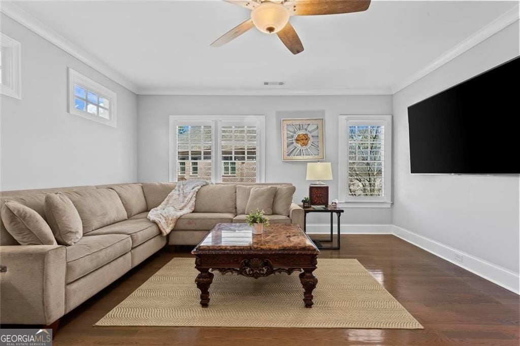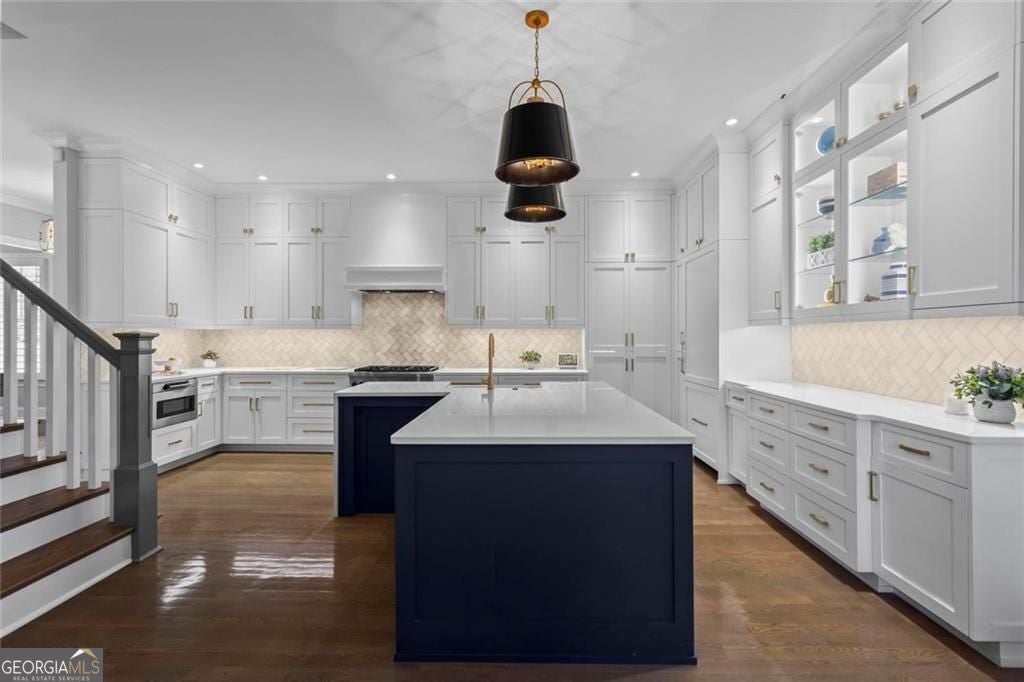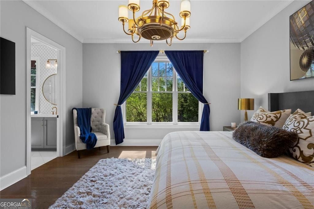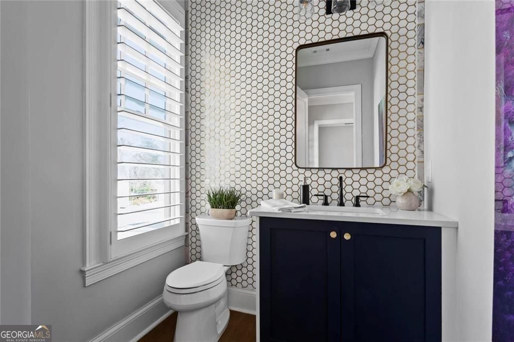Welcome to 2578 Middle Coray Circle, a stunning luxury home featuring designer finishes and impressive upgrades. The residence boasts a cedar shake and stone exterior on a full, finished daylight terrace level, and is sited on a professionally landscaped cul-de-sac lot in a coveted East Cobb neighborhood. Constructed by one of the area's top custom home builders, the expansive floor plan with its thoughtful design, exceptional craftsmanship, and meticulous attention to detail, offers an idyllic setting for lavish celebrations and cozy gatherings alike. A sheltered portico welcomes visitors into a spacious foyer, where exceptional millwork and beautiful site-finished hardwood floors extend throughout the house. A convenient, light-filled office sits right of the entry, with luxurious 4-inch plantation shutters, also found throughout the residence. High-end designer lighting adds sophisticated style. The custom closets highlight a commitment to both elegance and functionality. Enjoy ample storage with two shoe closets for up to 200 pairs, keeping your wardrobe beautifully organized. The chef's dream kitchen is the centrepiece of the home, featuring high-end Thermador appliances, a spacious pantry/scullery, ample recessed and under-cabinet lighting, a subway tile backsplash, ceiling-high custom cabinets, and elegant quartz countertops-all perfect for creating tasty culinary delights. An island breakfast bar showcases a waterfall countertop and gorgeous pendant lighting. Located behind a door adjacent to the scullery, the main level offers a conveniently situated laundry room. The kitchen opens seamlessly to the spacious dining area and fireside great room, both with soaring vaulted ceilings. The great room boasts a stone fireplace situated on a shiplap accent wall. Panoramic sliding doors from the dining and great room lead onto your main level covered deck complete with stone fireplace, built-in grill, ceiling fans, gas lanterns and remote-controlled retractable screens. Unwind in the main-level owner's suite, boasting a spa-style bath with designer tile flooring and a large walk-in shower. The custom owner's closet is both stunning and functional, creating an organized space that adds simplicity to daily life. Quality finishes continue upstairs with three large secondary bedrooms-one with an ensuite bath and Juliet balcony, and two sharing a bath with double vanities. The upper level features a flex space ideal for teens, a second well-equipped laundry room, and a spacious shoe closet. Delight in the thoughtfully finished terrace level, boasting a large open office or entertaining space, a fifth bedroom and full bath plus more storage! This premier entertainment space features a large theater room with a 110-inch screen, perfect for enjoying movies or watching your favorite sports. Panoramic sliding doors lead to the lower-level covered patio, with a fireplace, gas lanterns, ceiling fans and remote-controlled retractable screens. This impressive home features space for a future elevator, two indoor and two outdoor fireplaces, seven gas lanterns, and a three-car garage with epoxy floors. The beautifully landscaped grounds are maintained through the HOA, for a simple, lock and leave lifestyle. The Oaks at Mill Pond neighborhood boasts tree-lined streets, sidewalks and lavishly landscaped common areas. Often described as a mini Serenbe, The Oaks at Mill Pond invites residents to "Step Back to A Simpler Place in Time" with its quaint charm, yet modern and sophisticated luxury appointments. Conveniently located to shopping, dining, downtown Roswell, Woodstock, and Avenue East Cobb.