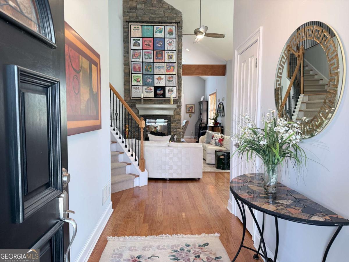 Welcome to this stunning Craftsman-style home nestled in a highly sought-after Old Town Conyers neighborhood-just minutes from shopping, dining, and all the charm of historic downtown! This beautifully maintained 4-bedroom, 3.5-bath home boasts timeless curb appeal with durable HardiPlank siding and striking stacked stone accents. Step inside to a grand foyer that opens into an expansive sitting area featuring a gorgeous double-sided fireplace, seamlessly shared with the family and dining space-perfect for both entertaining and everyday living. French doors lead out to a spacious deck overlooking the beautifully landscaped backyard. The chef's kitchen is truly the heart of the home, thoughtfully designed with double ovens, a built-in microwave, stainless steel appliances, solid surface countertops, a walk-in pantry, and an impressive butler's pantry complete with its own sink-ideal for hosting and prep work. The main-level primary suite is a peaceful retreat filled with natural light. The luxurious en suite bath features a double vanity, whirlpool tub, glass and tile shower, and separate his-and-hers walk-in closets. An additional versatile room on the main level-currently used as a sitting room-could easily serve as a bedroom, and a small office near the entry provides a perfect work-from-home space. Upstairs, you'll find generously sized secondary bedrooms connected by a convenient Jack-and-Jill bathroom, each offering large walk-in closets. The upper level also features an overlook that adds architectural interest and provides an open view to the living space below, along with abundant storage throughout. The finished basement expands your living space with a large recreation room currently used as a children's playroom, fully heated and cooled by the main HVAC system. A beautifully finished half bath is just off of the main room. A laundry closet, boat door garage access, and an additional unfinished storage room offer both functionality and flexibility. Outdoors, enjoy a beautifully landscaped yard, a large deck perfect for entertaining, and the added bonus of an adjacent cleared and grassed lot-approximately a quarter acre-included in the sale, providing extra space, privacy, or future possibilities. This exceptional property combines classic style, modern comfort, and an unbeatable location-don't miss your opportunity to call it home!