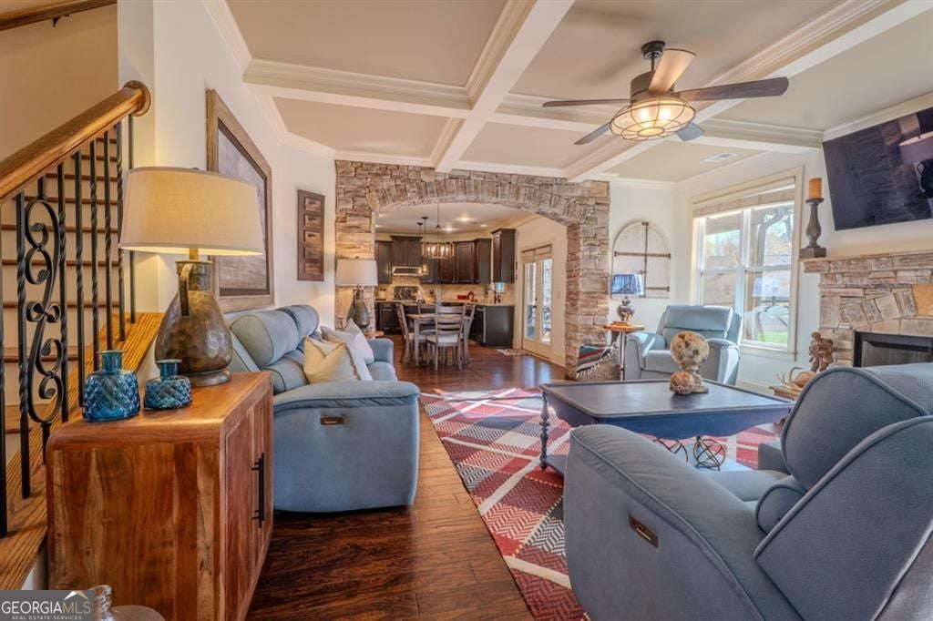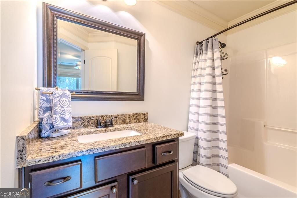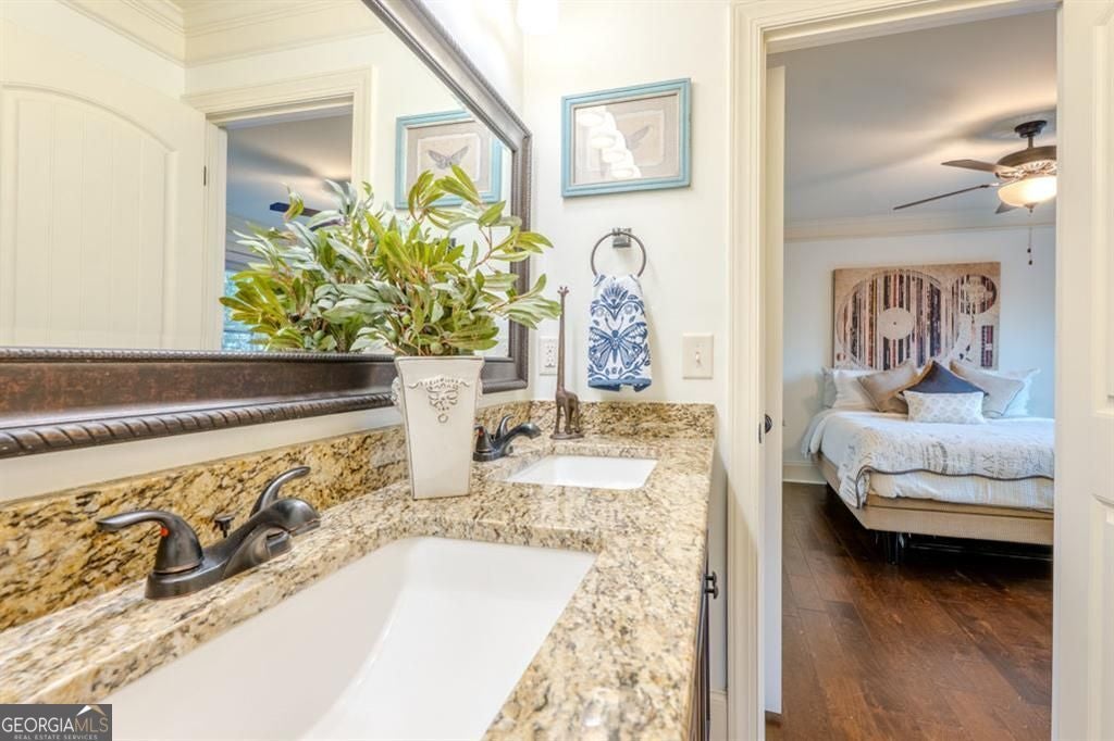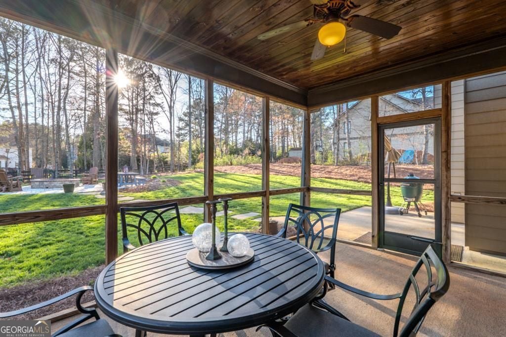 This rare opportunity to enjoy lease in the sought after Lathem's Mill neighborhood a beautifully upgraded home with exceptional space, style, and comfort in a highly convenient location. This 5 bedroom, 4 full bathroom home sits on a spacious lot with level backyard, offering a combination of modern construction and custom detail that is hard to find in the rental market. Inside, the home features all hardwood floors, oversized rooms, granite finishes, custom woodworking, and a custom stone archway between the kitchen and living room that creates a warm and elevated design feel. One bedroom is located on the main level with access to a full bathroom, providing flexible use options for guests, a home office, or additional living space. The primary suite is especially impressive, occupying the entire upper half of the home and offering a spacious private retreat. It includes a sitting area, his and hers walk in closets, and an oversized bathroom designed with comfort and functionality in mind. The outdoor spaces add even more appeal. The large front porch welcomes you with a stained wood ceiling, while the screened in patio features the same rich stained wood detail for a custom, upscale look. The nearly one acre lot includes a level backyard with excellent entertaining space on the custom stone patio with 6 foot wide firepit and room to enjoy the outdoors. While the home has a Ball Ground address, it is closer to Canton and conveniently located on Highway 20, approximately halfway between downtown Canton and Cumming. The location also offers easy access to Milton and Alpharetta all within 25 mins. Across the road from the 30015 zip code. Neihborhood has gated pool and playground/ clubhouse for meetings /events. Tenants MUST - ZERO exceptions - have credit over 680. All applications will have criminal, income, and credit verification done on each adult in the home. All adult occupants must meet, 3x monthly rent for income- can be combined, excellent rental/mortgage history) Deposit of $4850 due up front along with the first month's rent of $4850. $150 application fee. No Smoking or Vaping