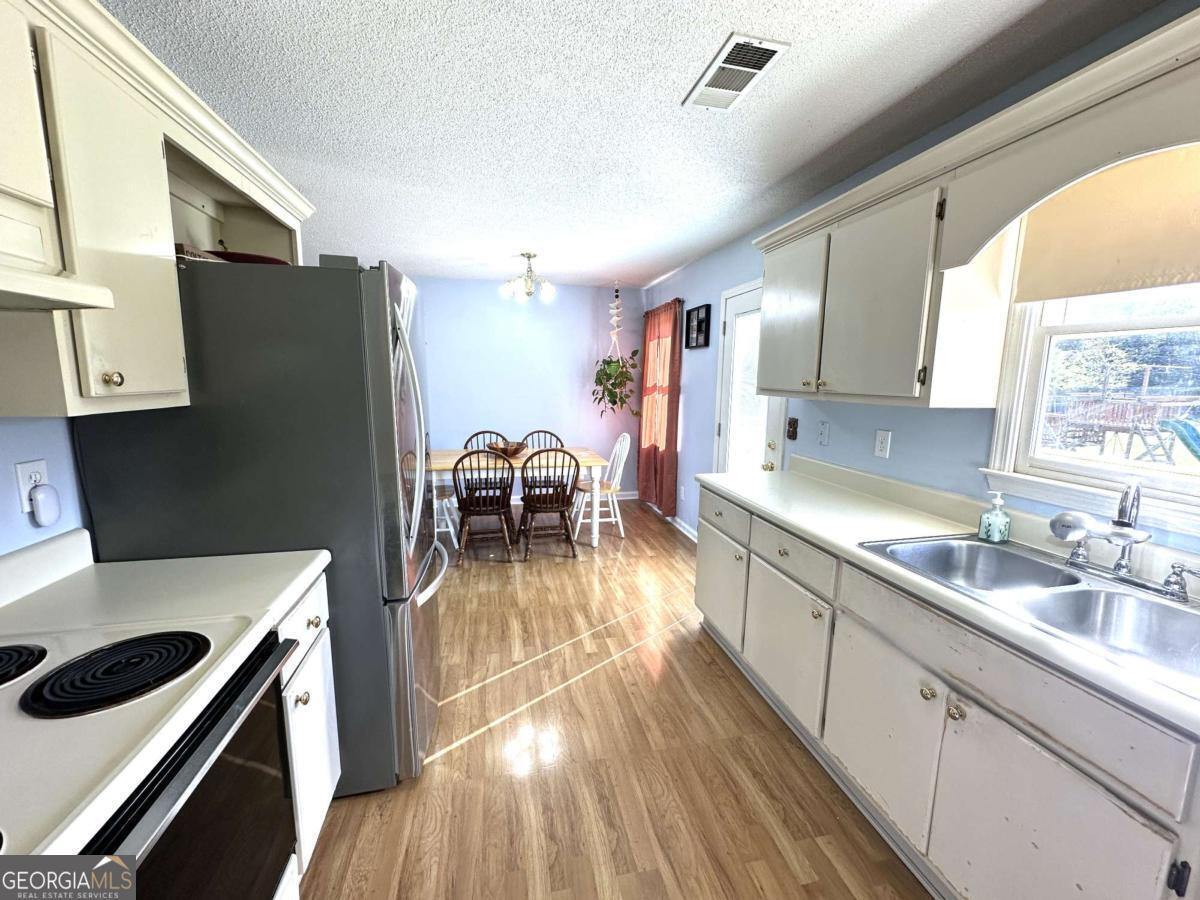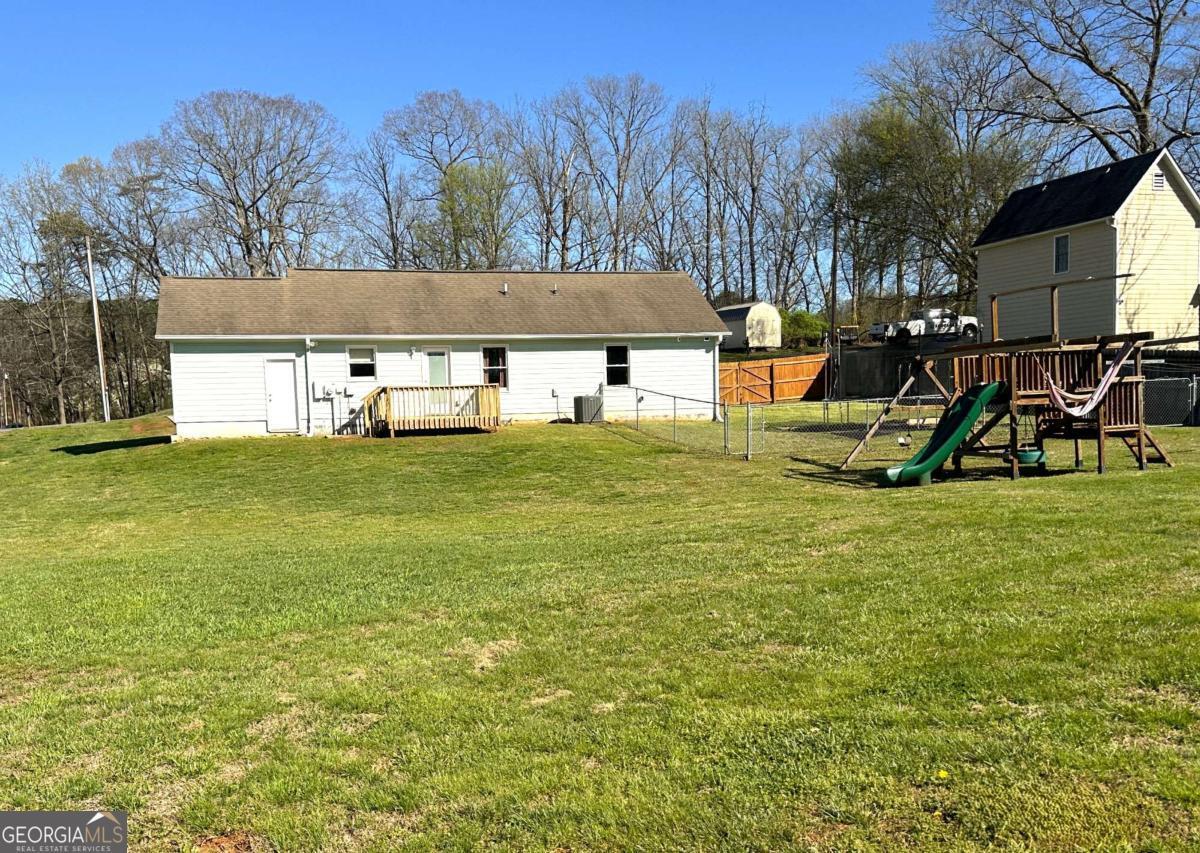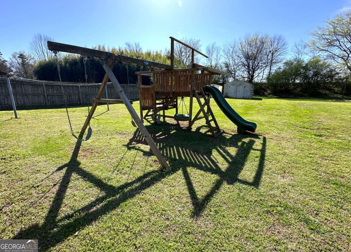 Welcome to your inviting, rural feel, move-in-ready ranch-perfect for first-timers, downsizers, or anyone craving space without the hassle. This three-bedroom, two-bath gem clocks in at one thousand three hundred and twenty-nine square feet of smart, single-level living. Single level living with no surprises-just open flow from the living room straight into a bright eat-in kitchen with ample counters for southern cuisine prep and plenty of cabinet space. The primary bedroom sits quietly at the back overlooking the extra-large backyard, with its own full bath; the other two bedrooms share the second bath, and both feel like little hideaways. Step outside? That is where the magic continues. The heated and cooled enclosed garage provides a wonderful flex room, while the backyard-honestly, it is massive. Think of room for a swing set (which stays with the home), a fire pit, a garden, even a trampoline if you are feeling wild. Partially fenced, two outbuildings for storage, privacy, views, and begging for summer socials and barbecues. Low-maintenance exterior, newer roof, and a quiet street-everything is done, so you can just move in and breathe. Priced to sell fast. Schedule a private showing today!