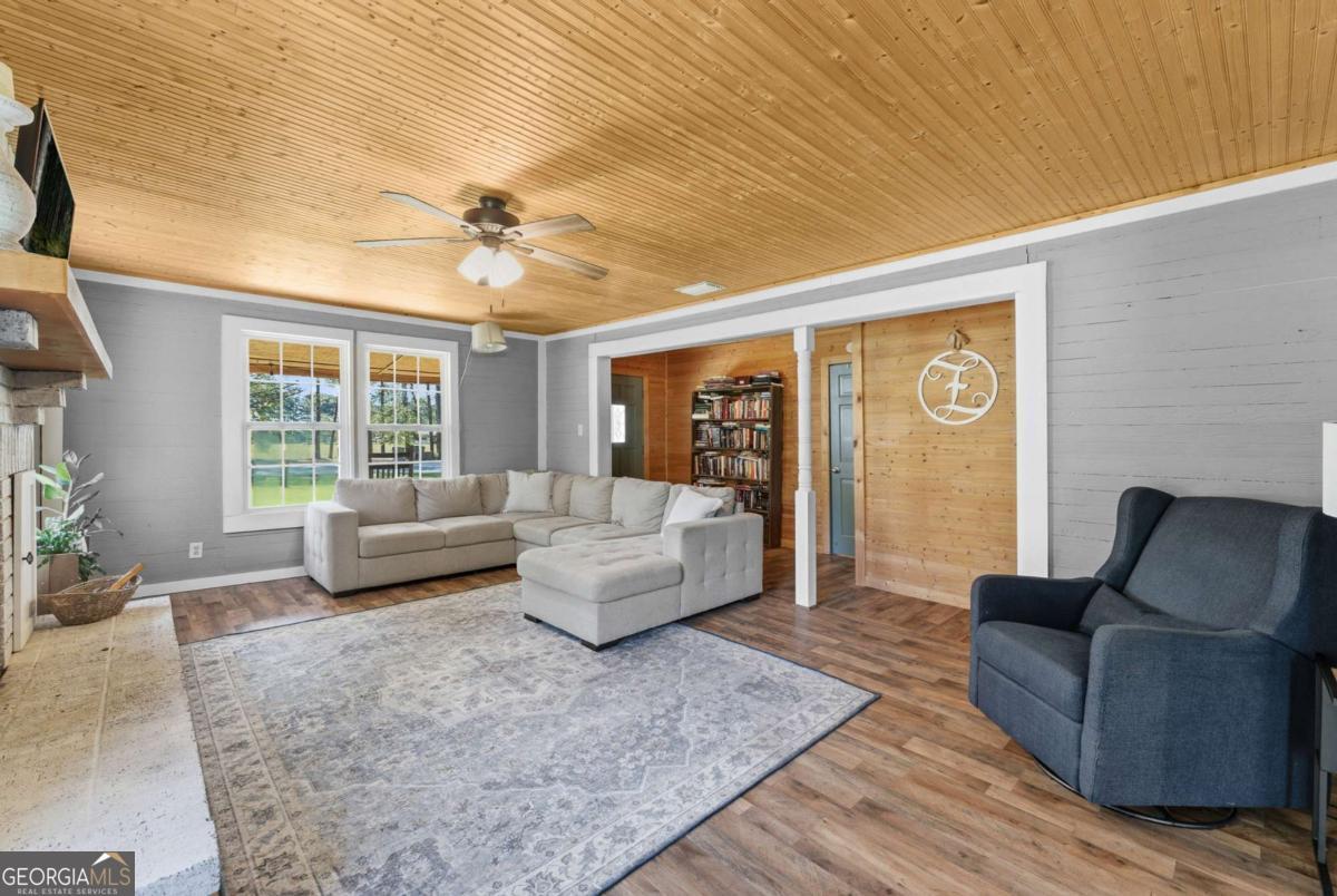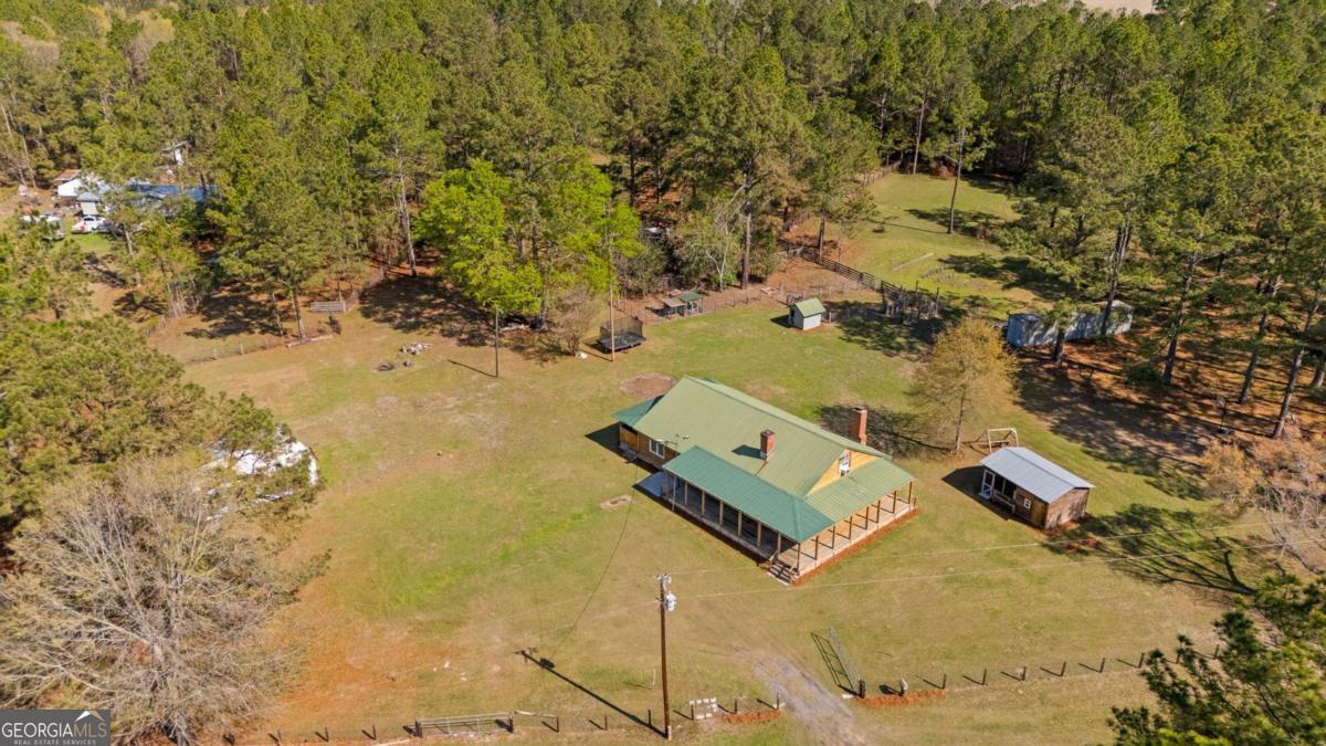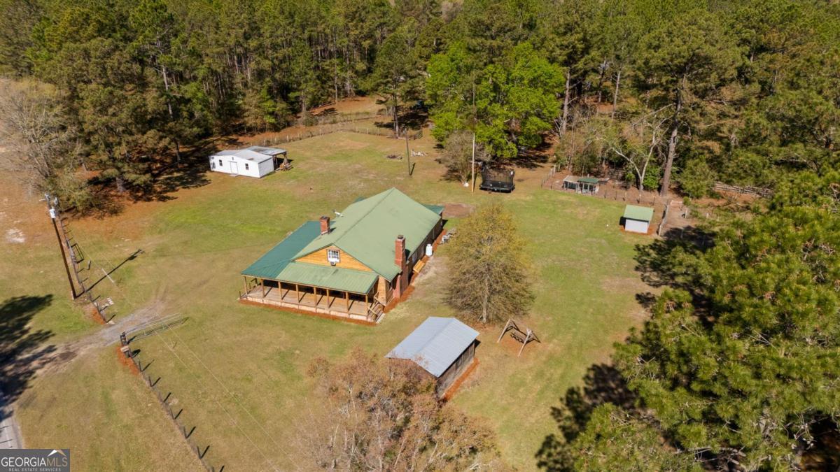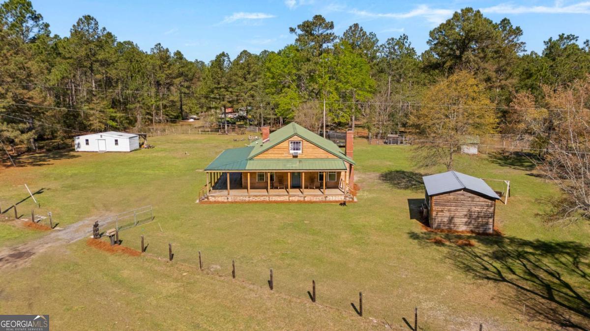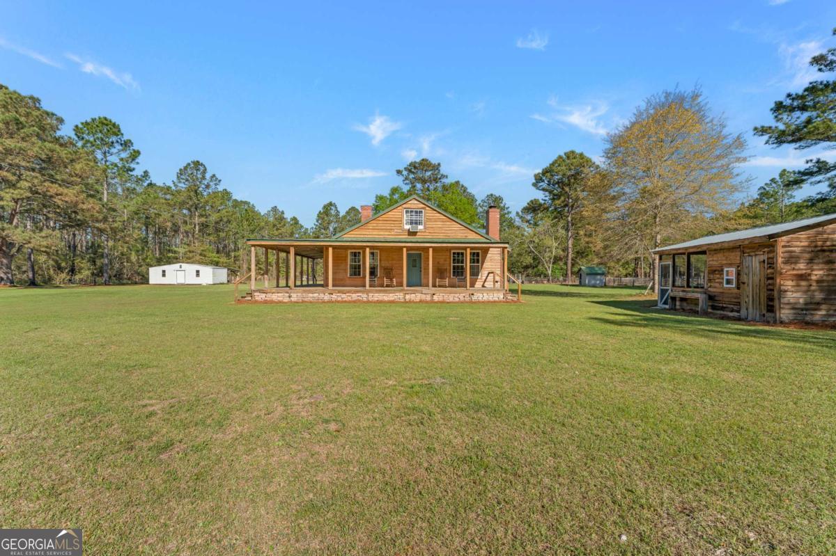 Step into timeless country living! The Blackwell House at Mizpah, a 1939 farmhouse set on 8.93 peaceful acres. Offering 2,431 sq ft, this 4-bedroom, 3-bath home features a first-floor master and bonus room with space to live, work, and gather. The sprawling porch, cedar siding, and tin roof deliver classic Southern charm, while knotty pine walls and a wood-burning fireplace create a warm, inviting interior. Outside, fenced pasture, multiple outbuildings, and a screened cookhouse provide endless possibilities for entertaining, hobbies, or homesteading. Tucked in a quiet, heritage-rich setting, the drive in is peaceful and relaxing. This is more than a home-it's a place to slow down, spread out, and make it your own.